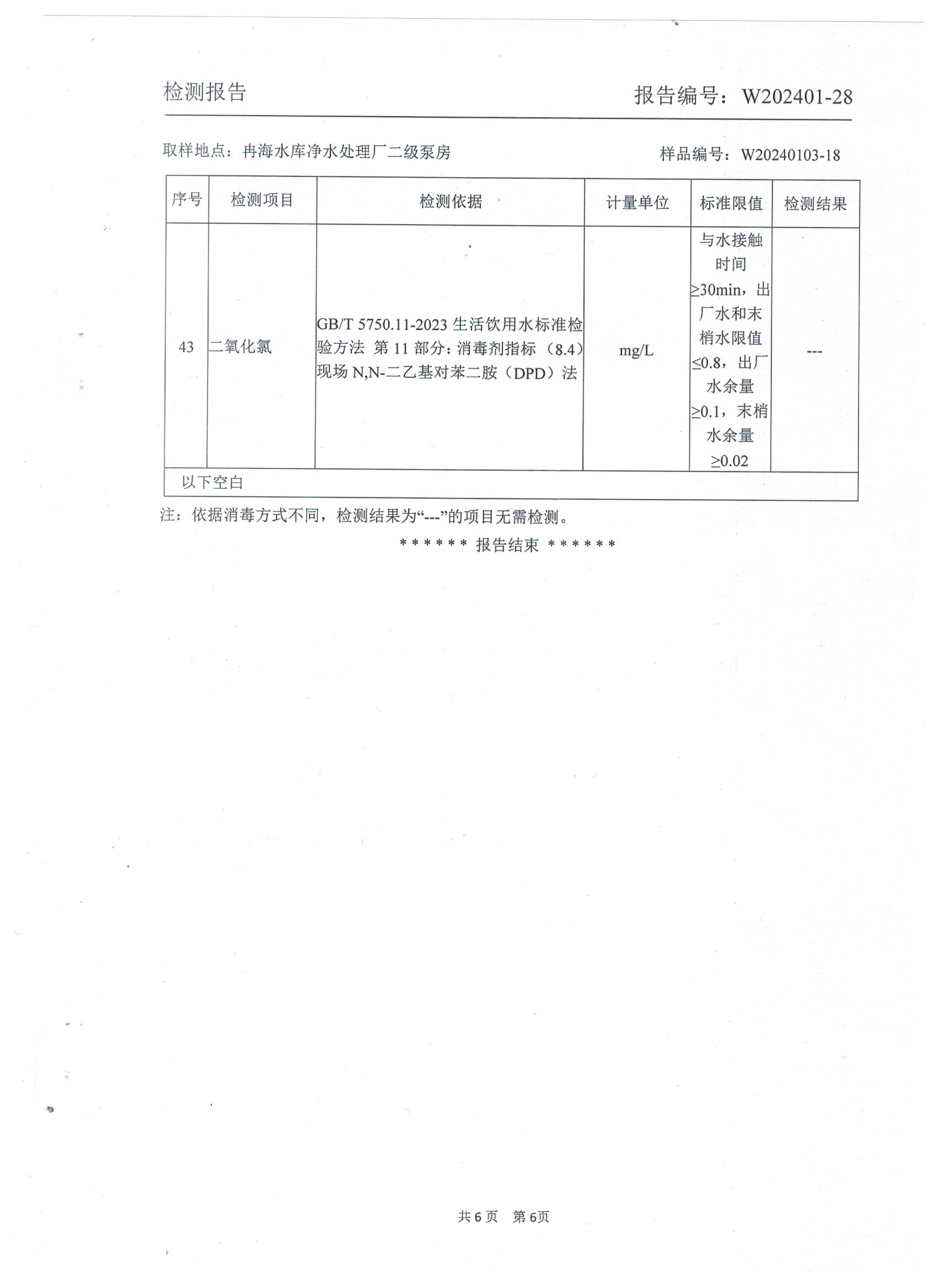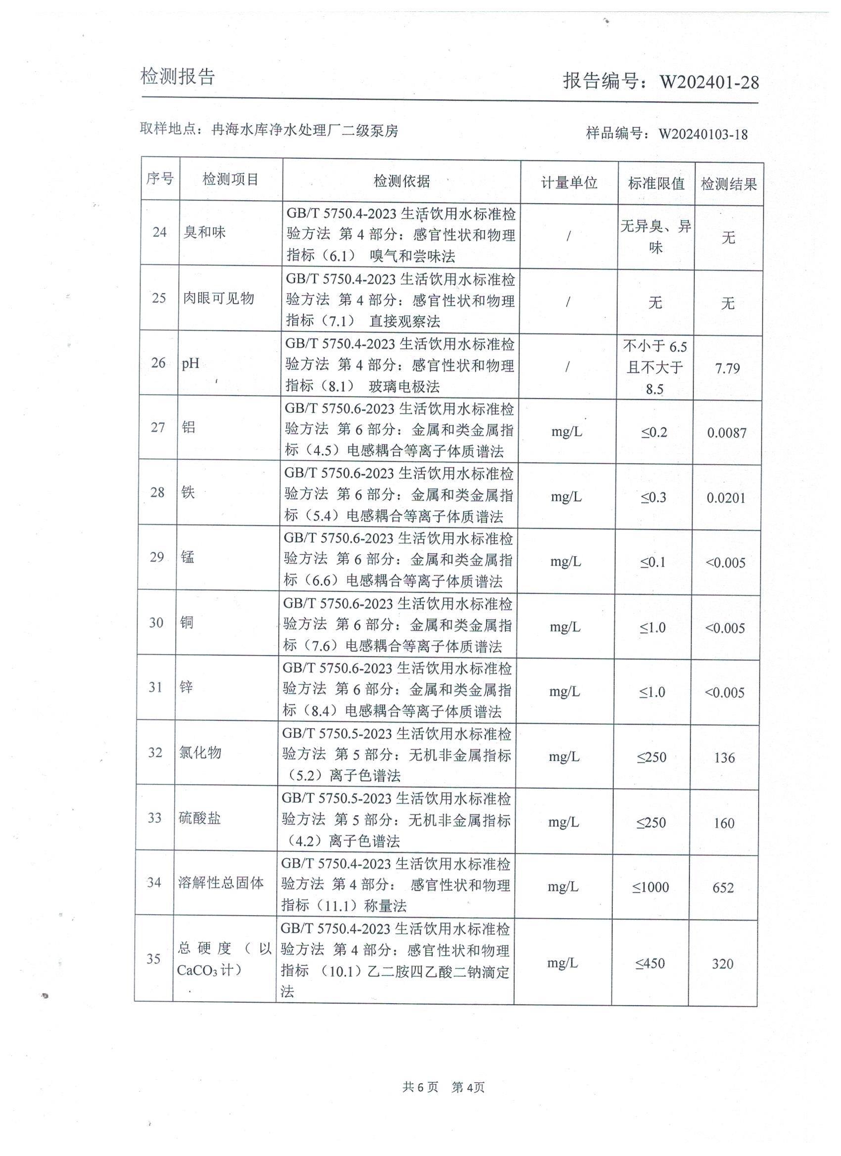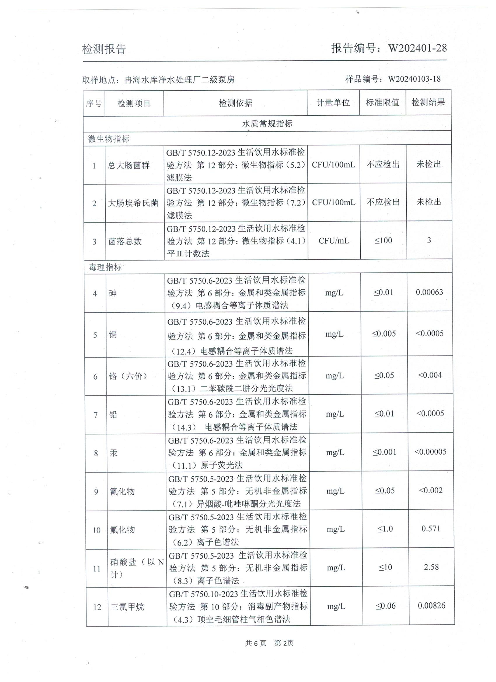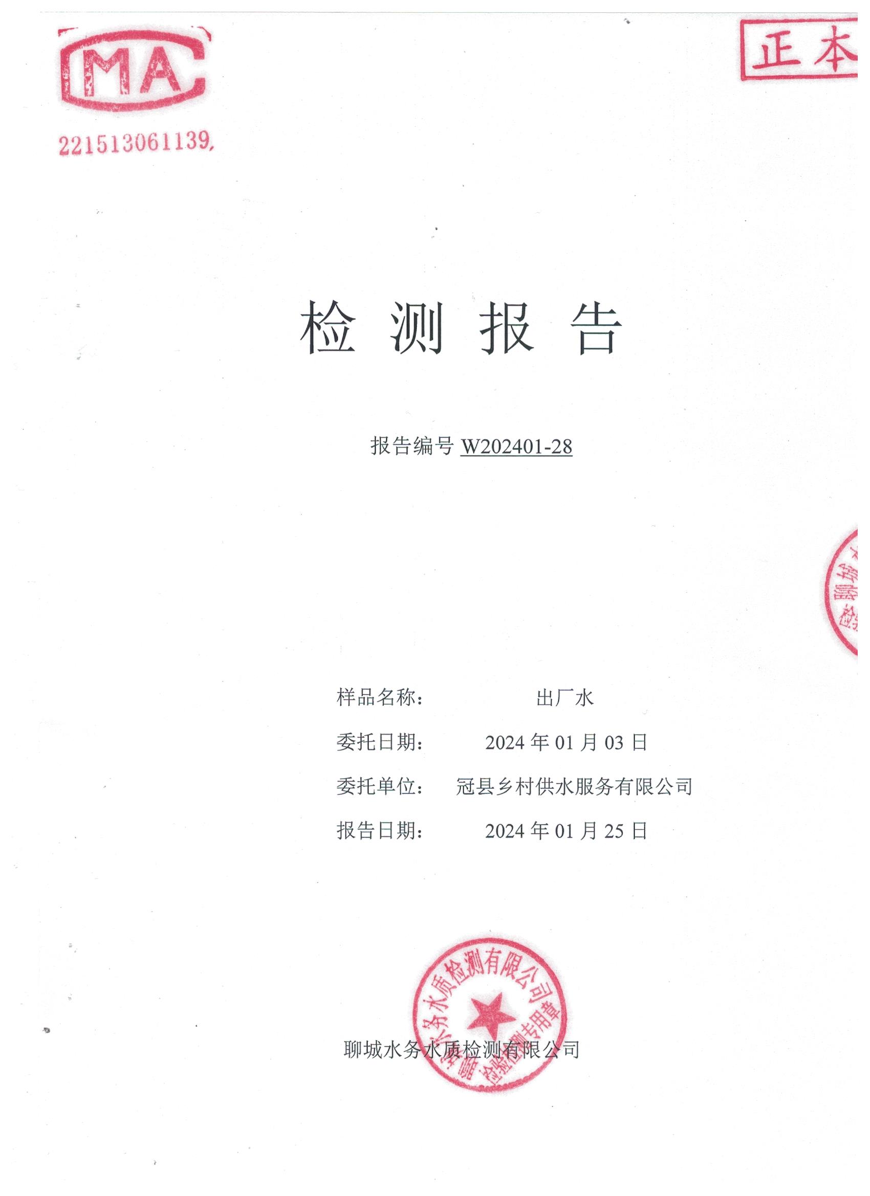 2024年1月乡村出厂水水质检测报告