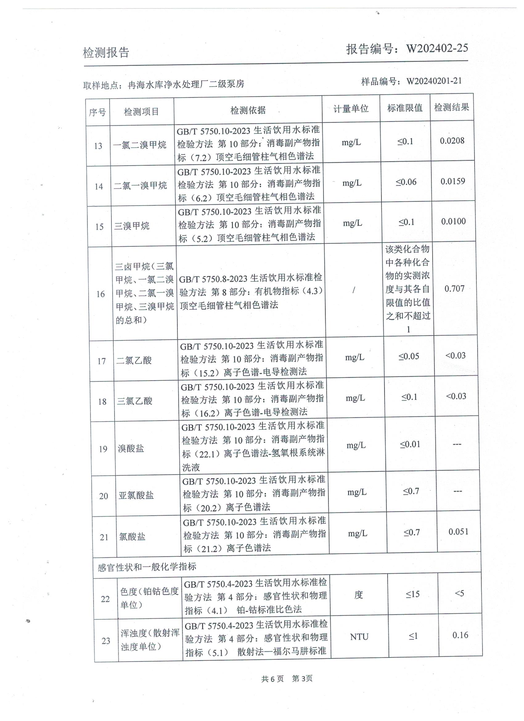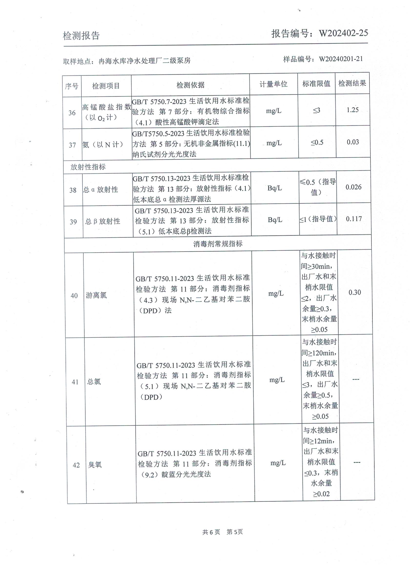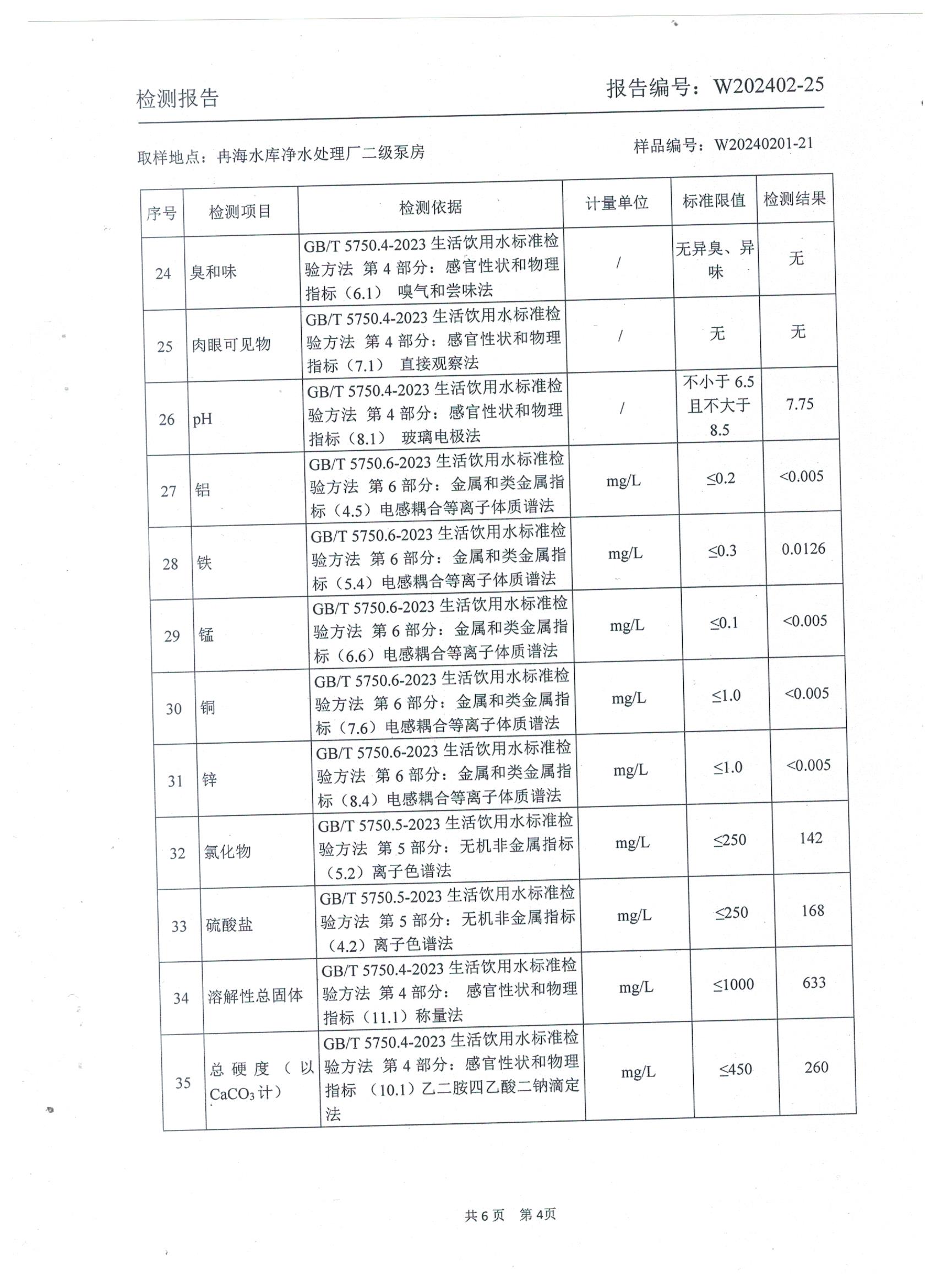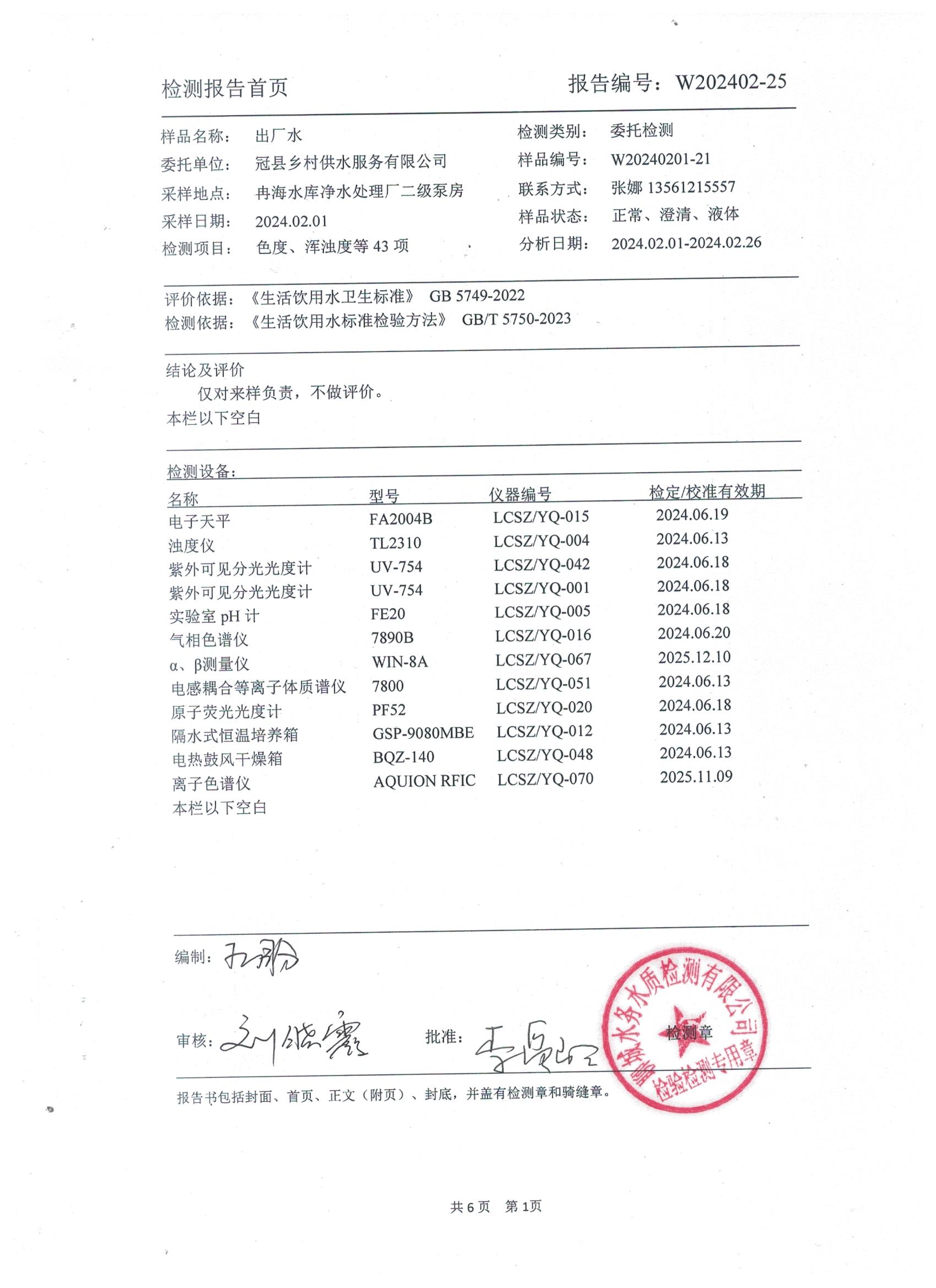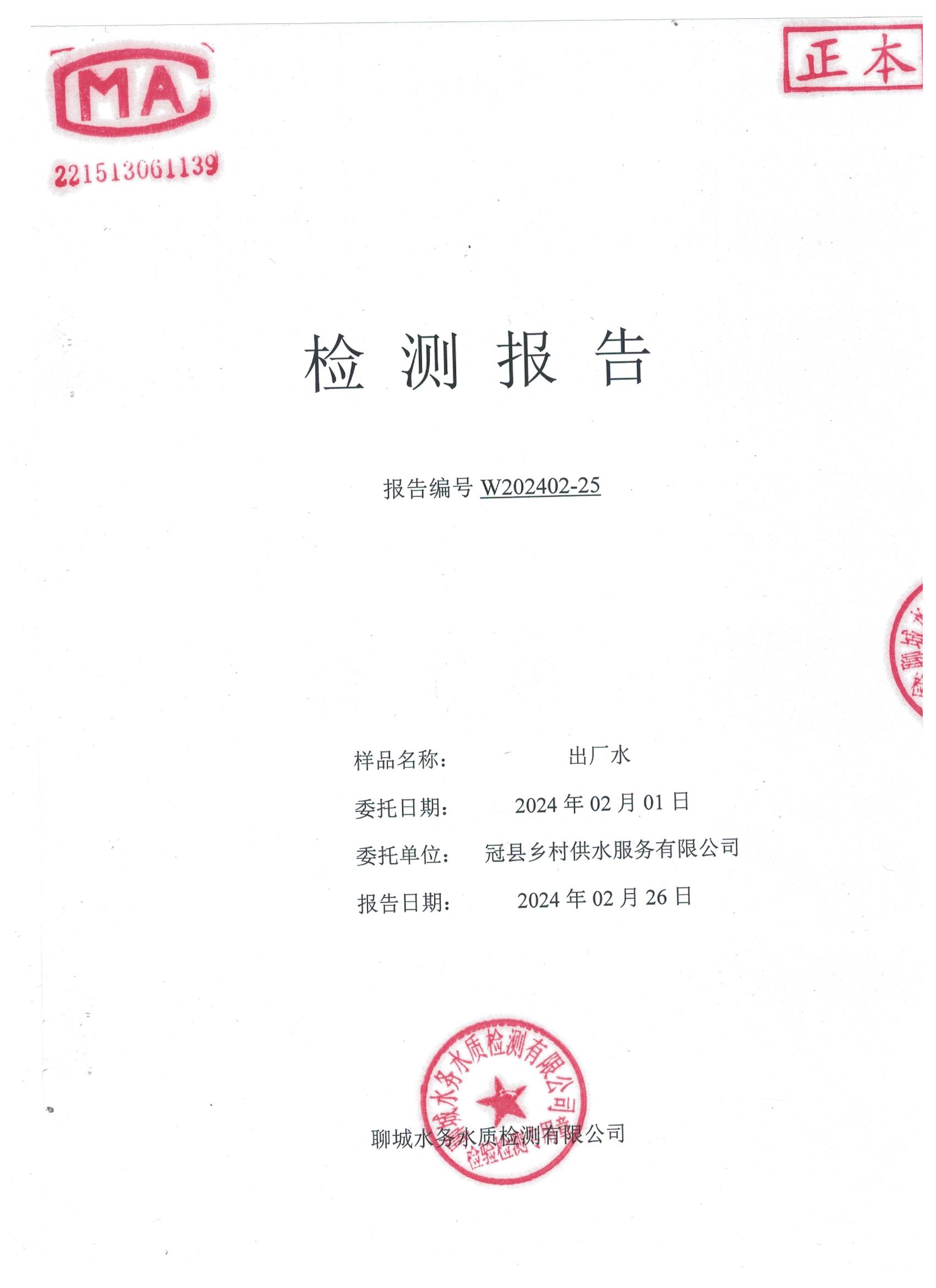 2024年2月乡村出厂水水质检测报告