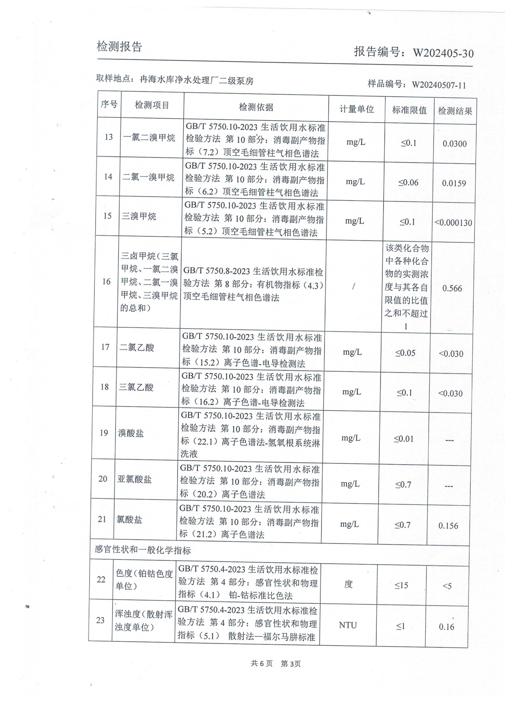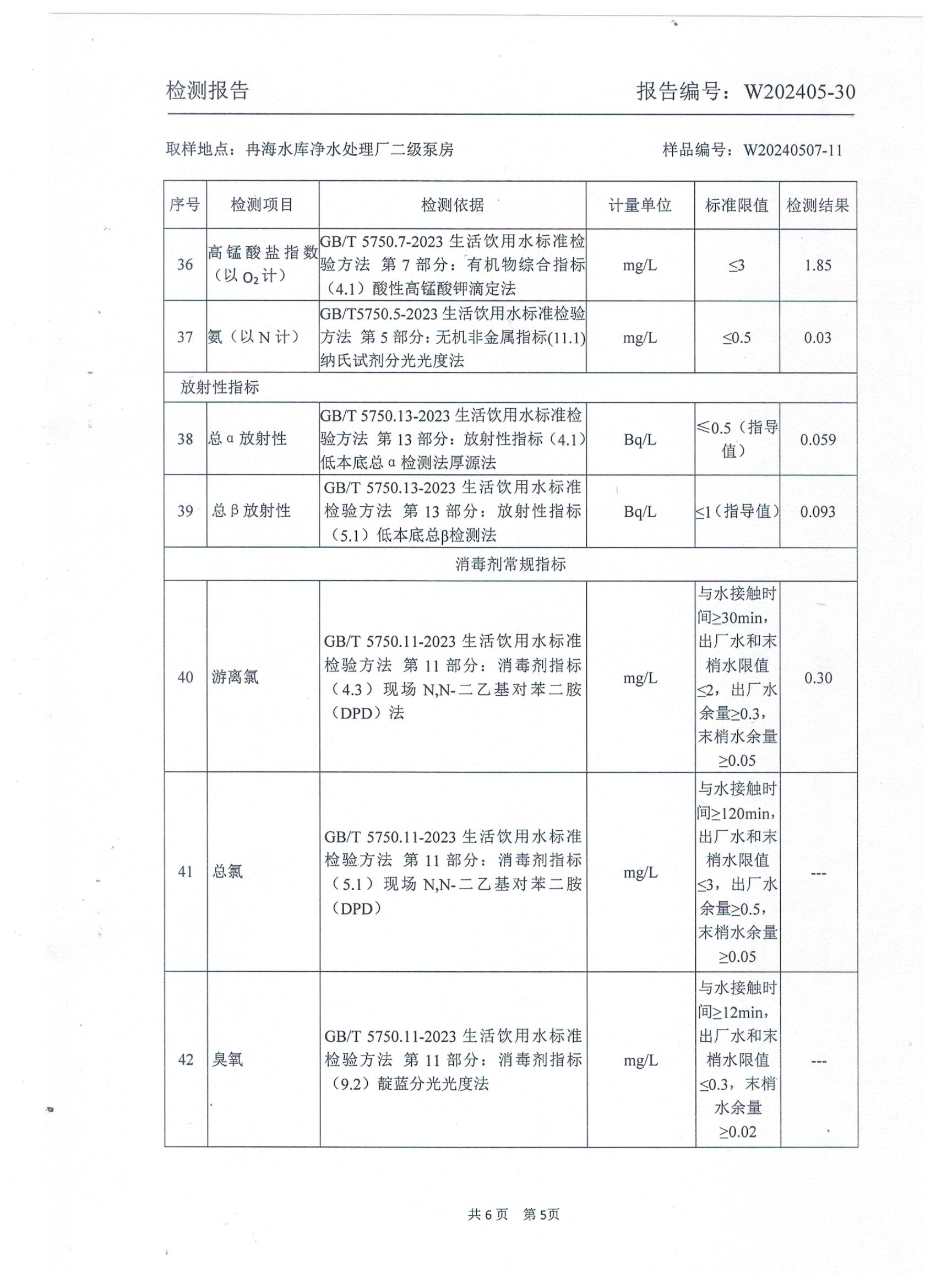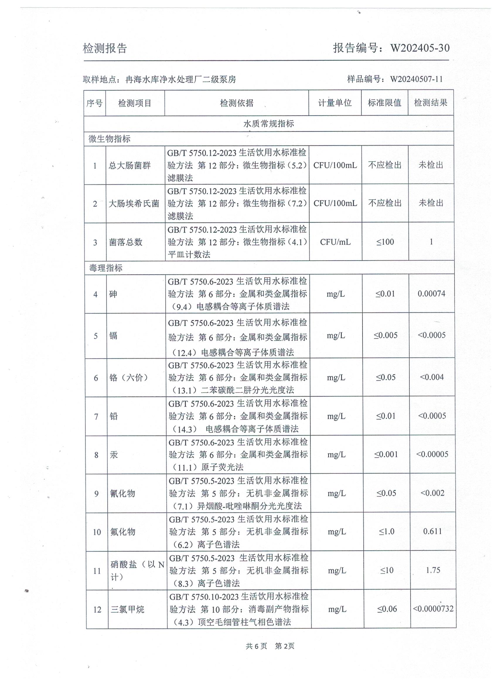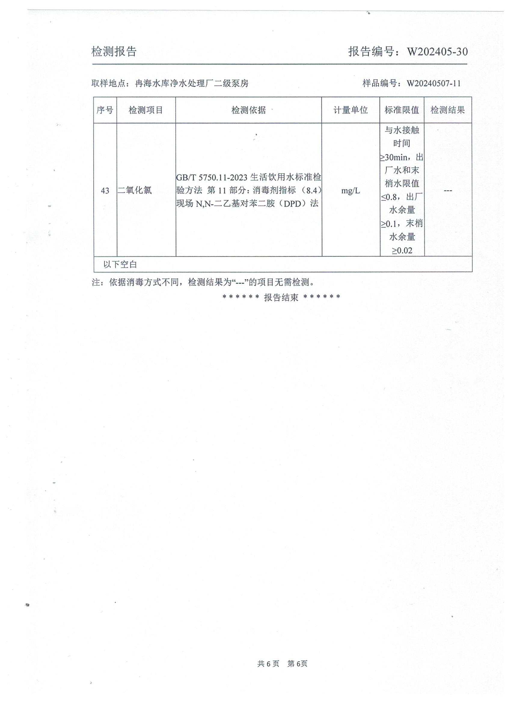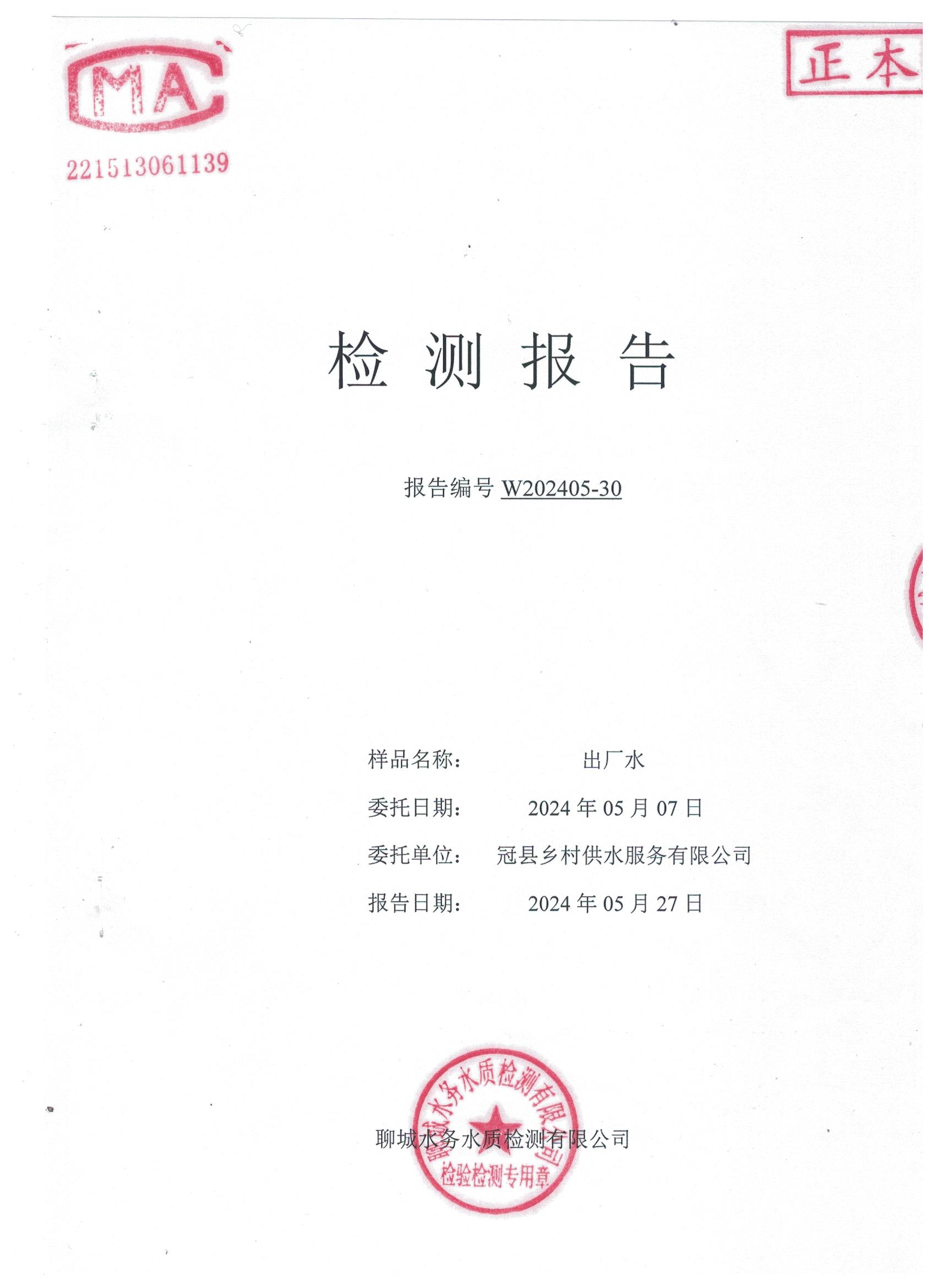 2024年5月乡村出厂水水质检测报告