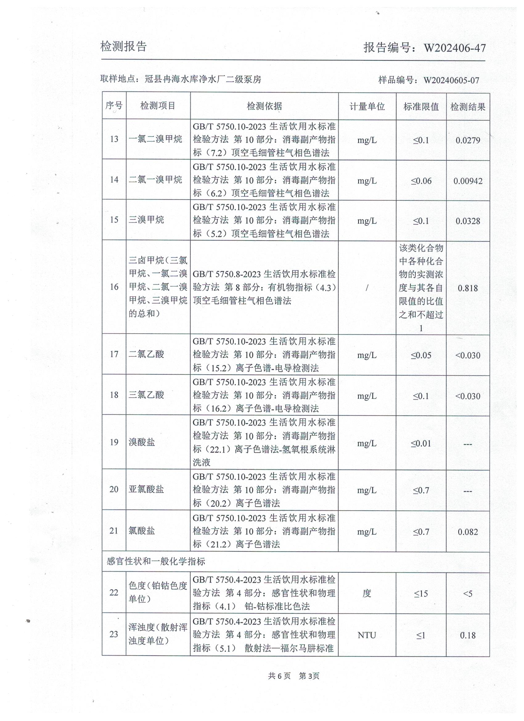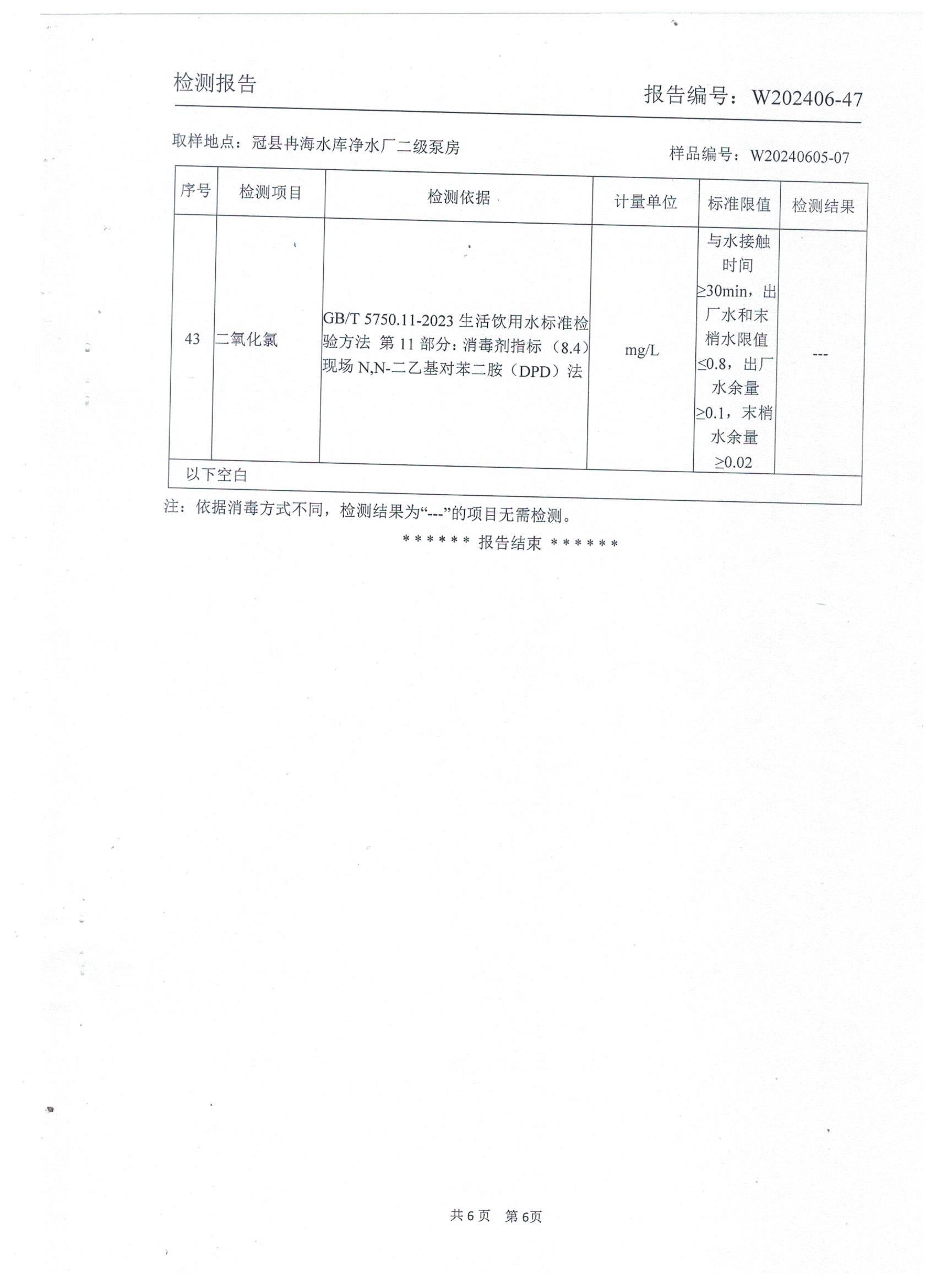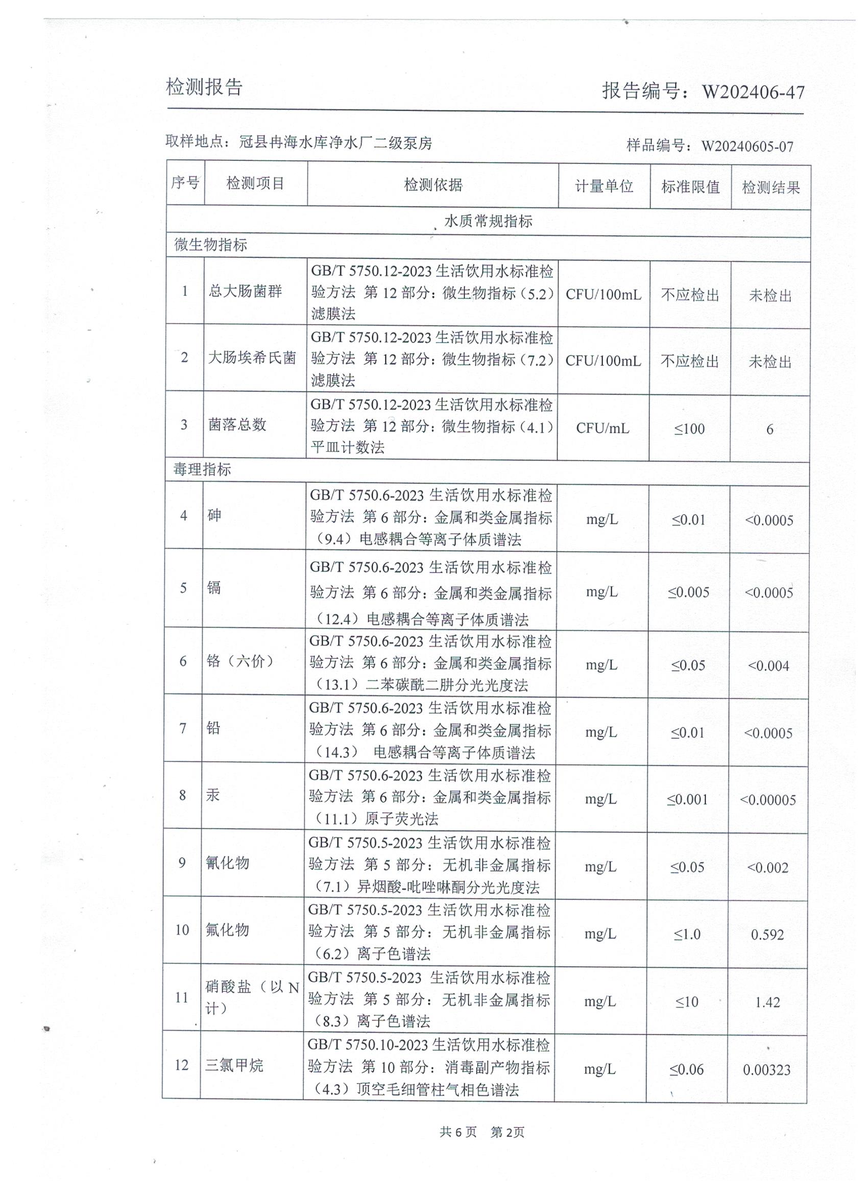 2024年6月城区出厂水水质检测报告