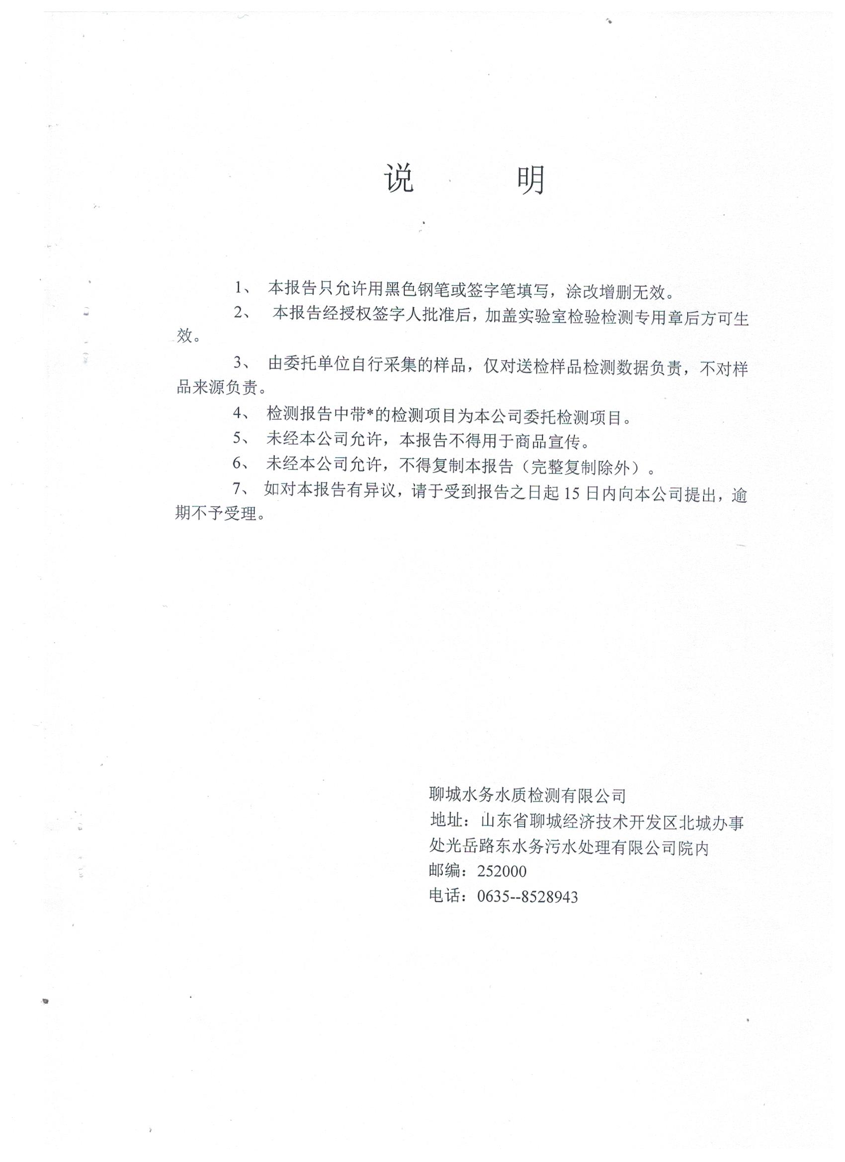 冠县自来水水质信息