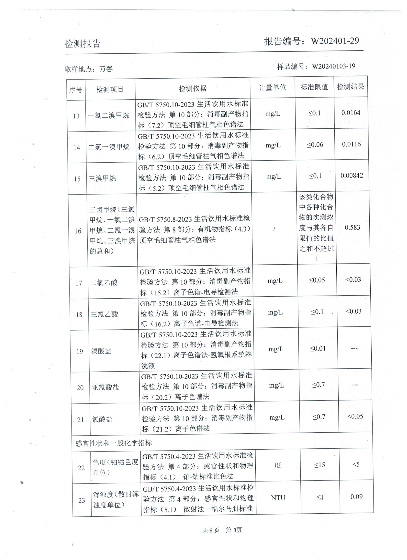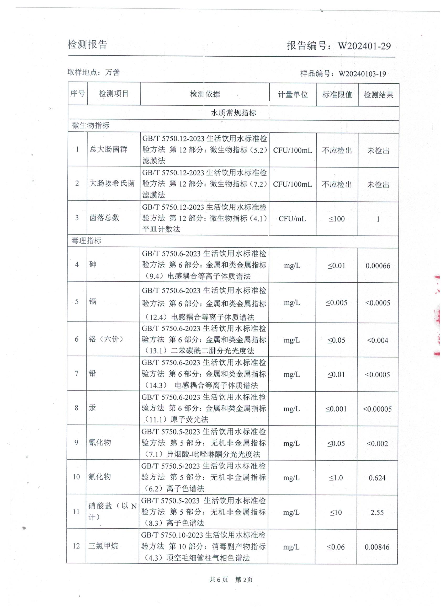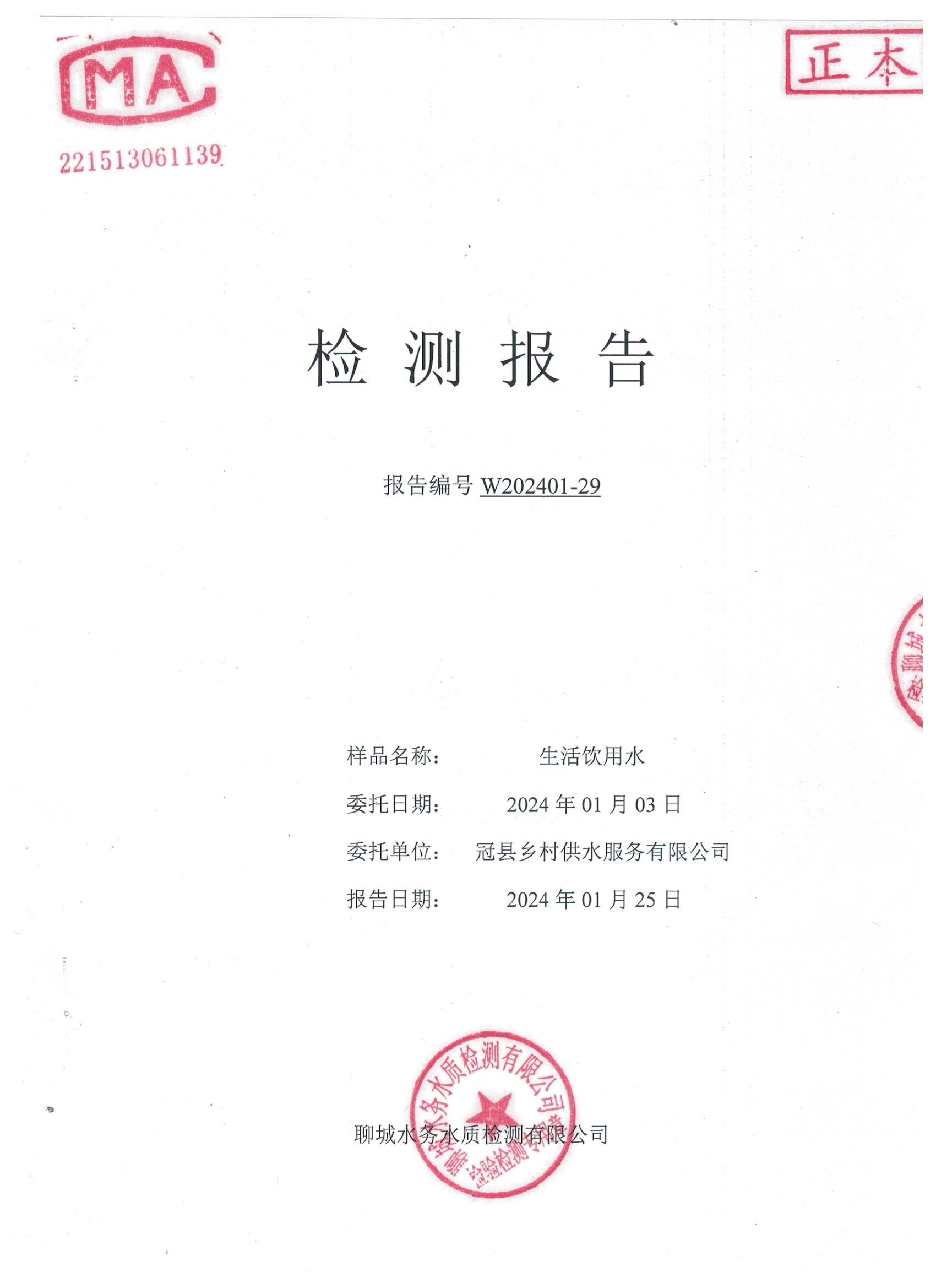 2024年1月乡村管网水水质检测报告