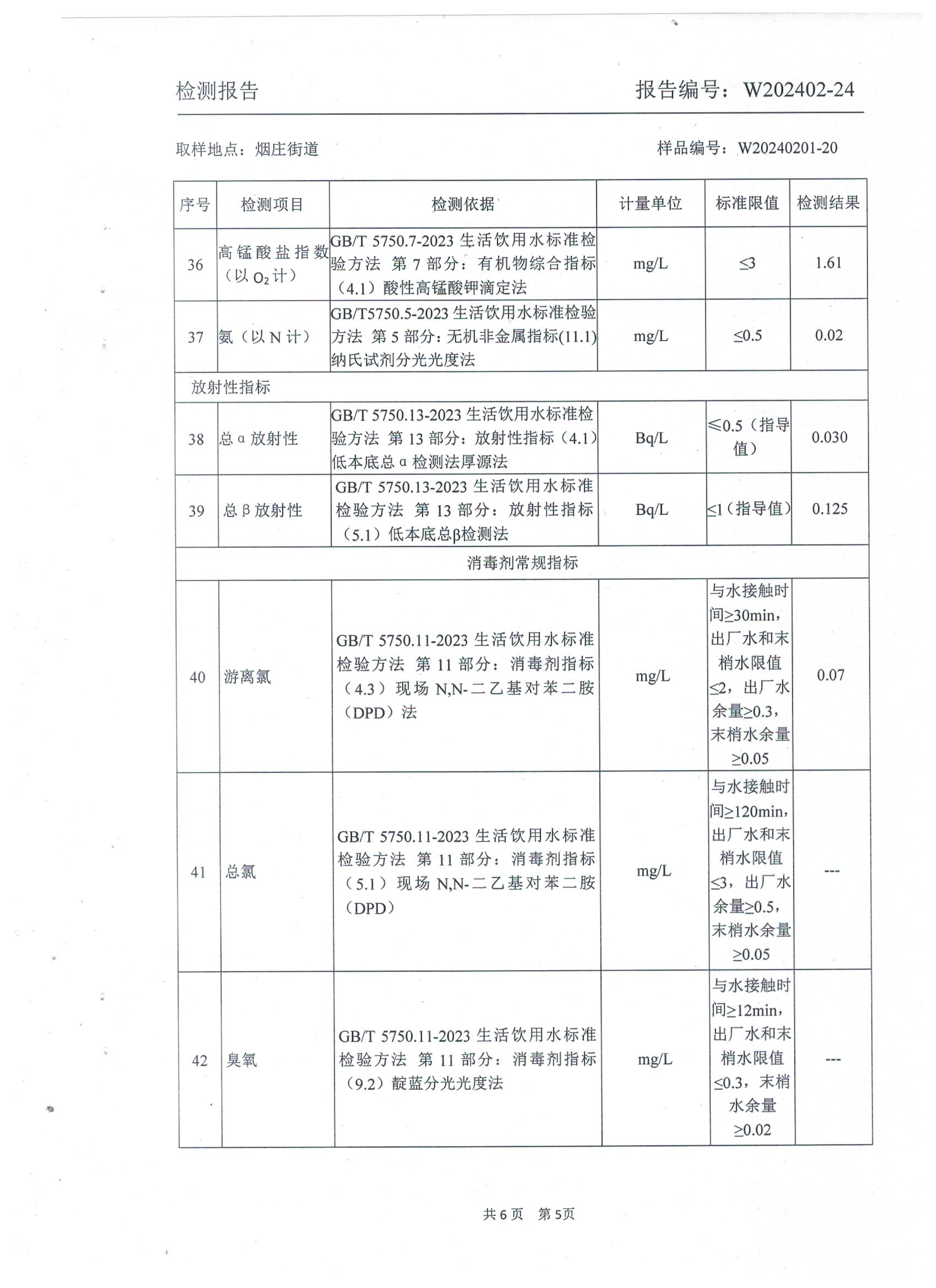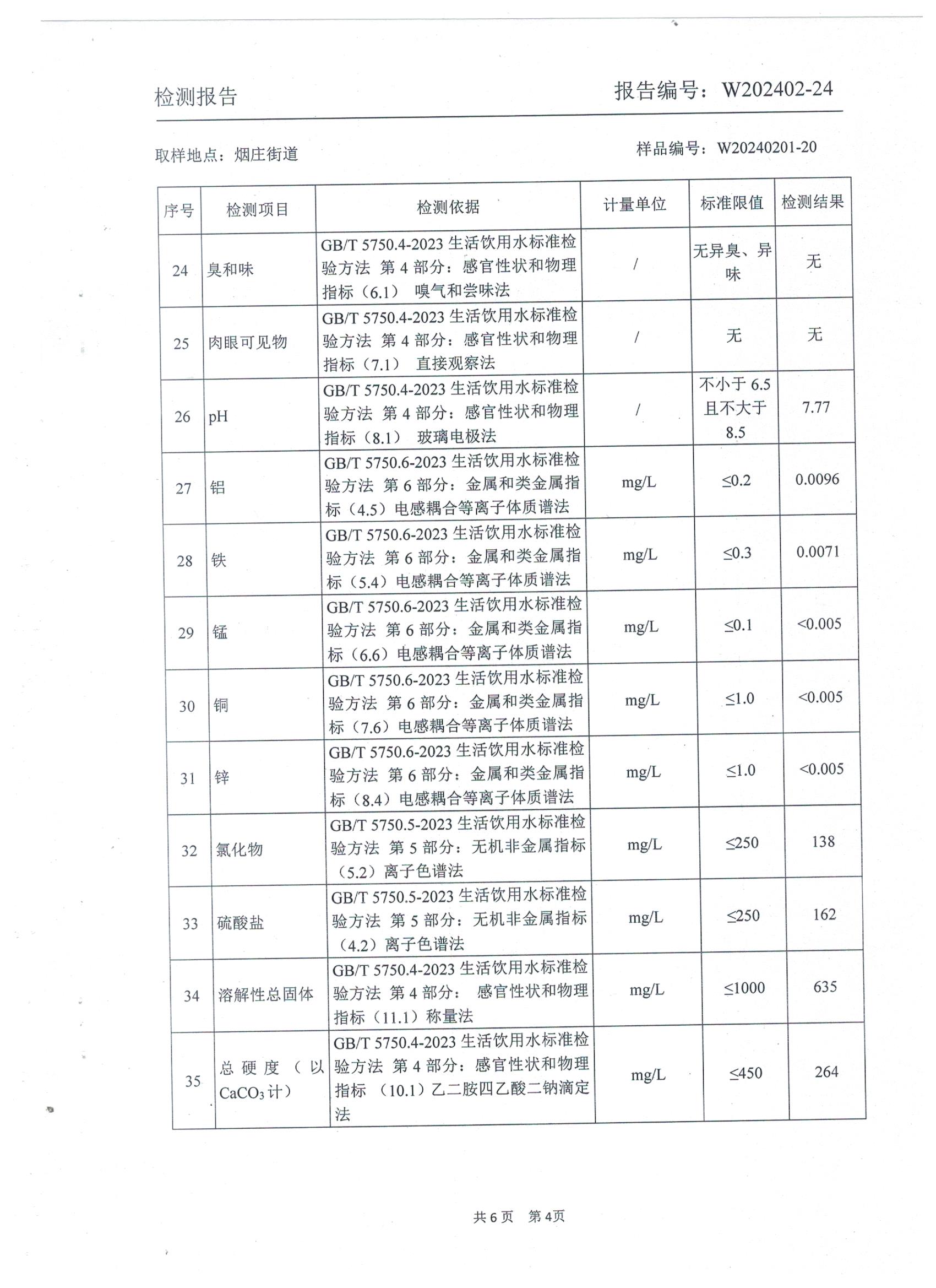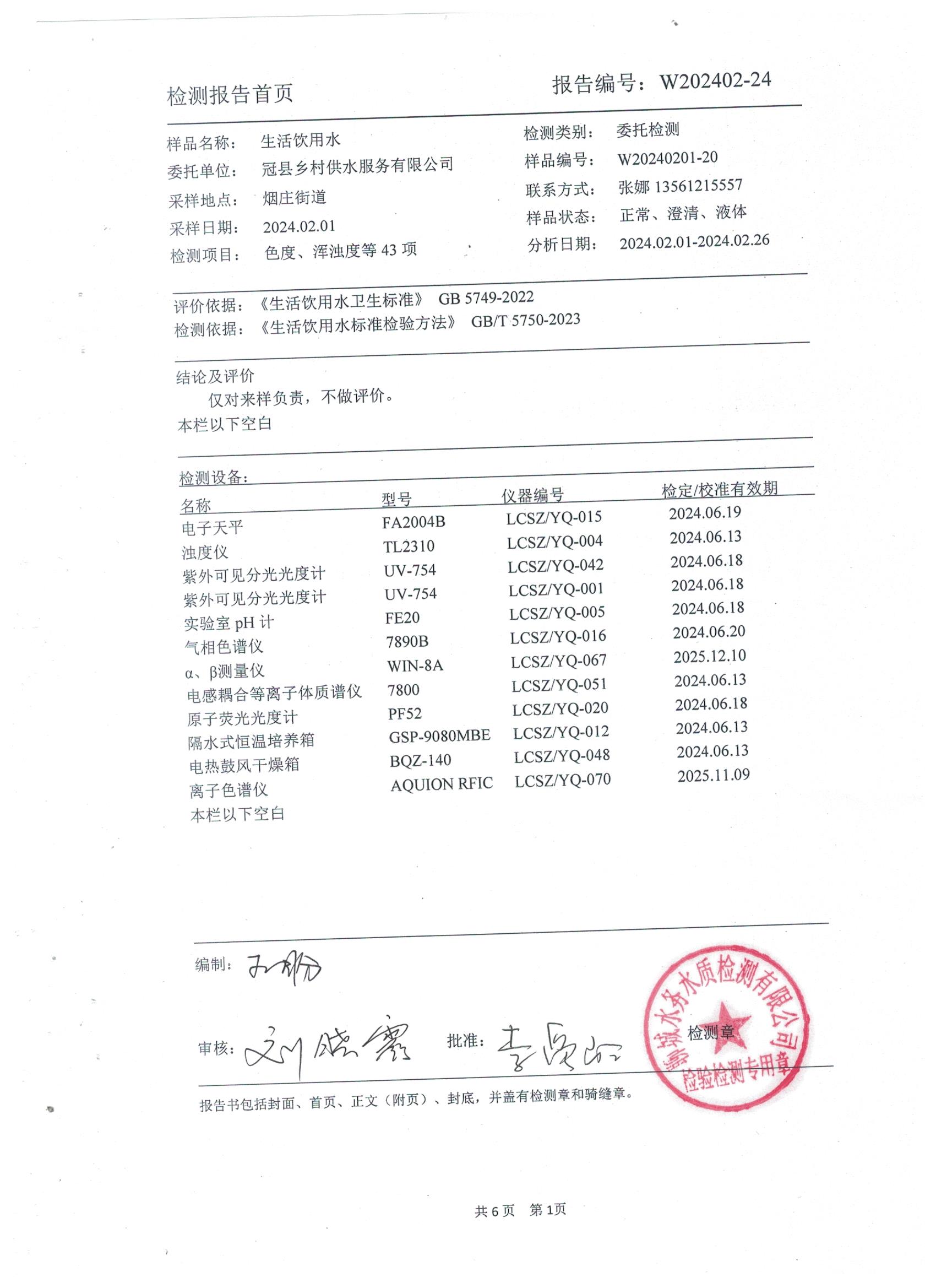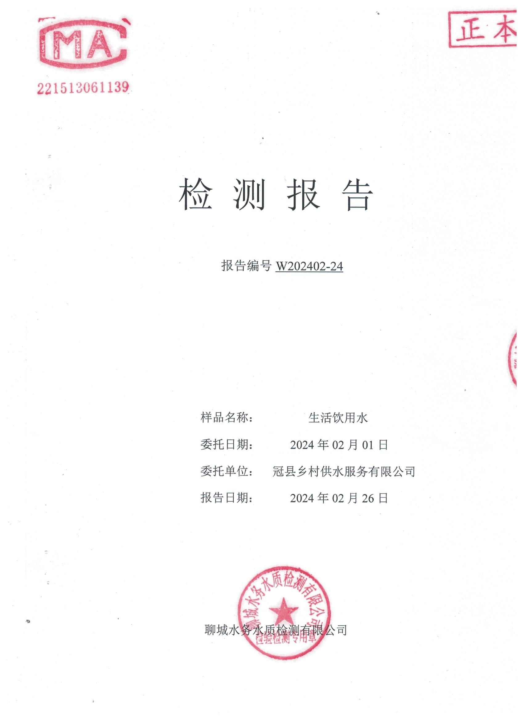 2024年2月乡村管网水水质检测报告
