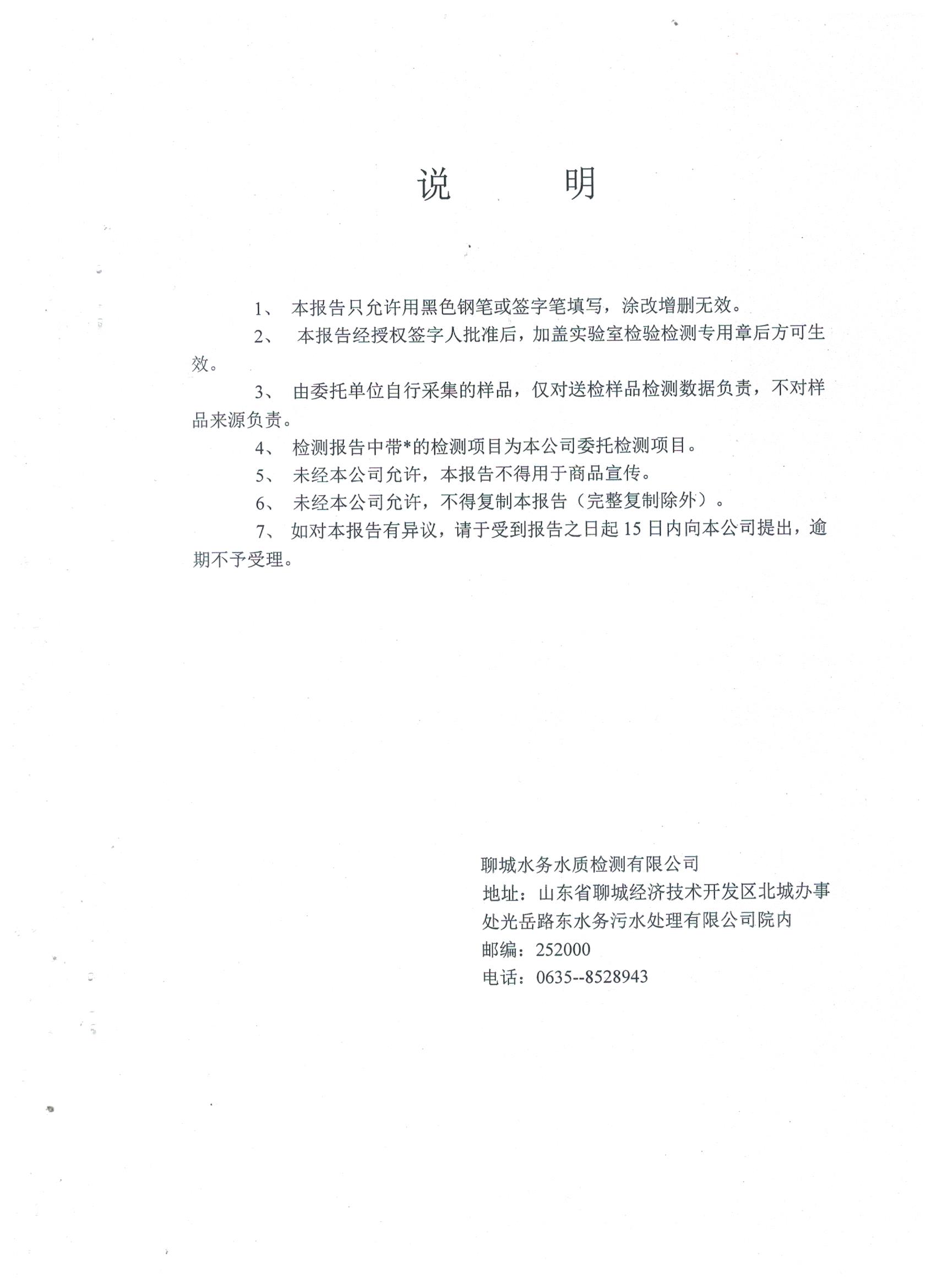 冠县自来水水质信息
