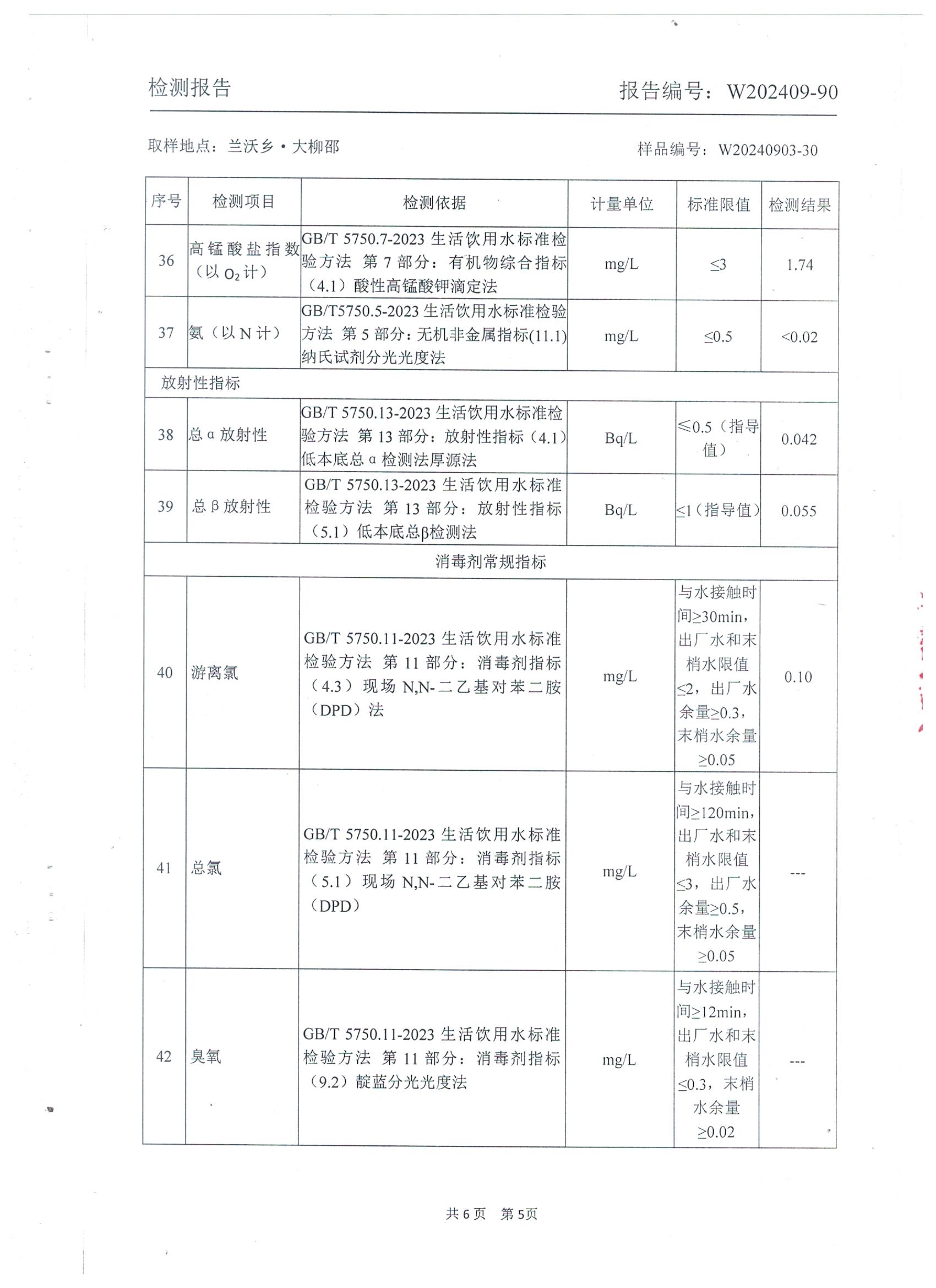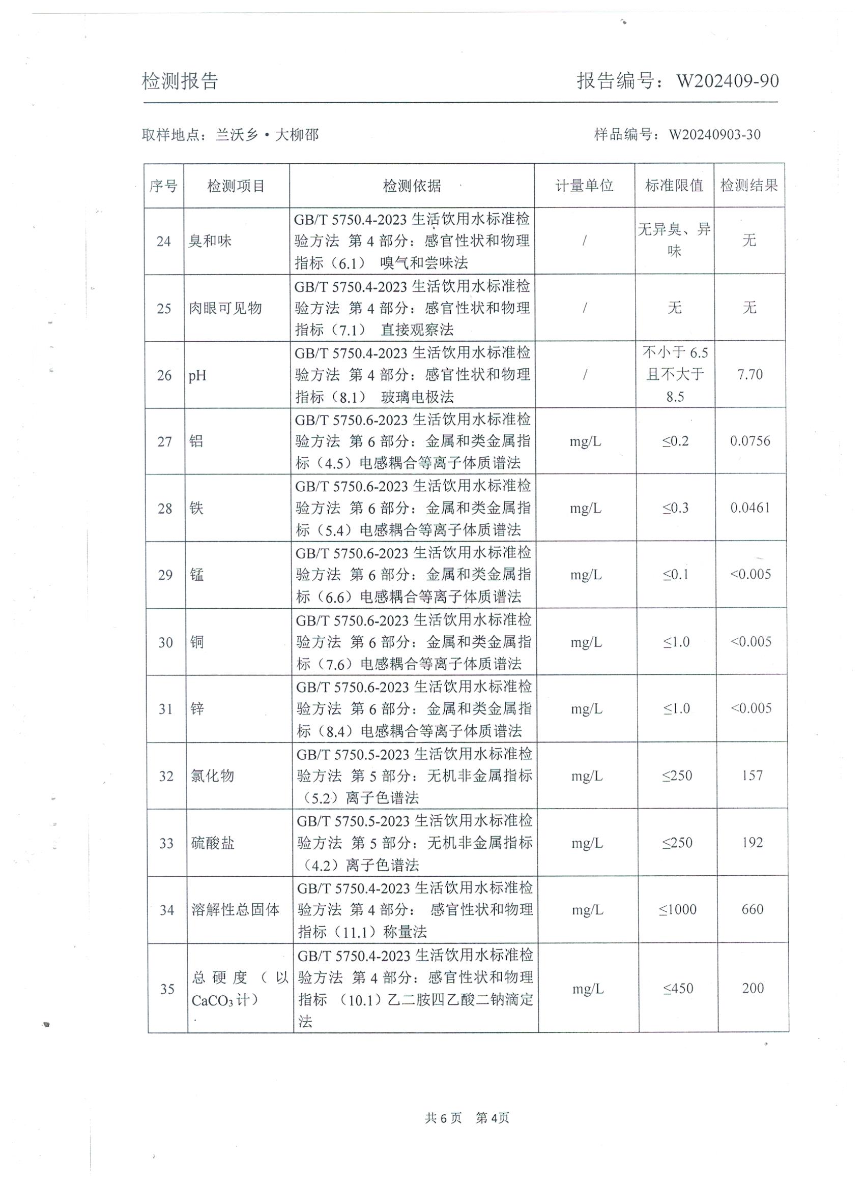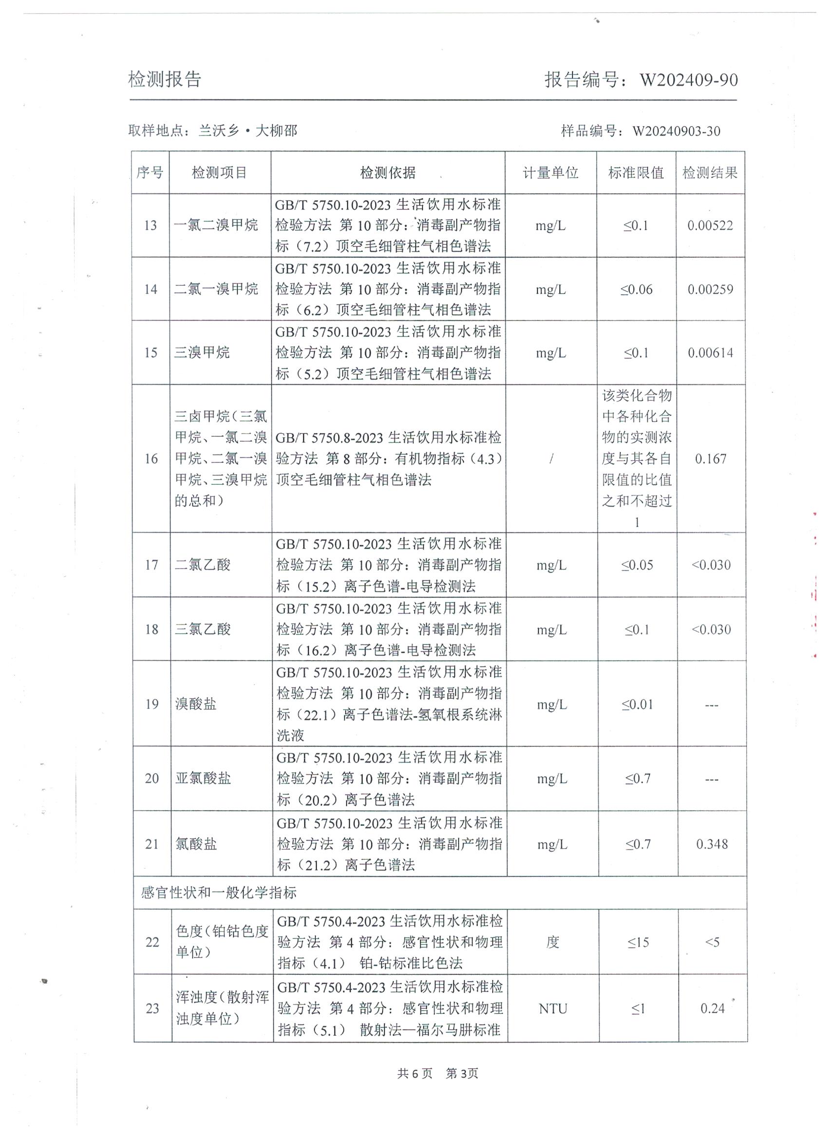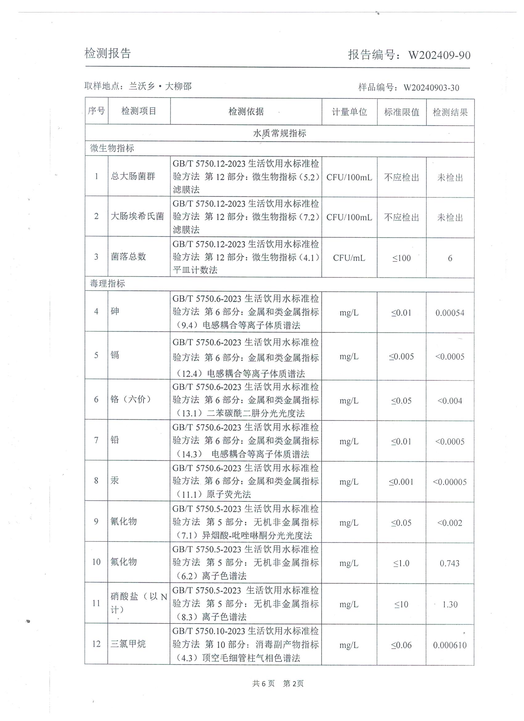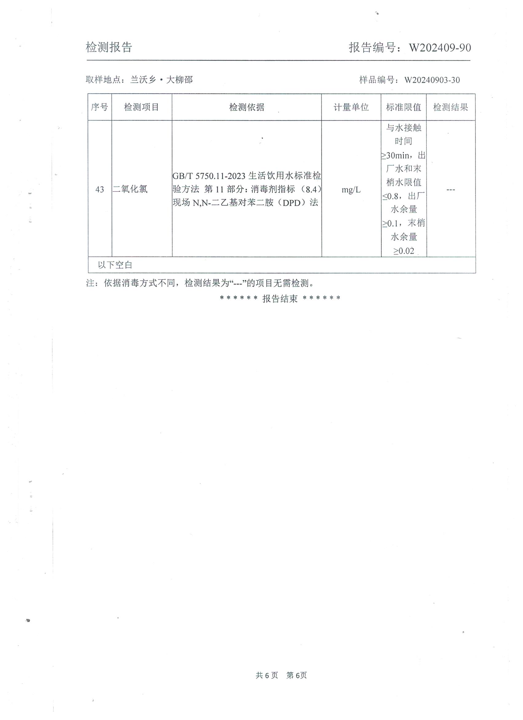 2024年9月 管网水水质检测报告(兰沃大柳邵)
