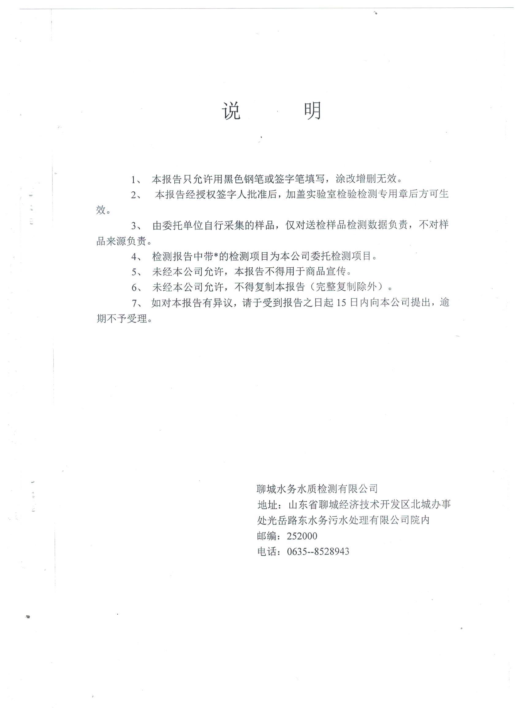 冠县自来水水质信息