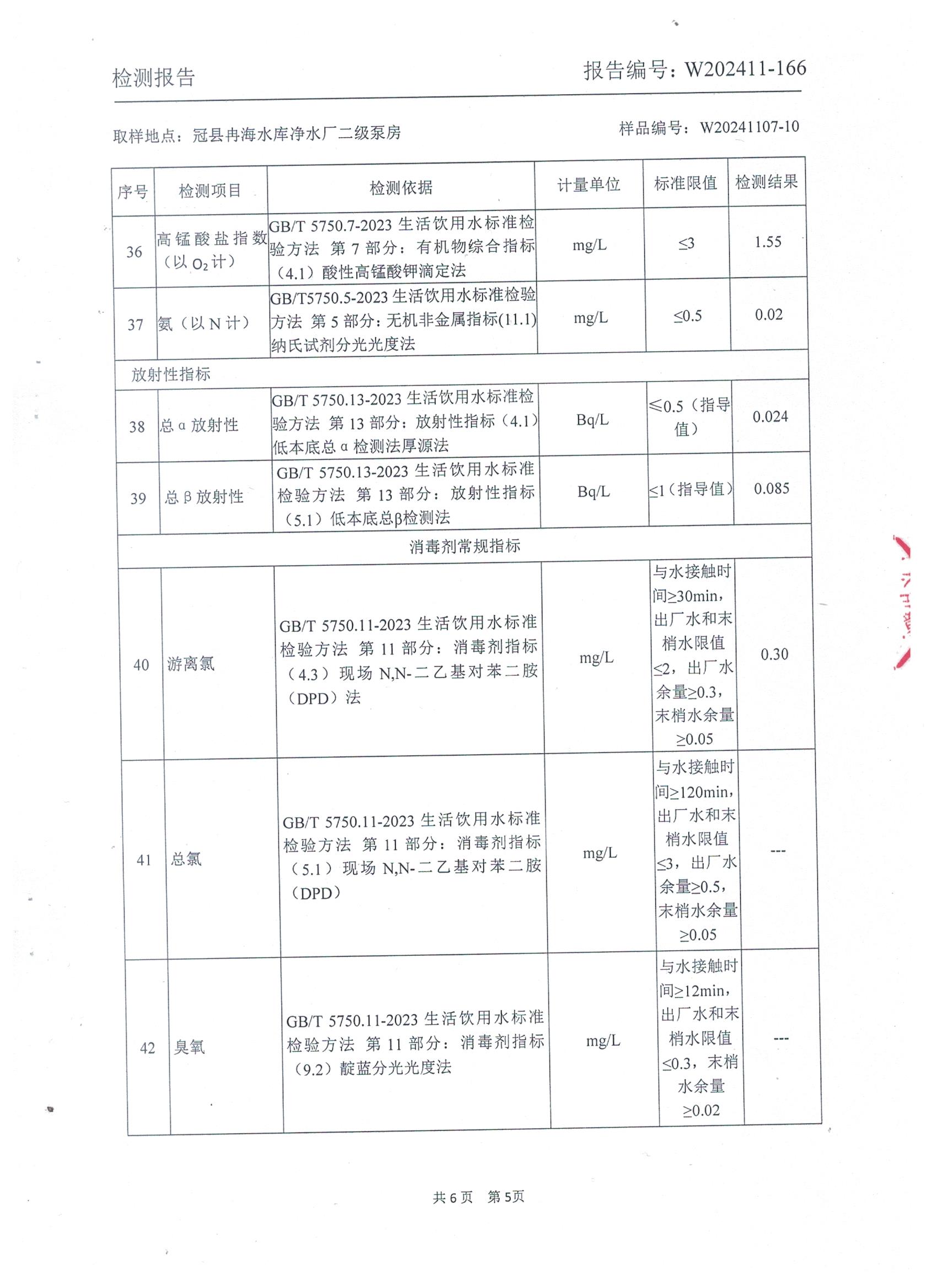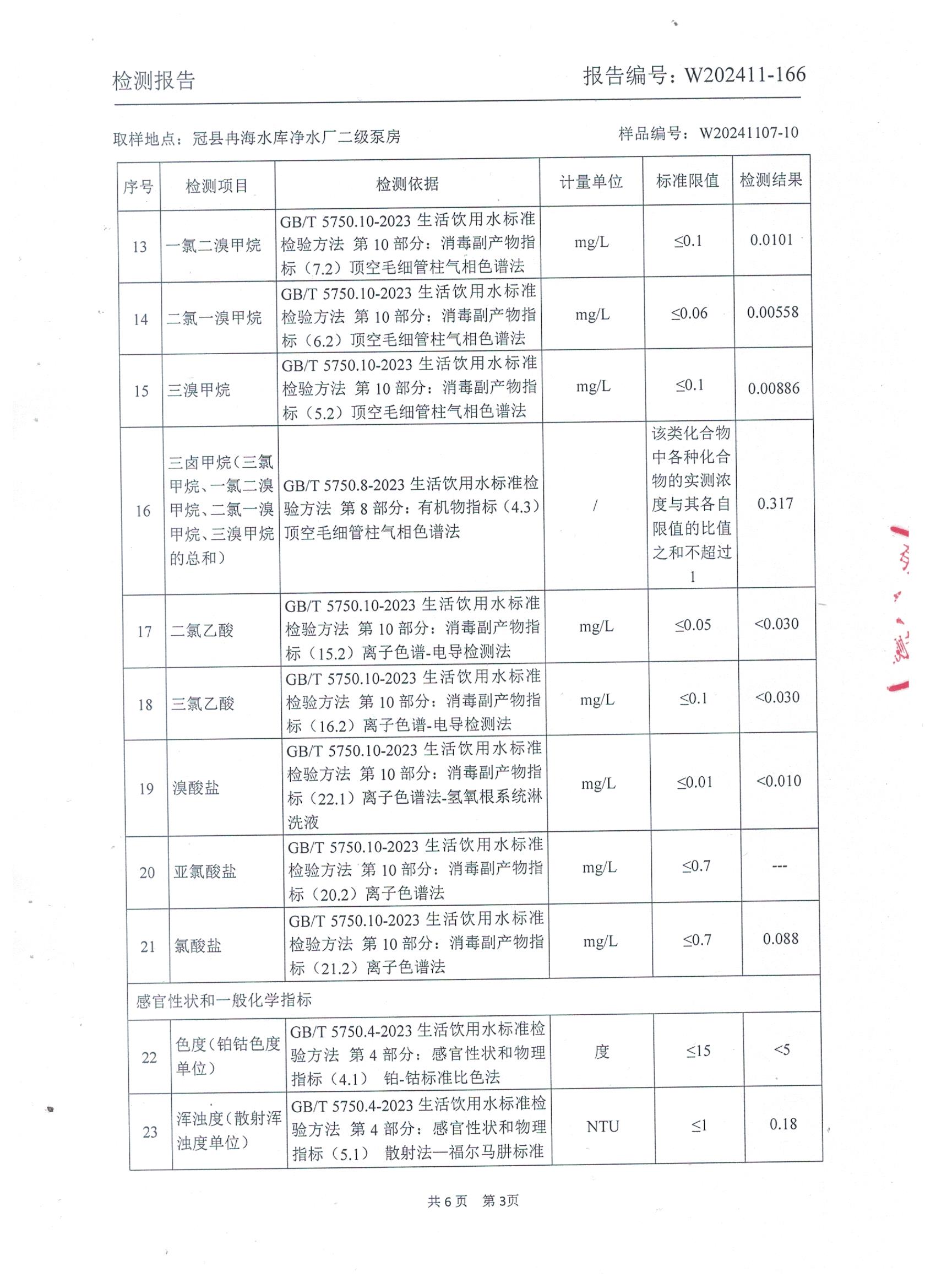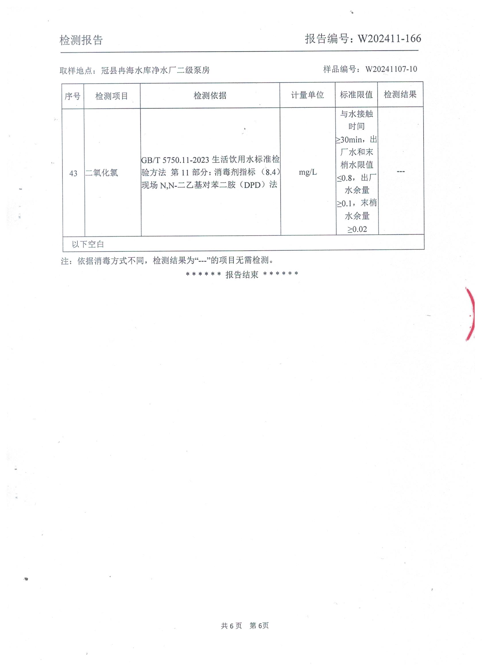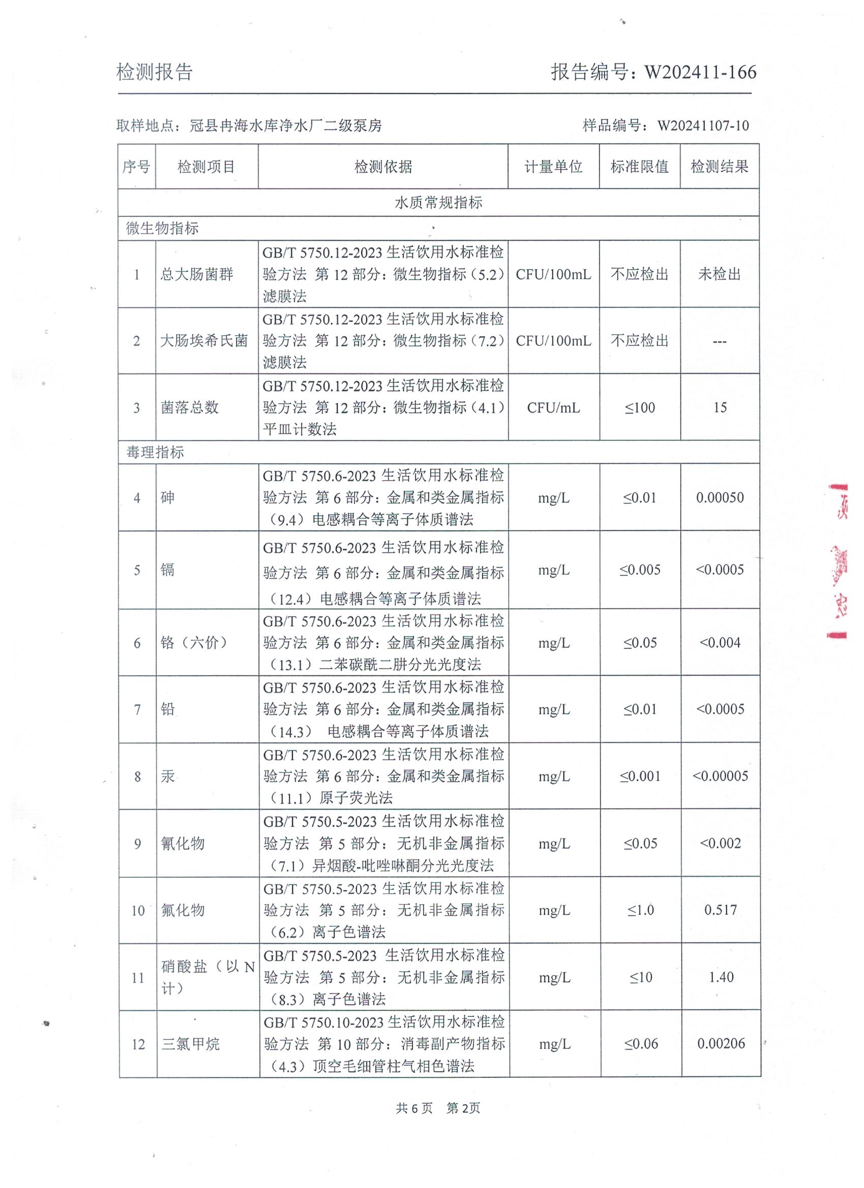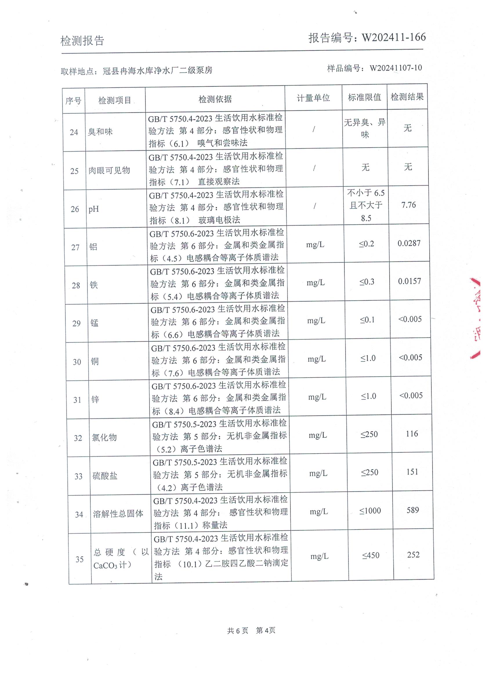 2024年11月出厂水水质检测报告