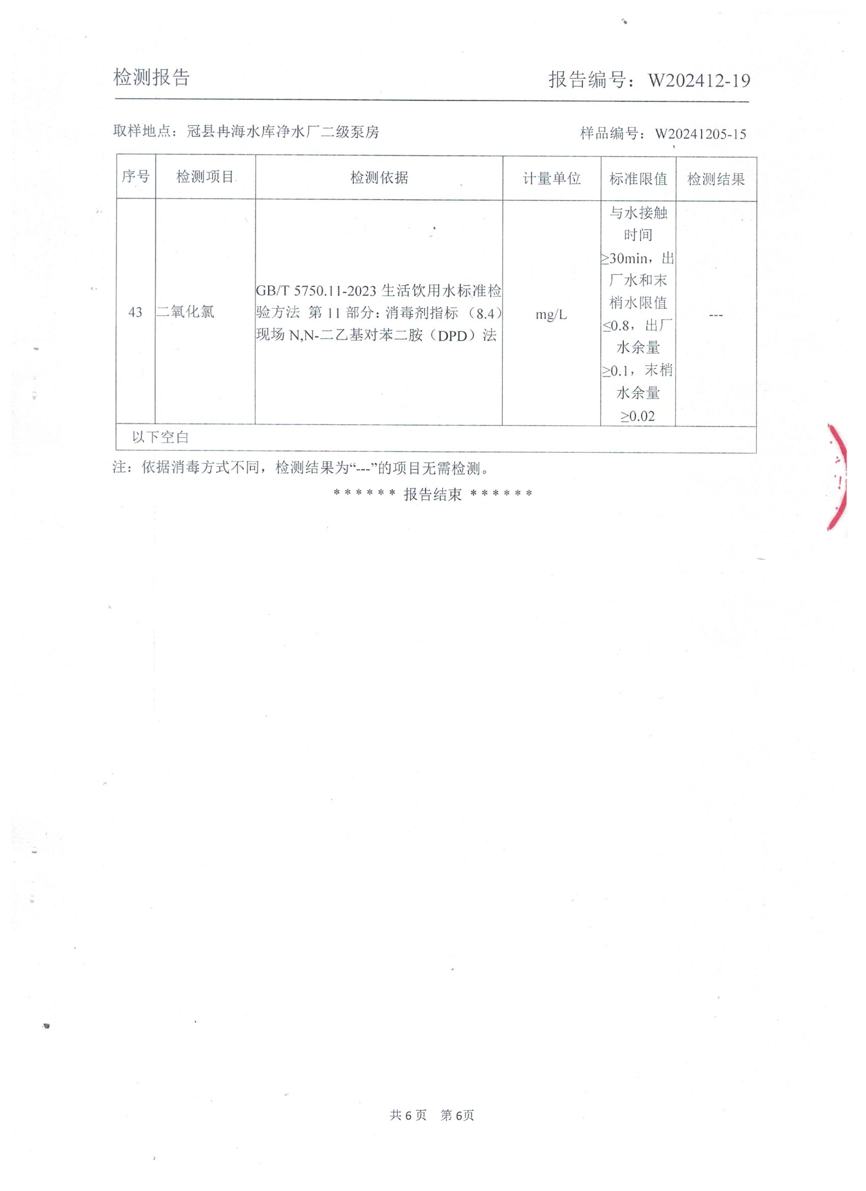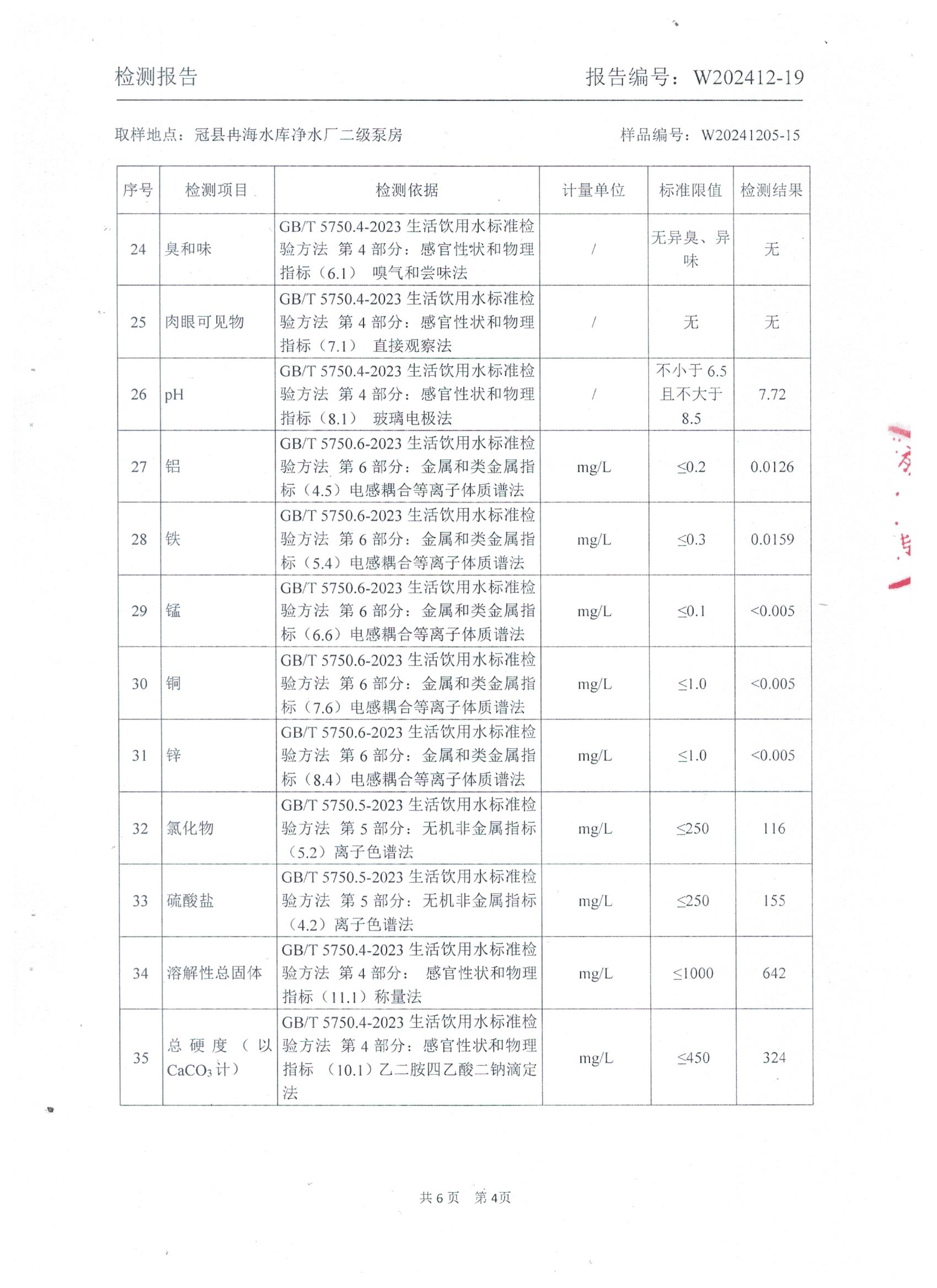 2024年12月出厂水水质检测报告