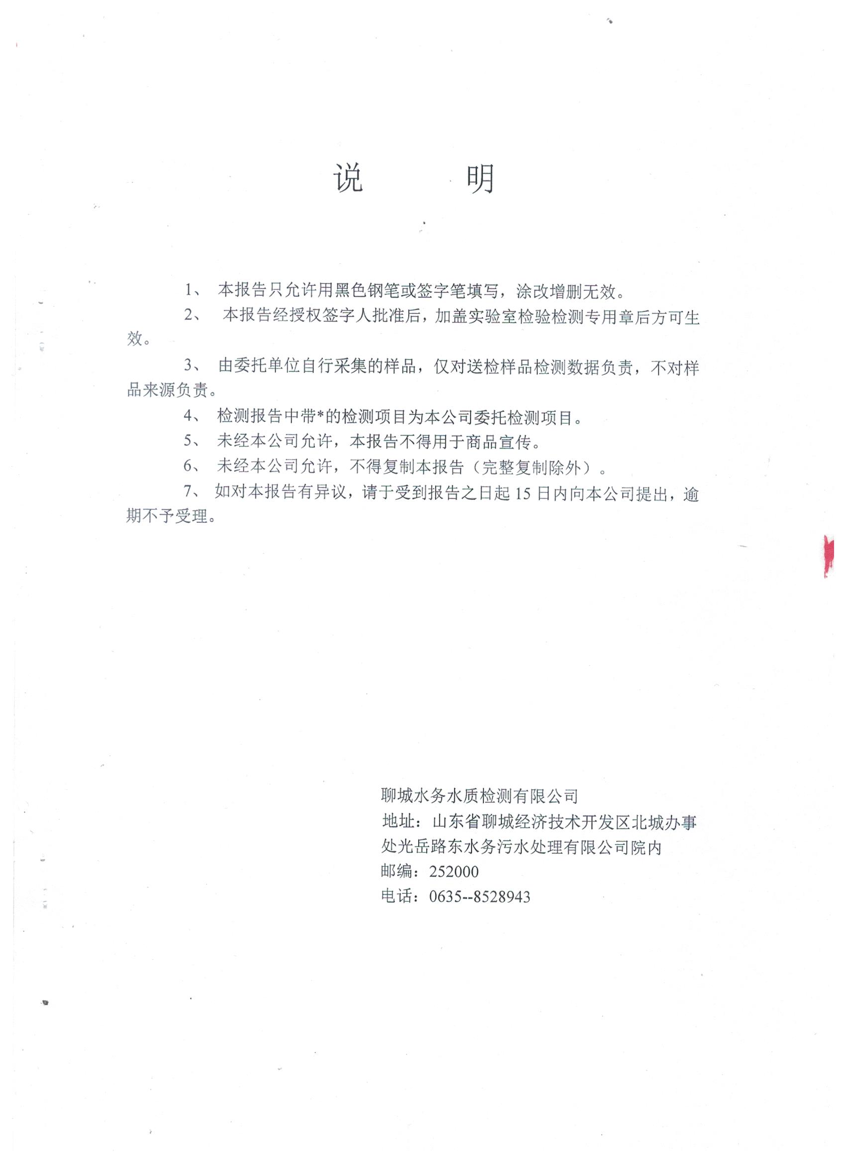 冠县自来水水质信息