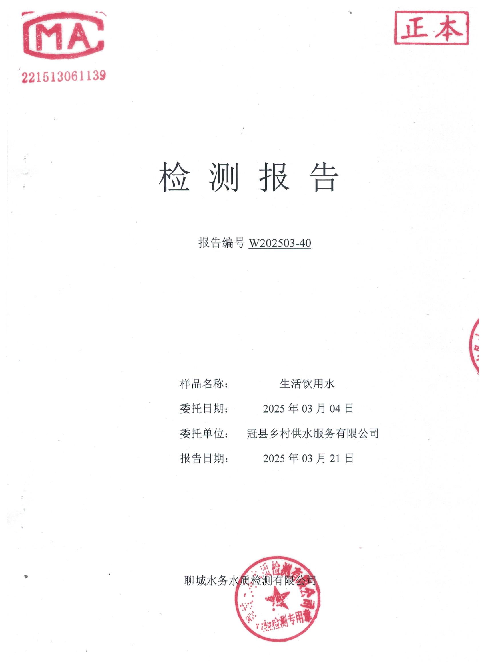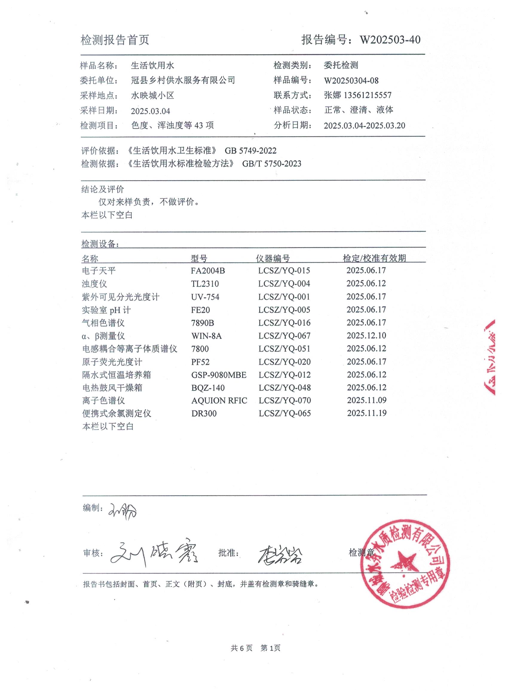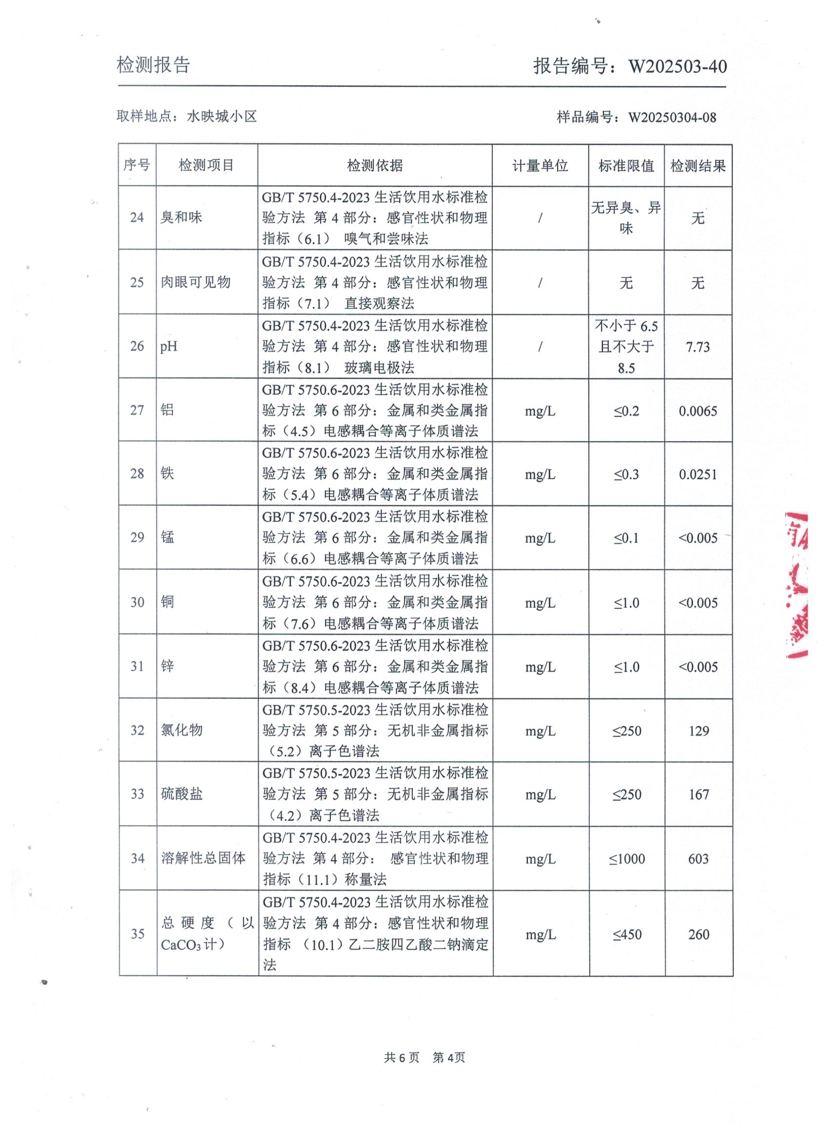 2025年3月管网水水质检测报告(水映城小区)