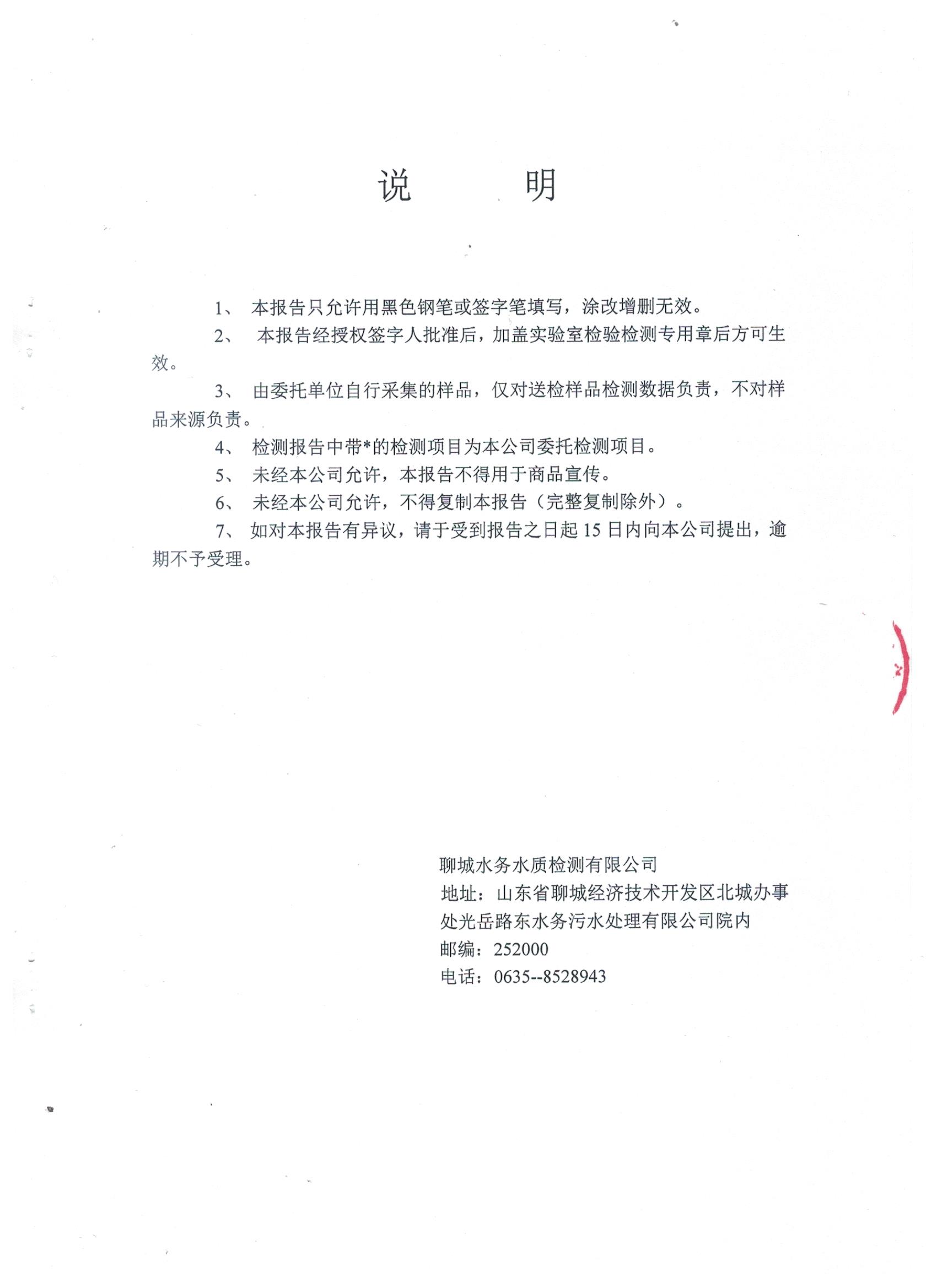 冠县自来水水质信息