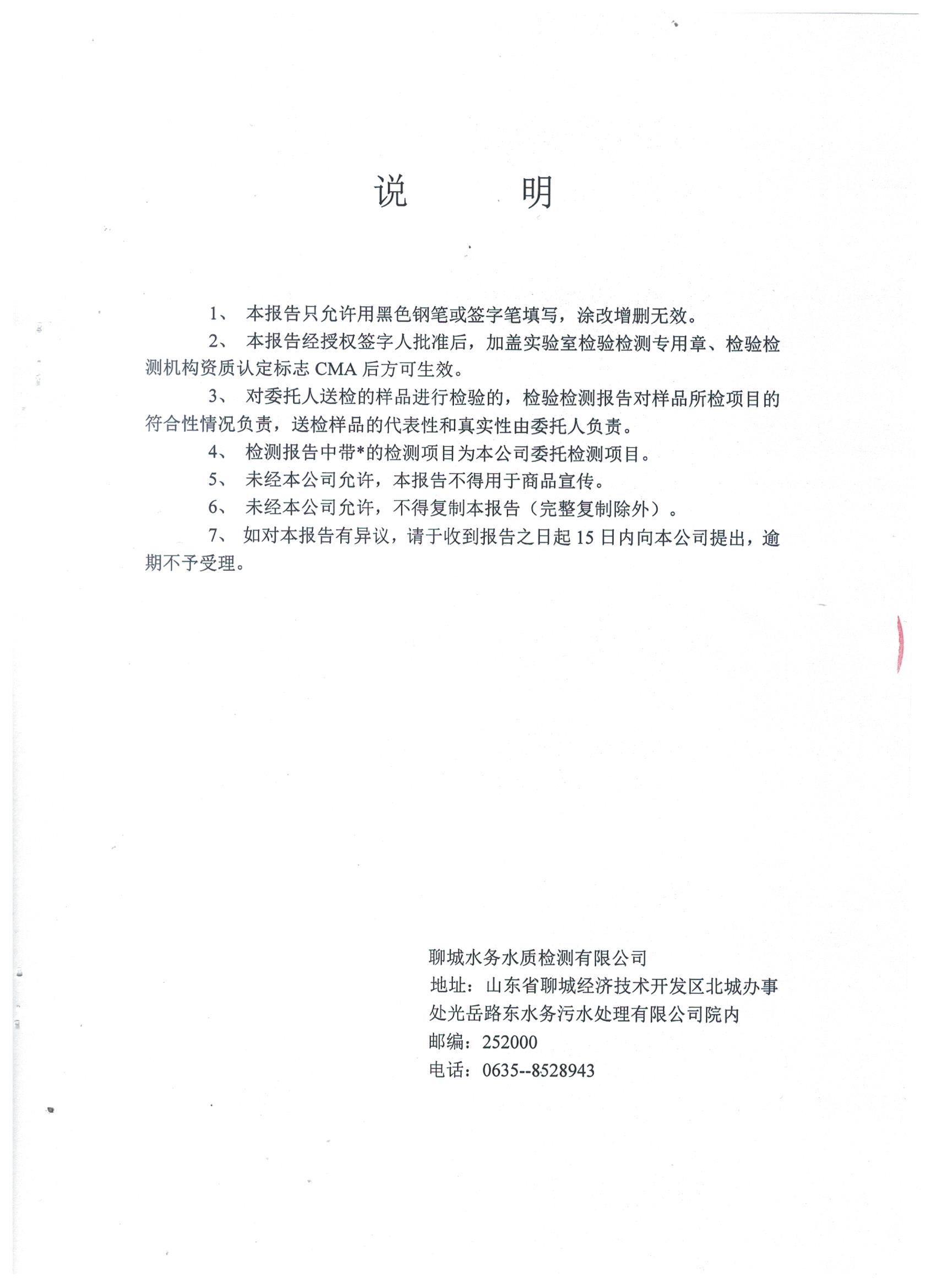 冠县自来水水质信息