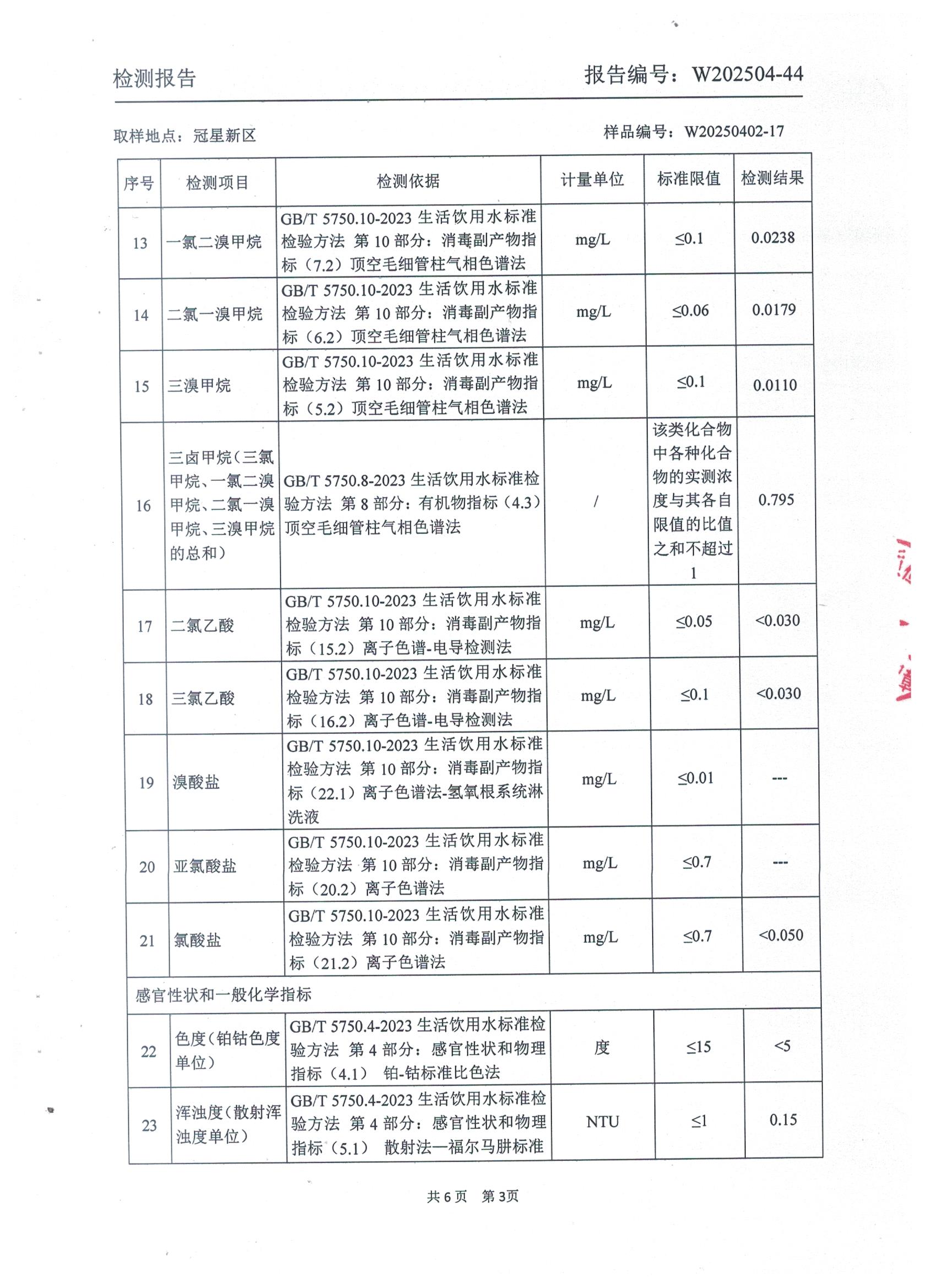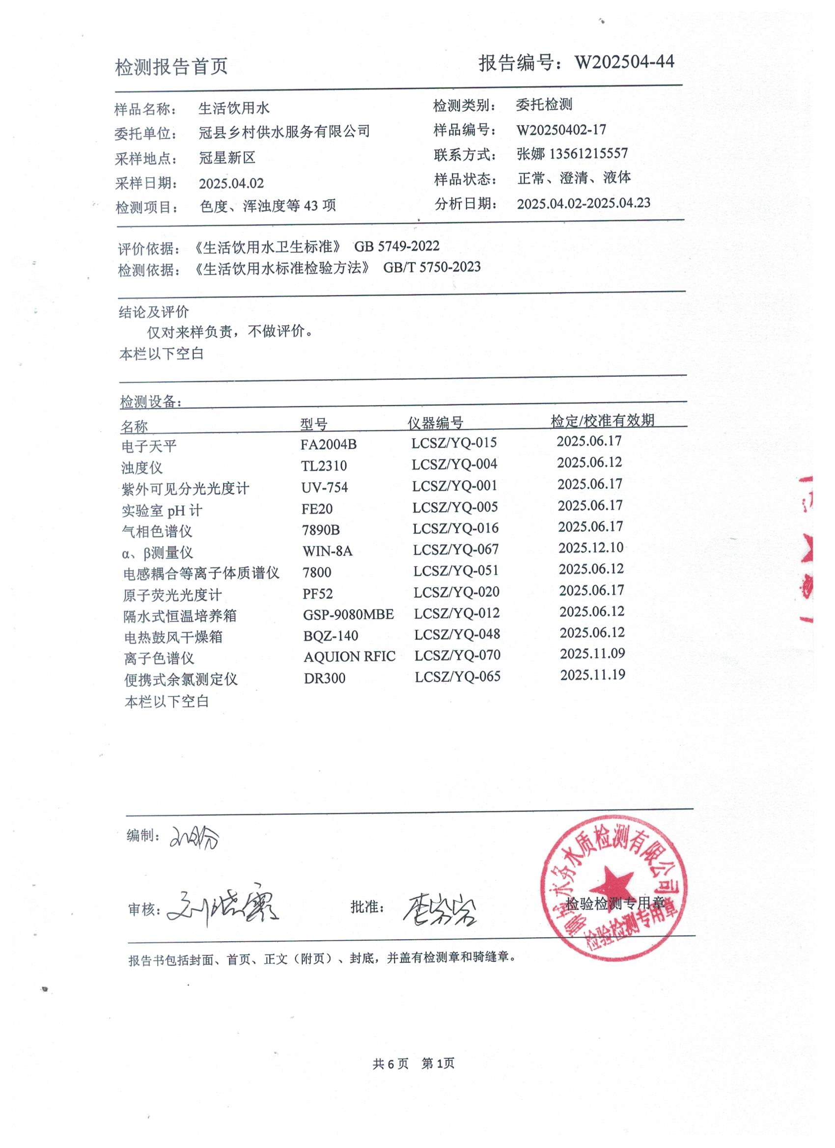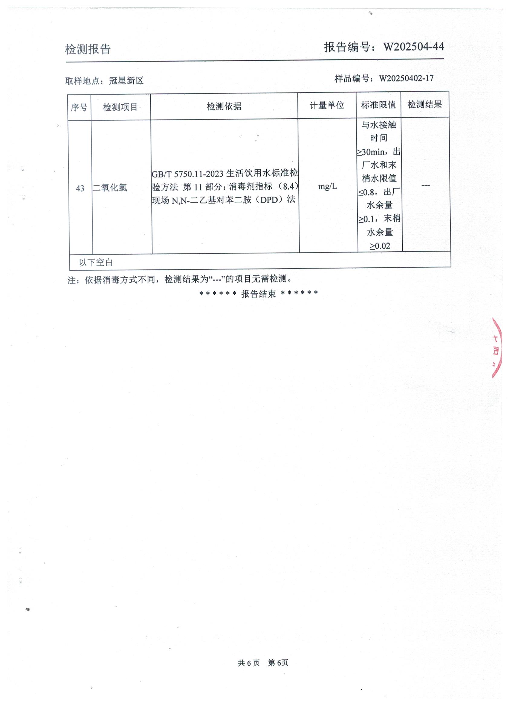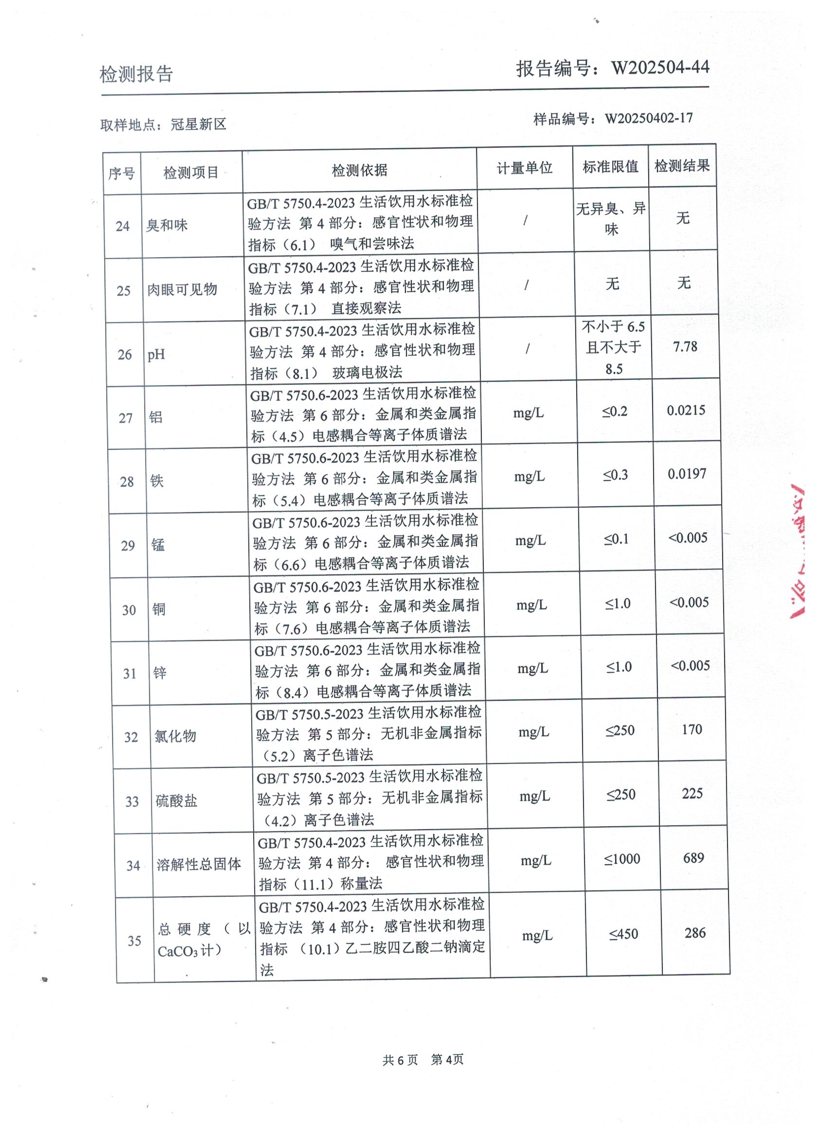 2025年4月管网水水质检测报告(冠星新区)