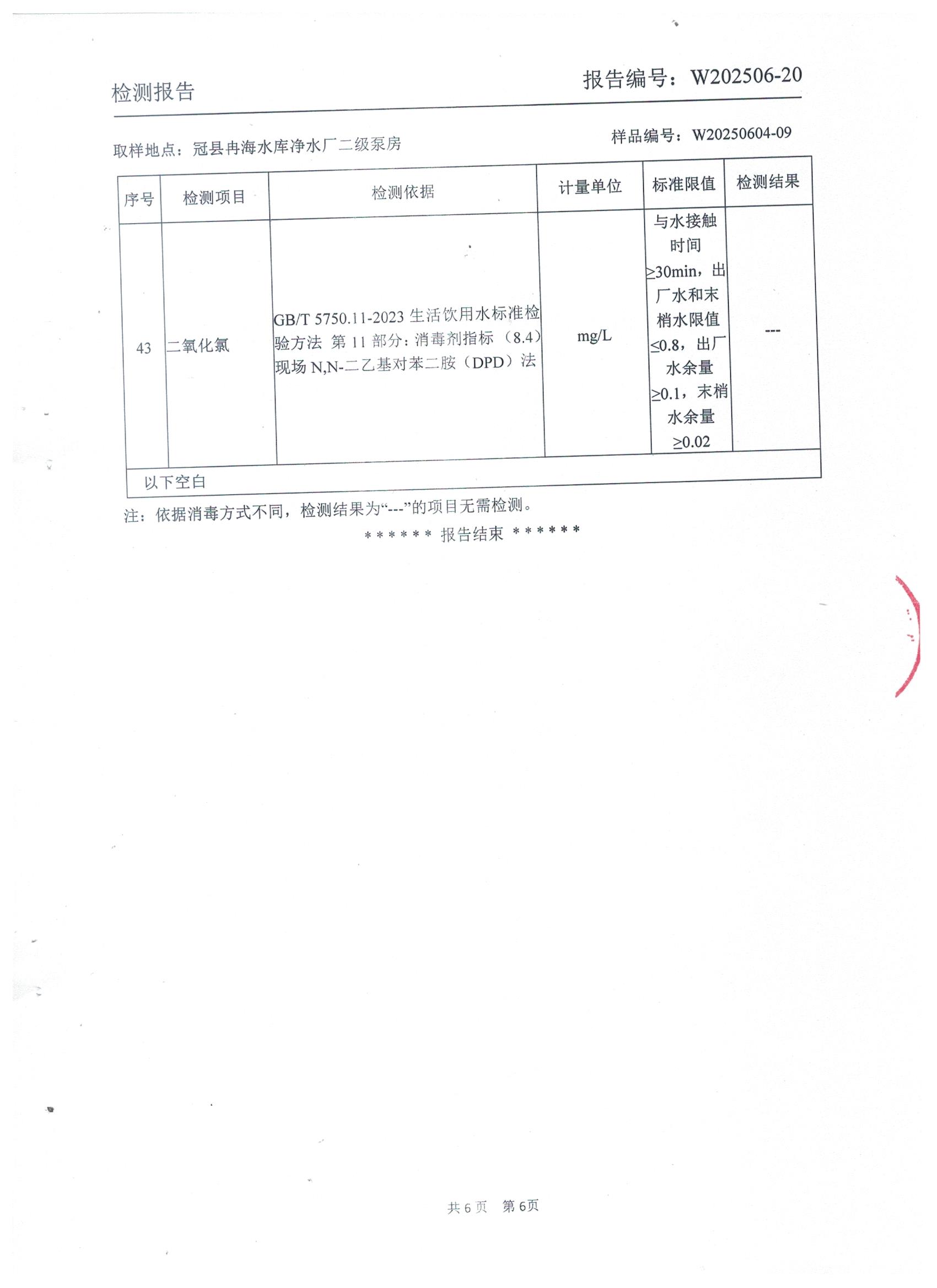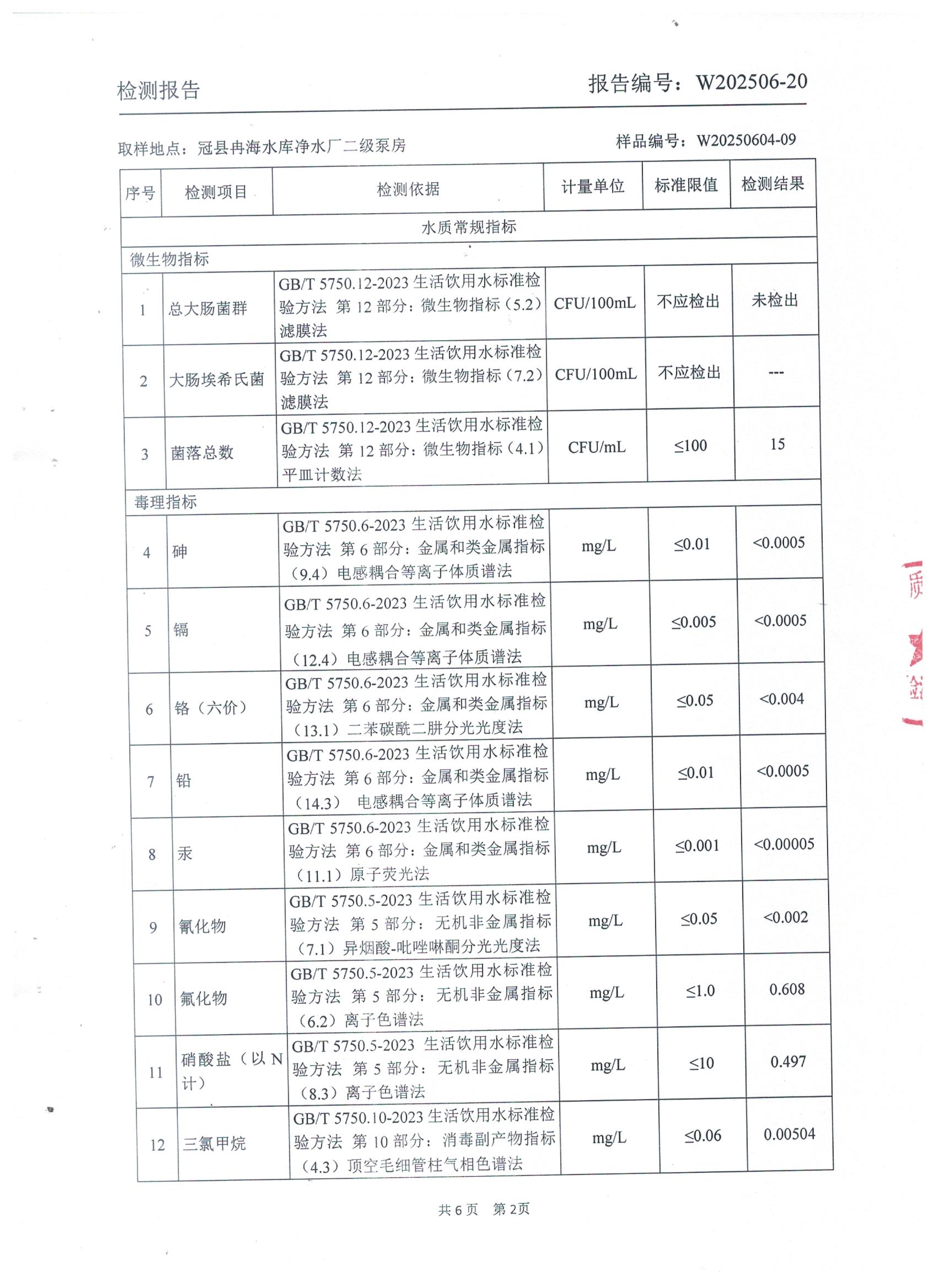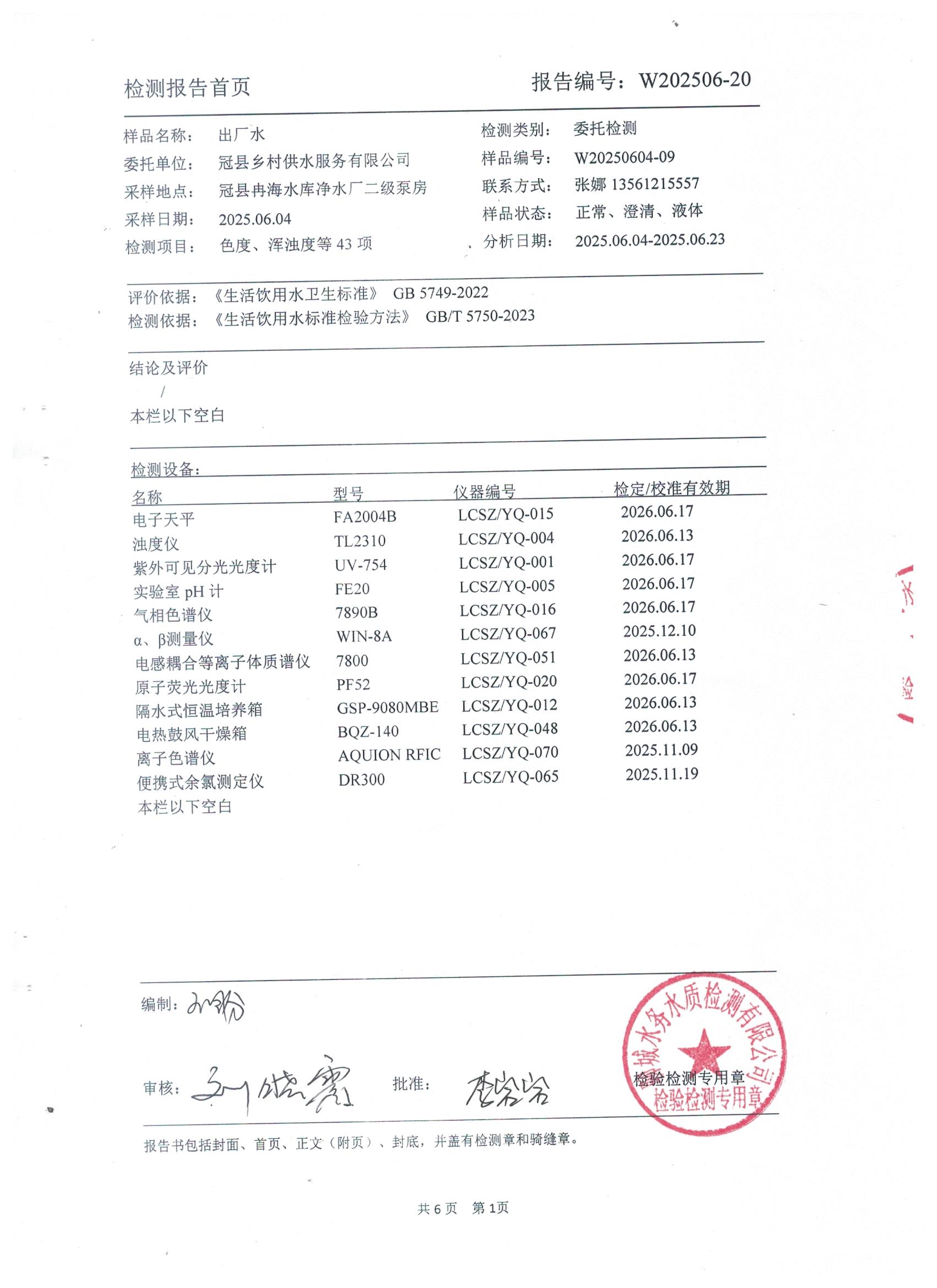 2025年6月出厂水水质检测报告