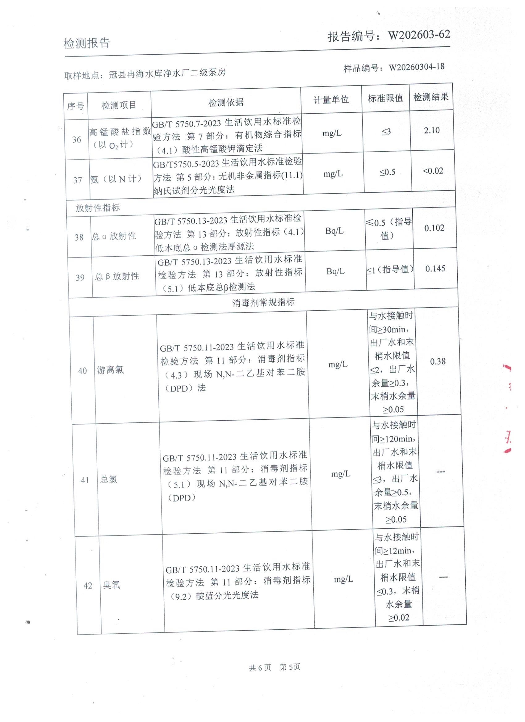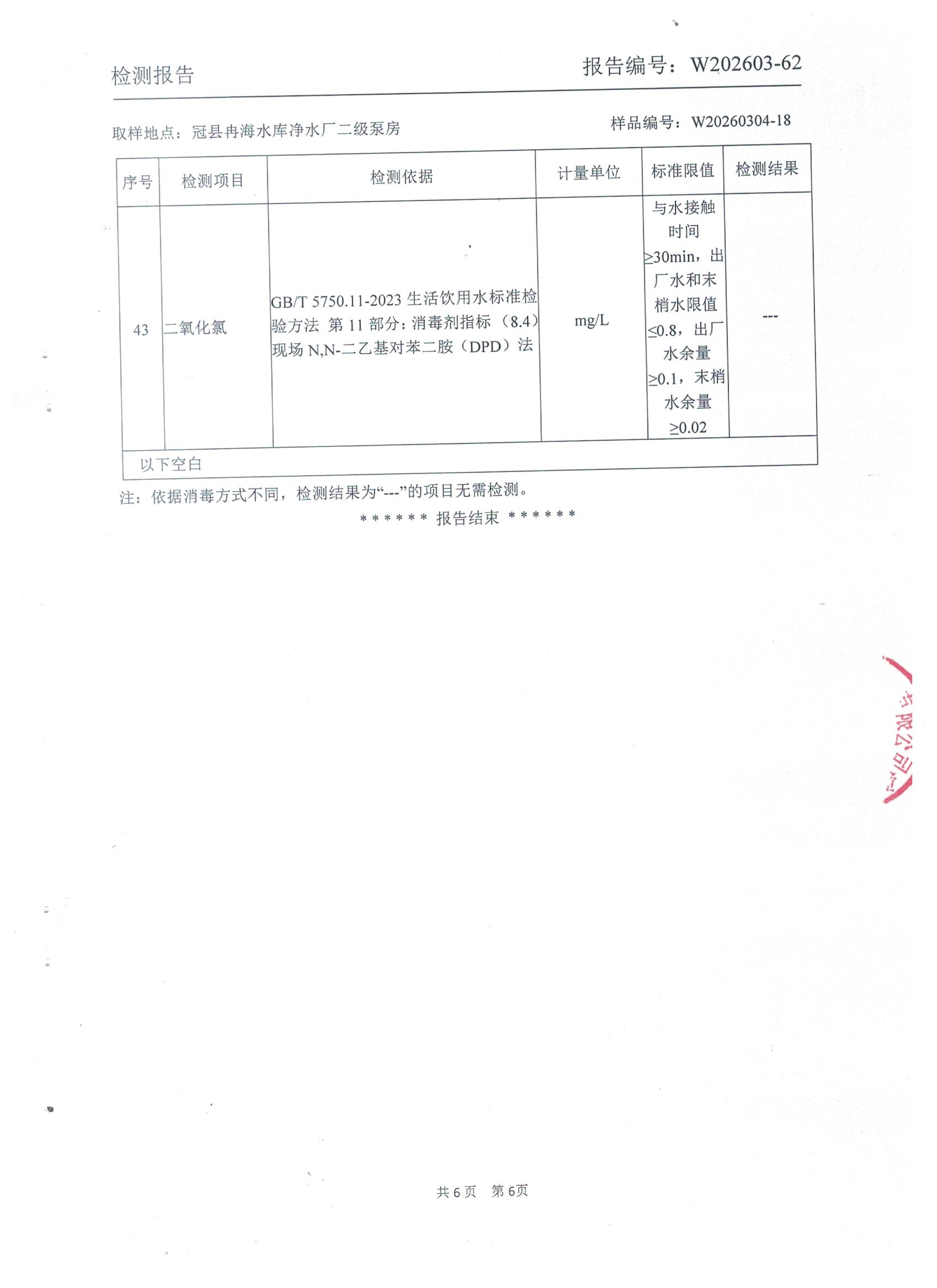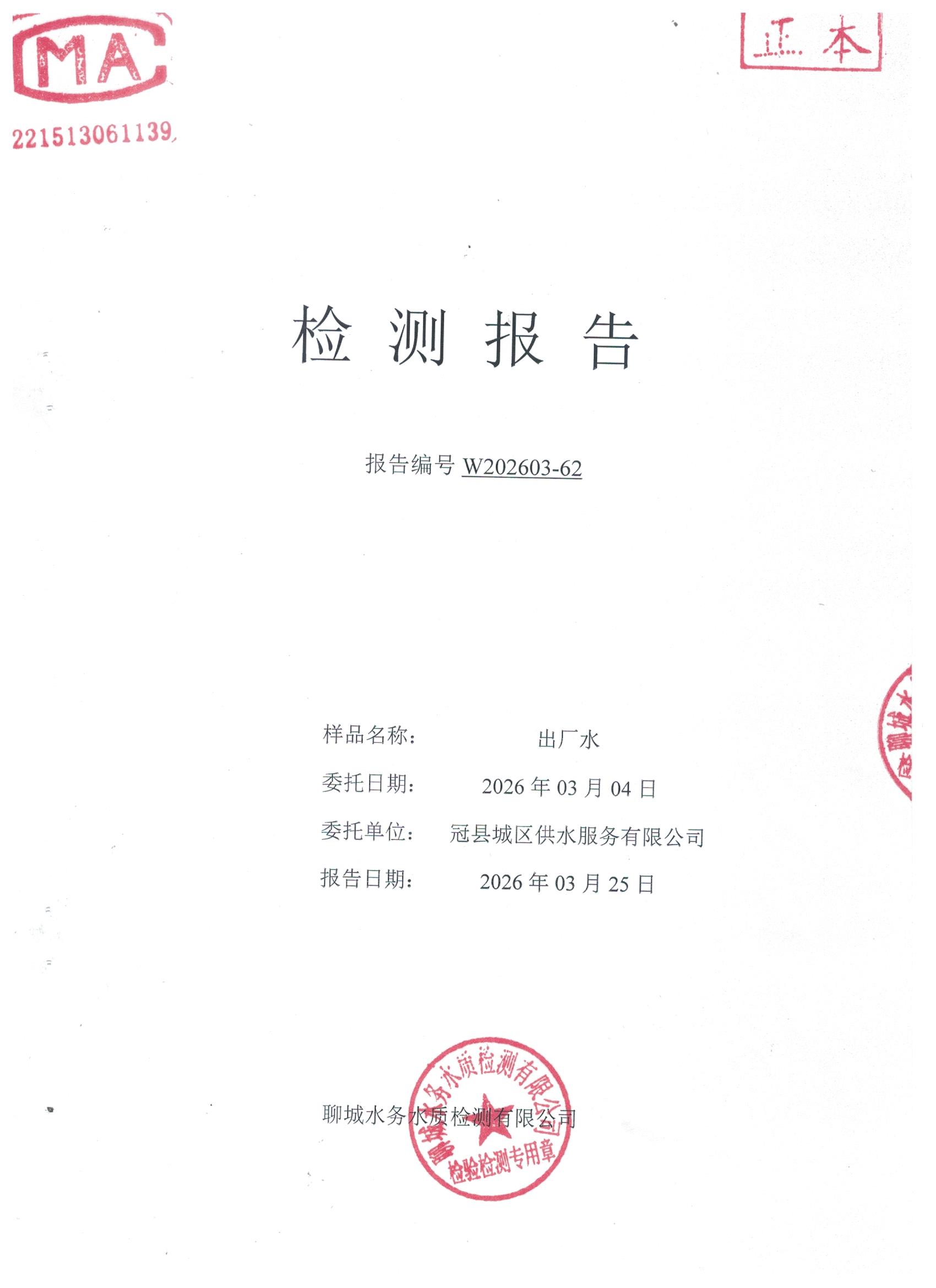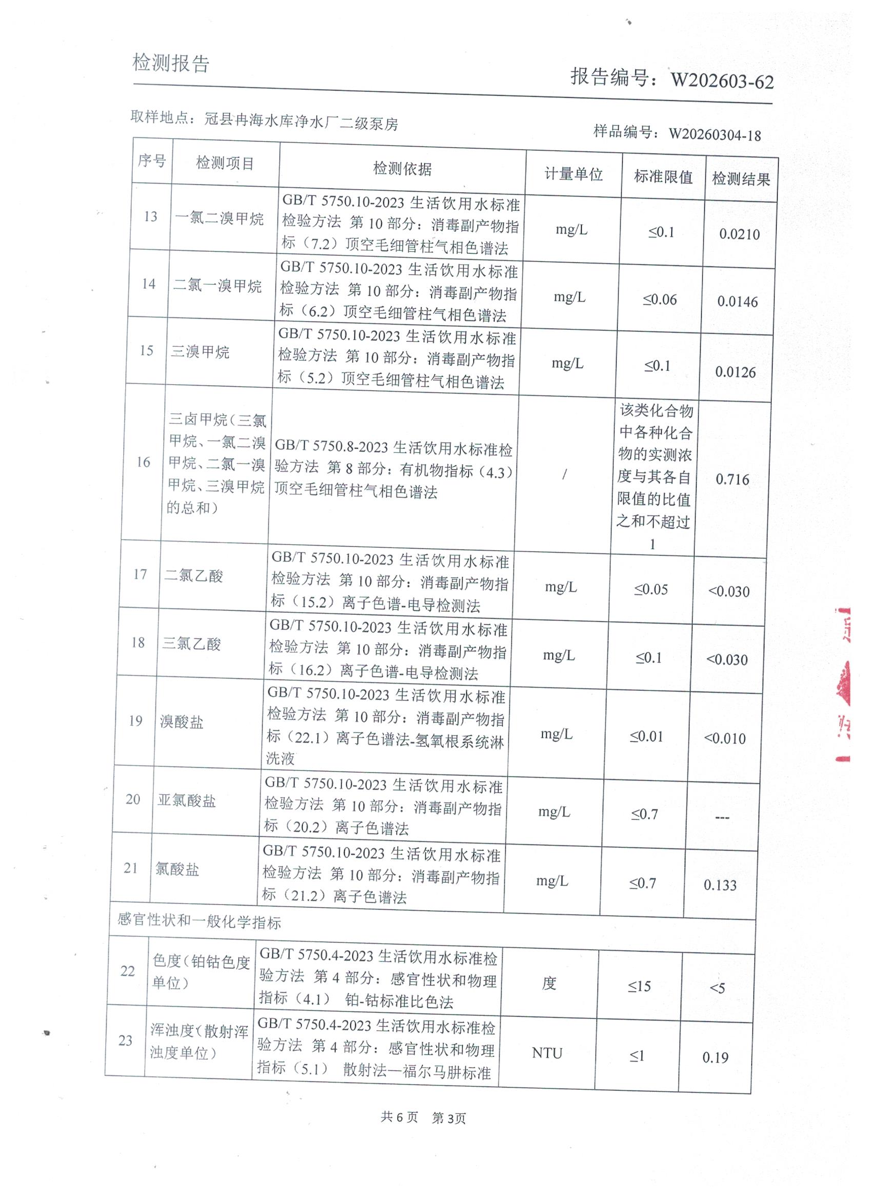 2026年3月份出厂水水质检测报告