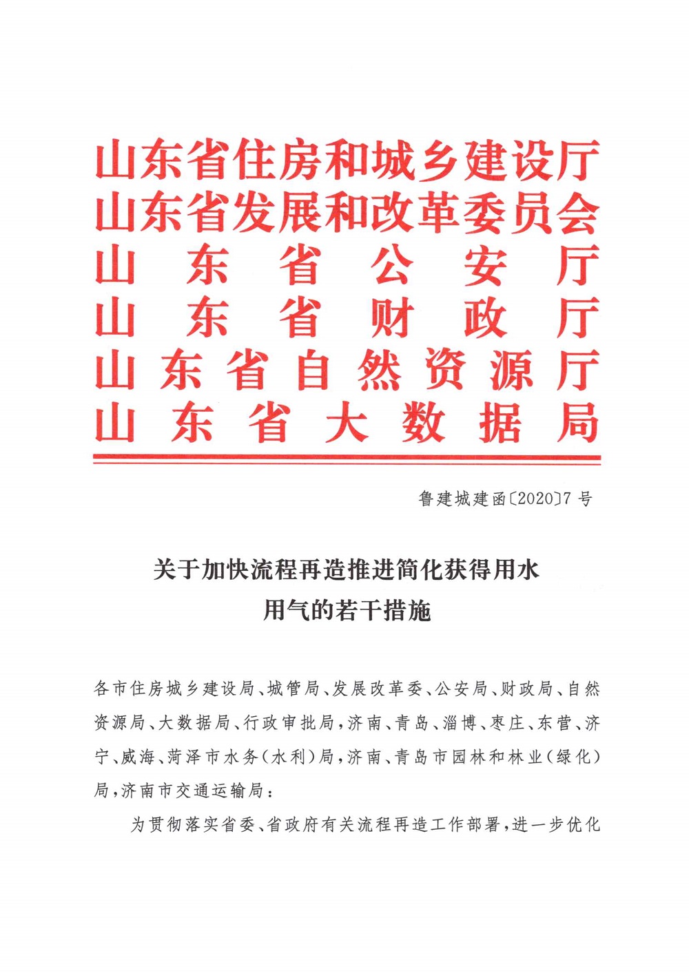 关于加快流程再造推进简化获得用水用气的若干措施_