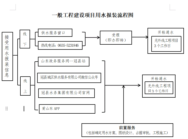 一般工程建设 项目用水报装流程图