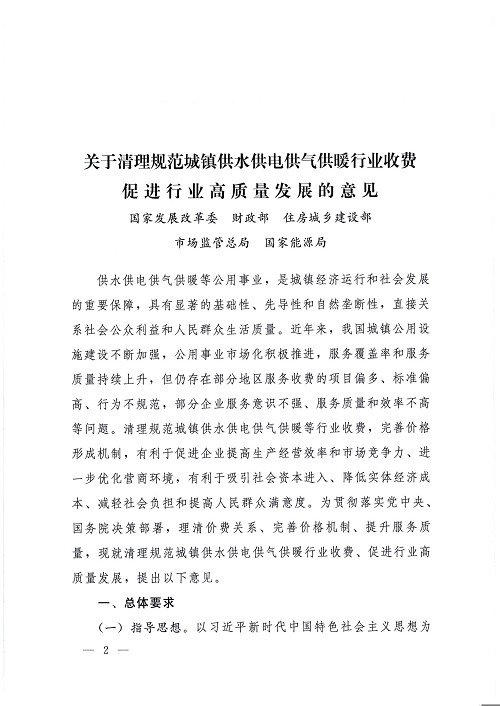 关于清理规范城镇供水供电供气供暖行业收费的通知