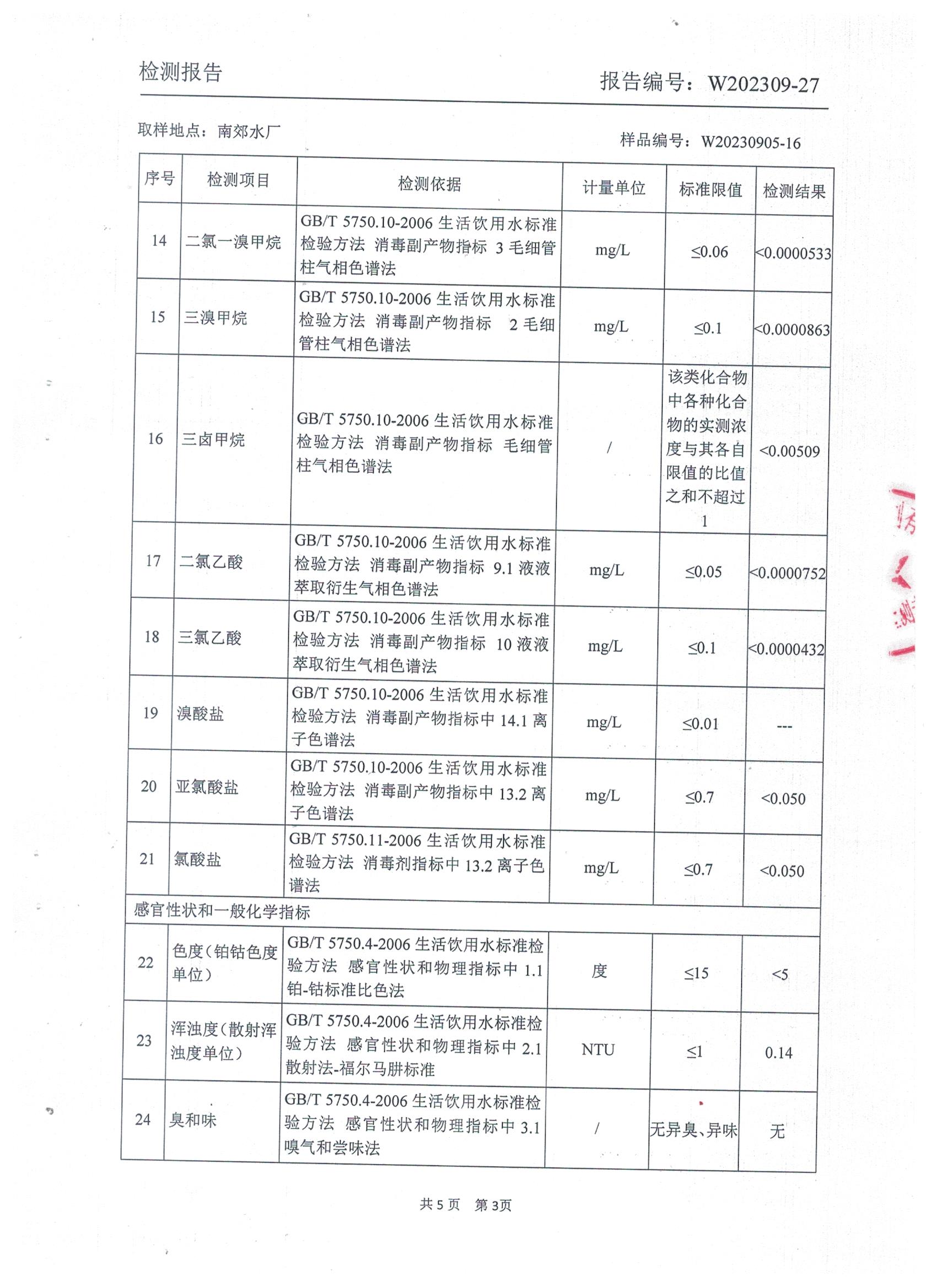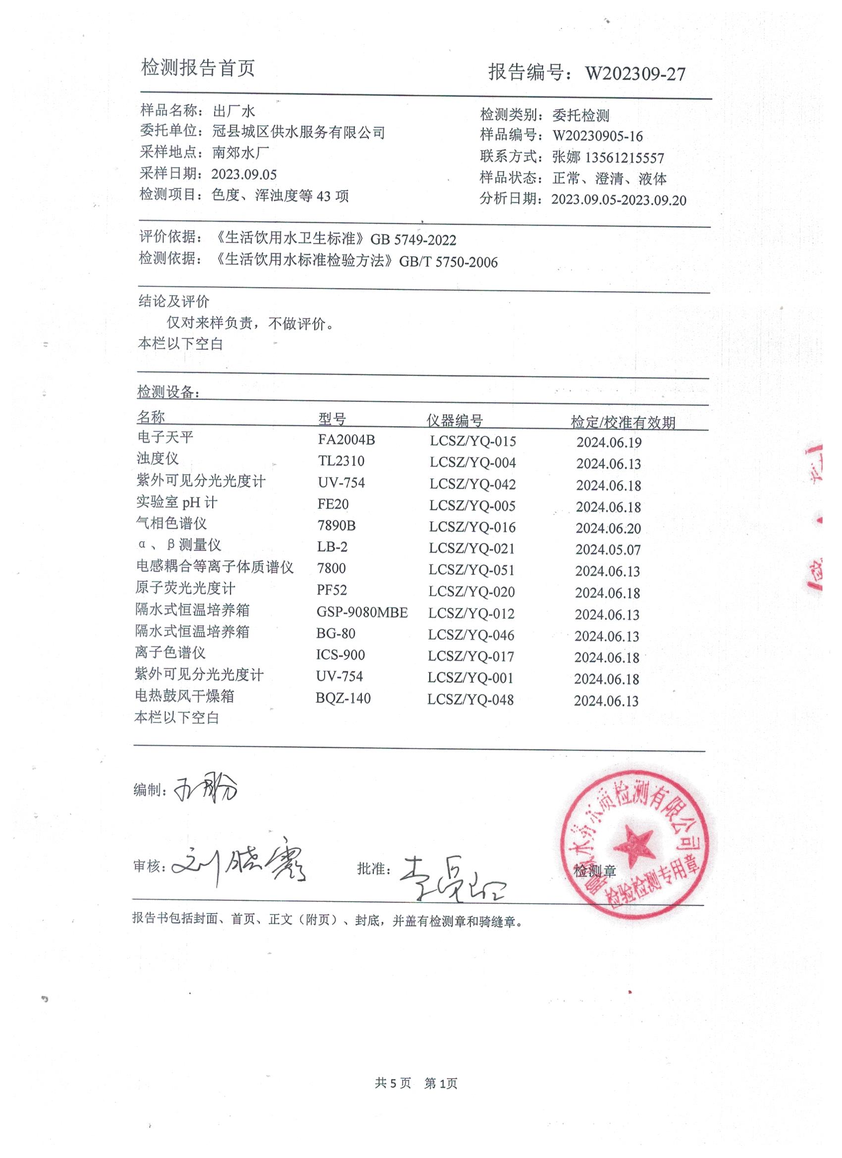 2023年9月城区水质检测报告