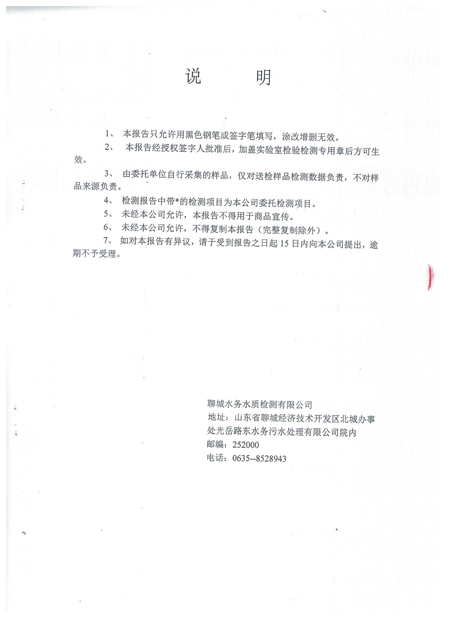 冠县自来水水质信息
