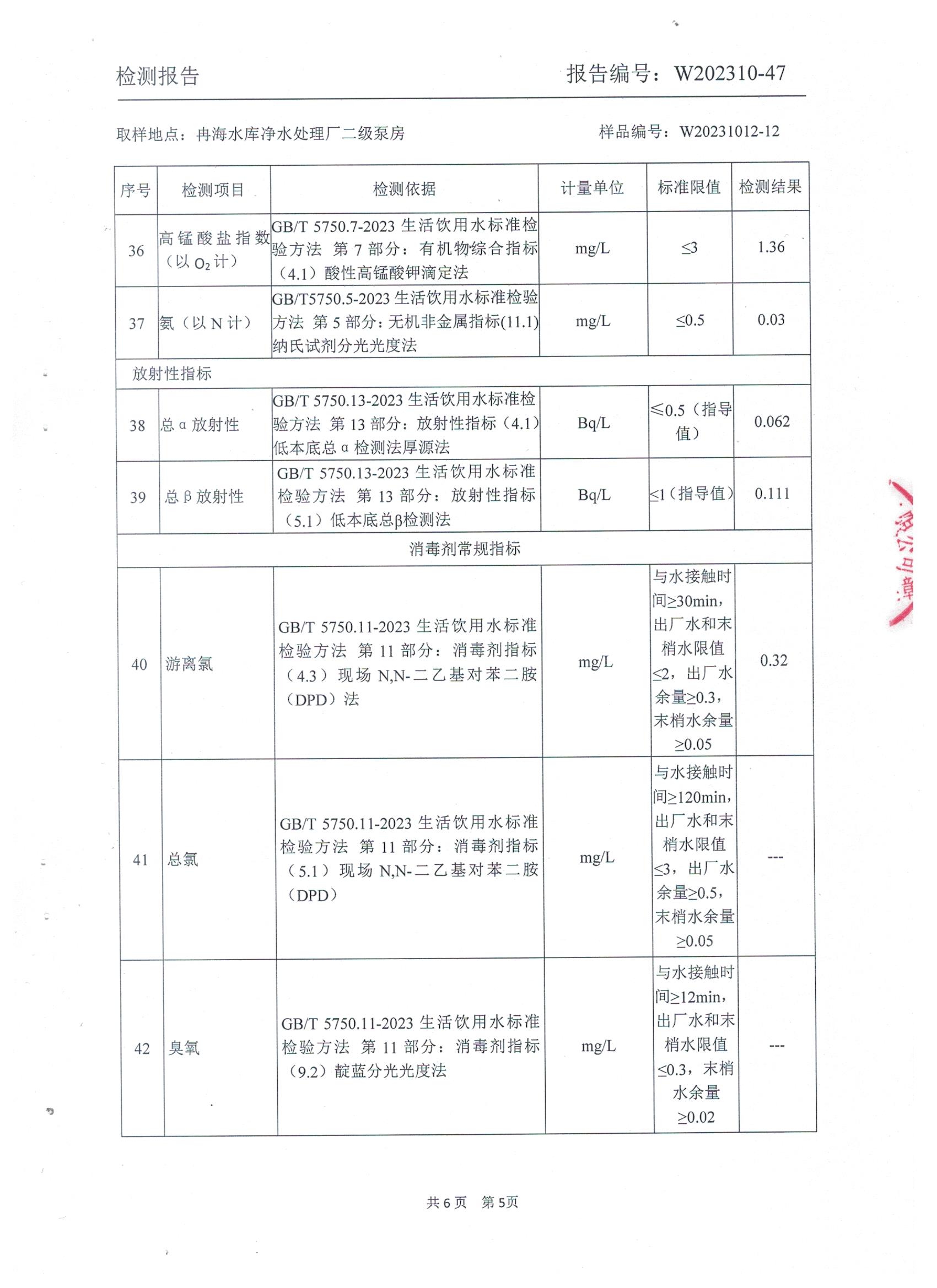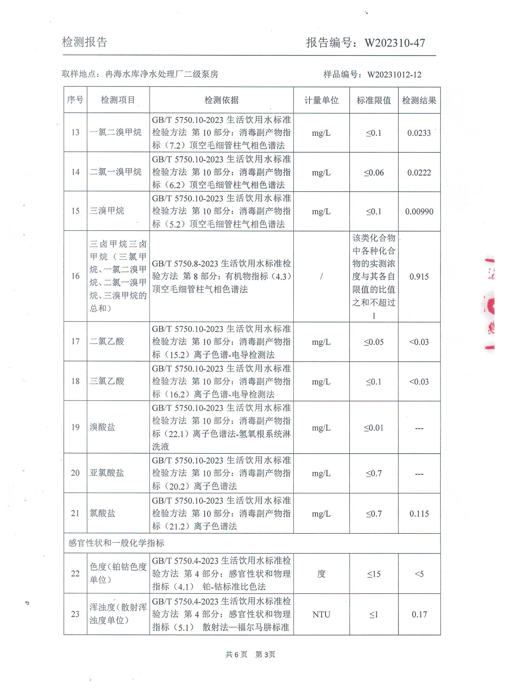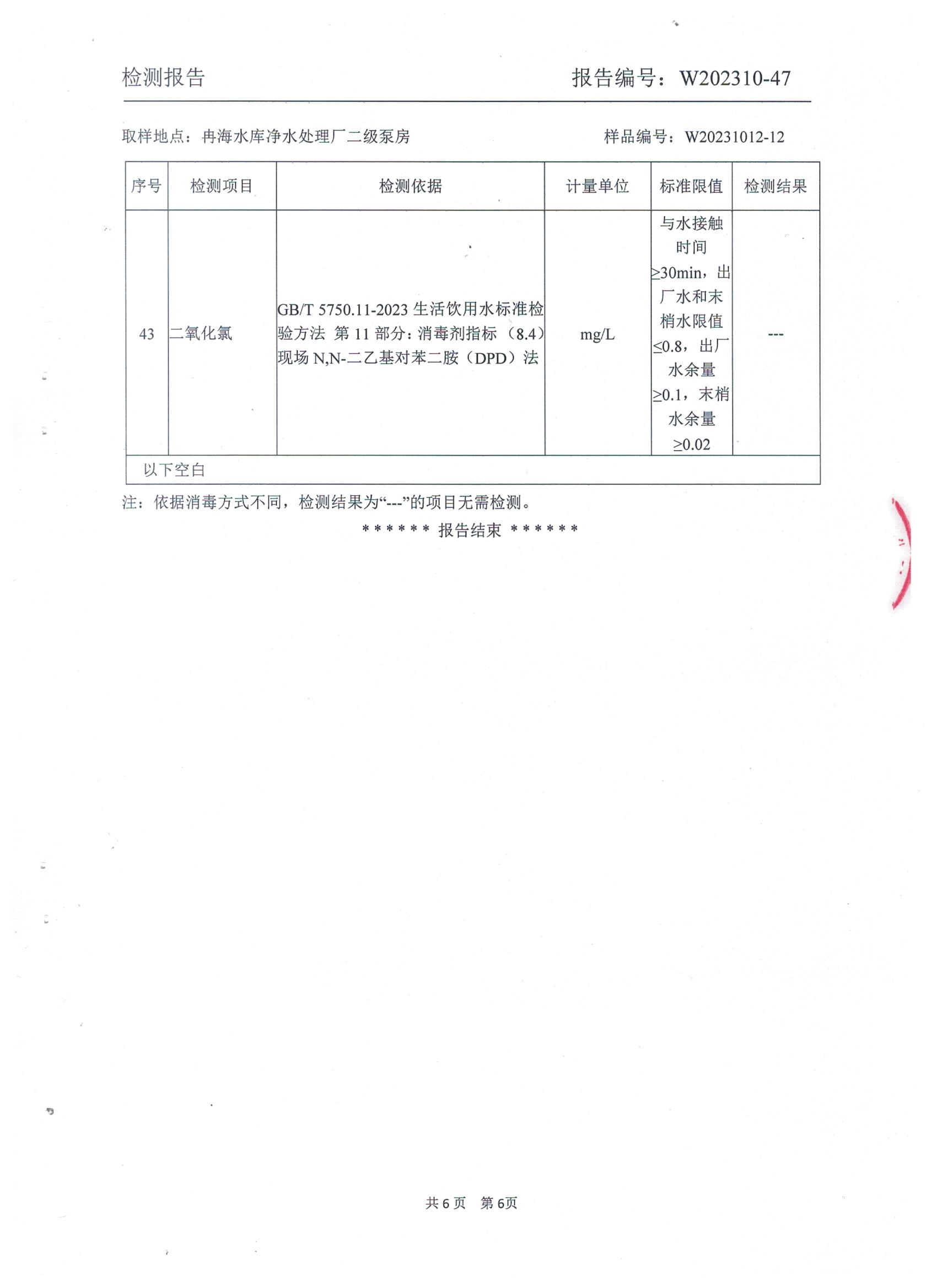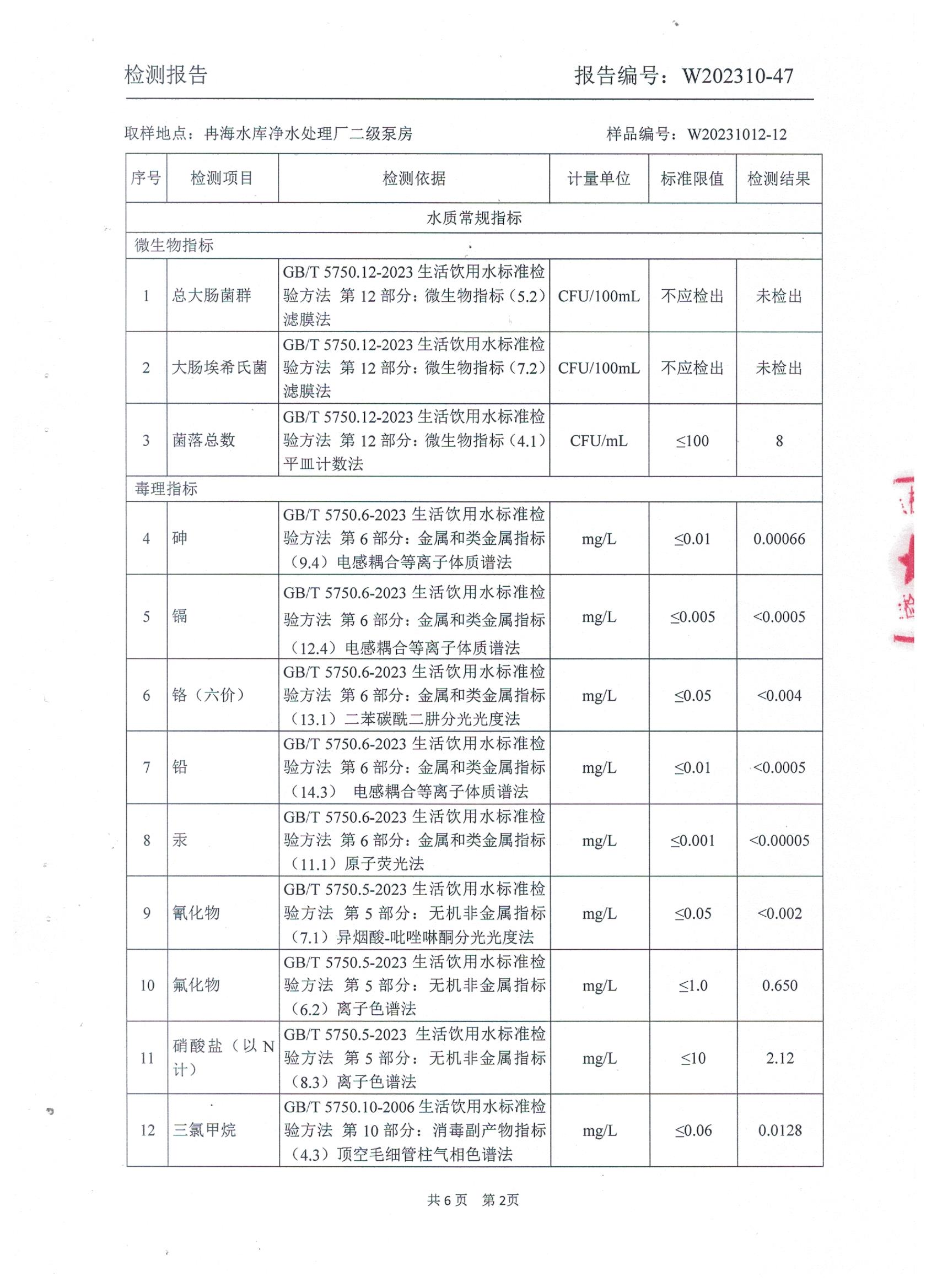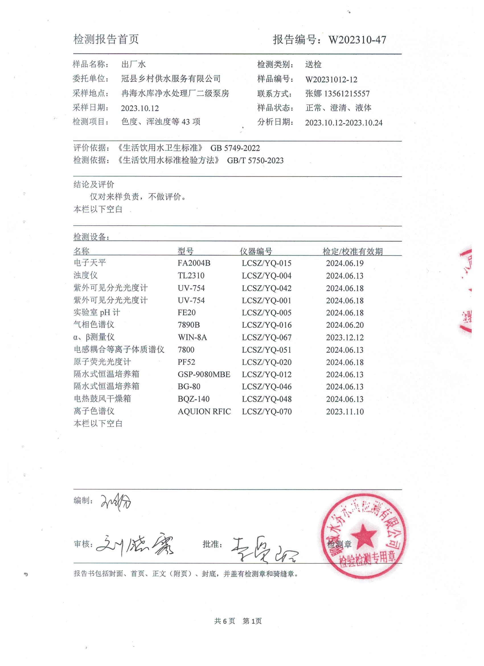 2023年10月乡村水质检测报告