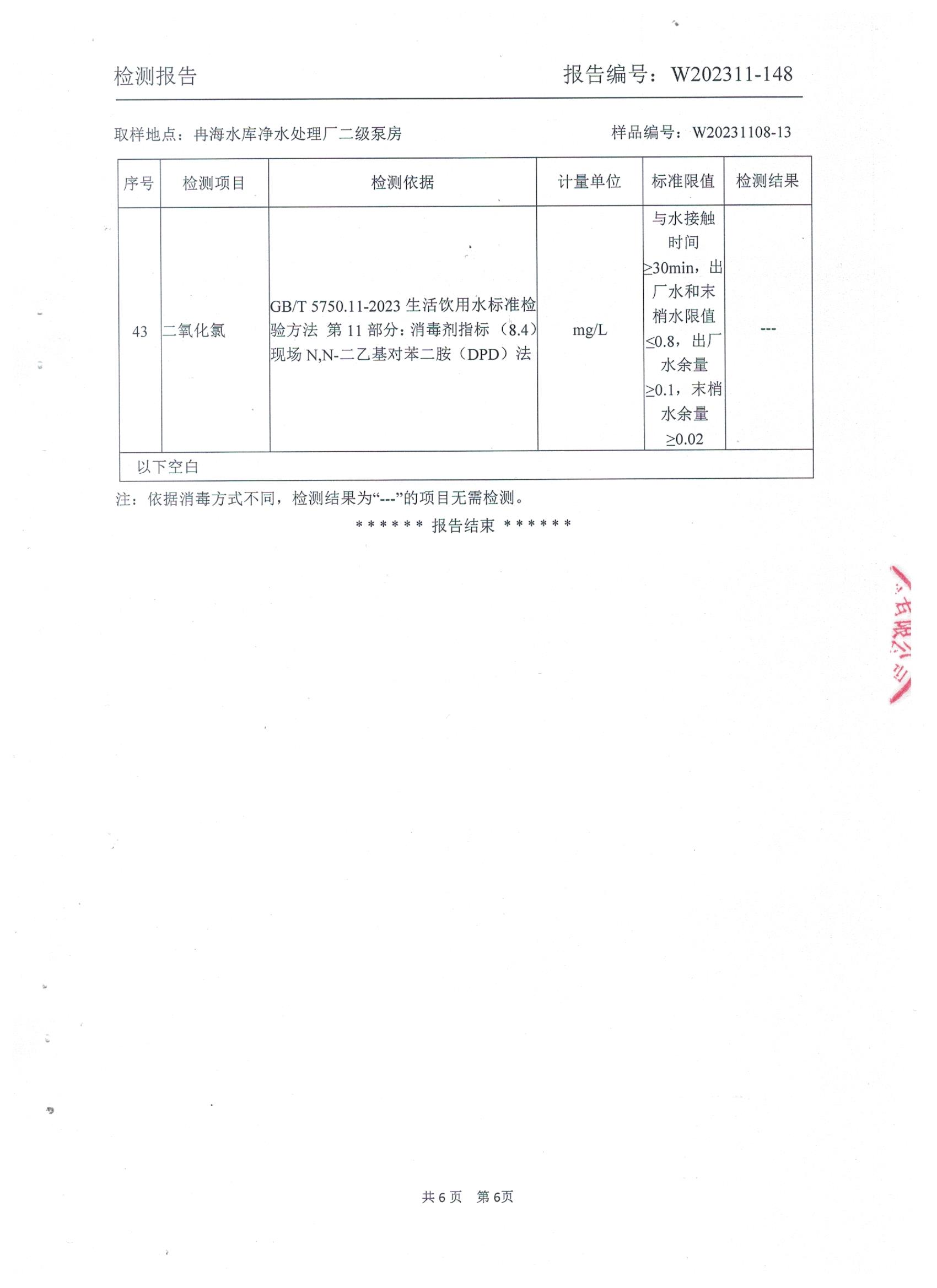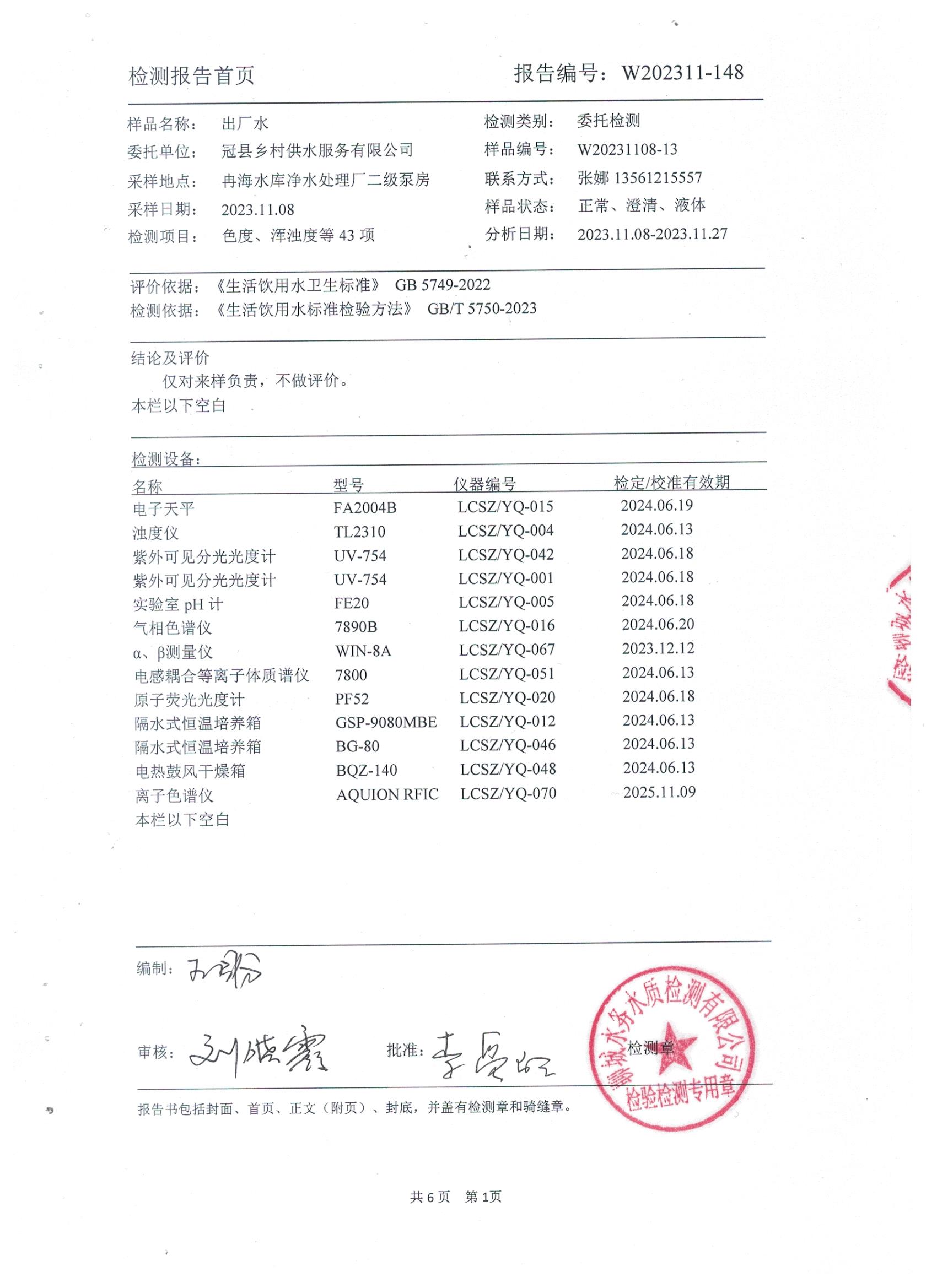 2023年11月乡村水质检测报告