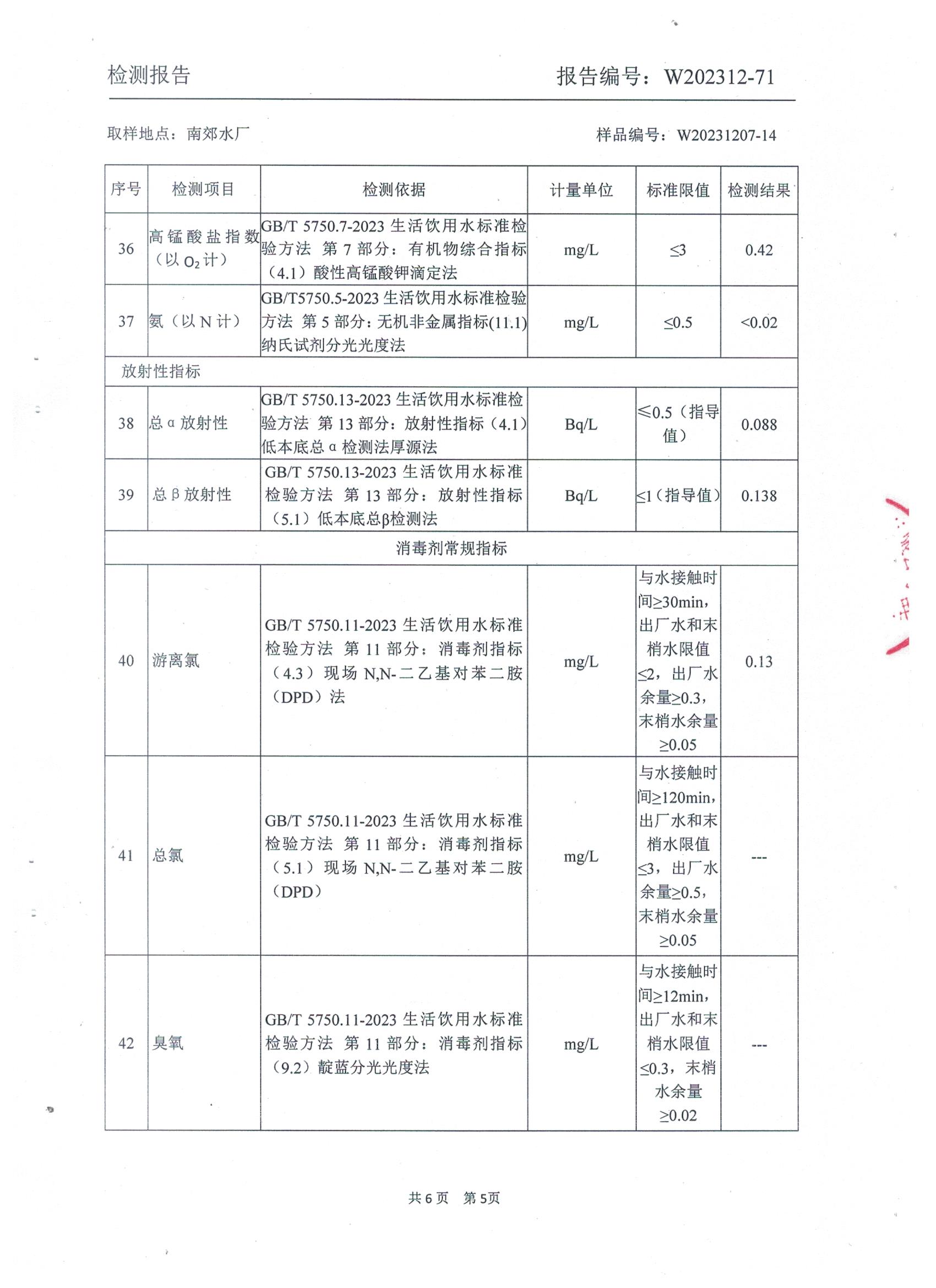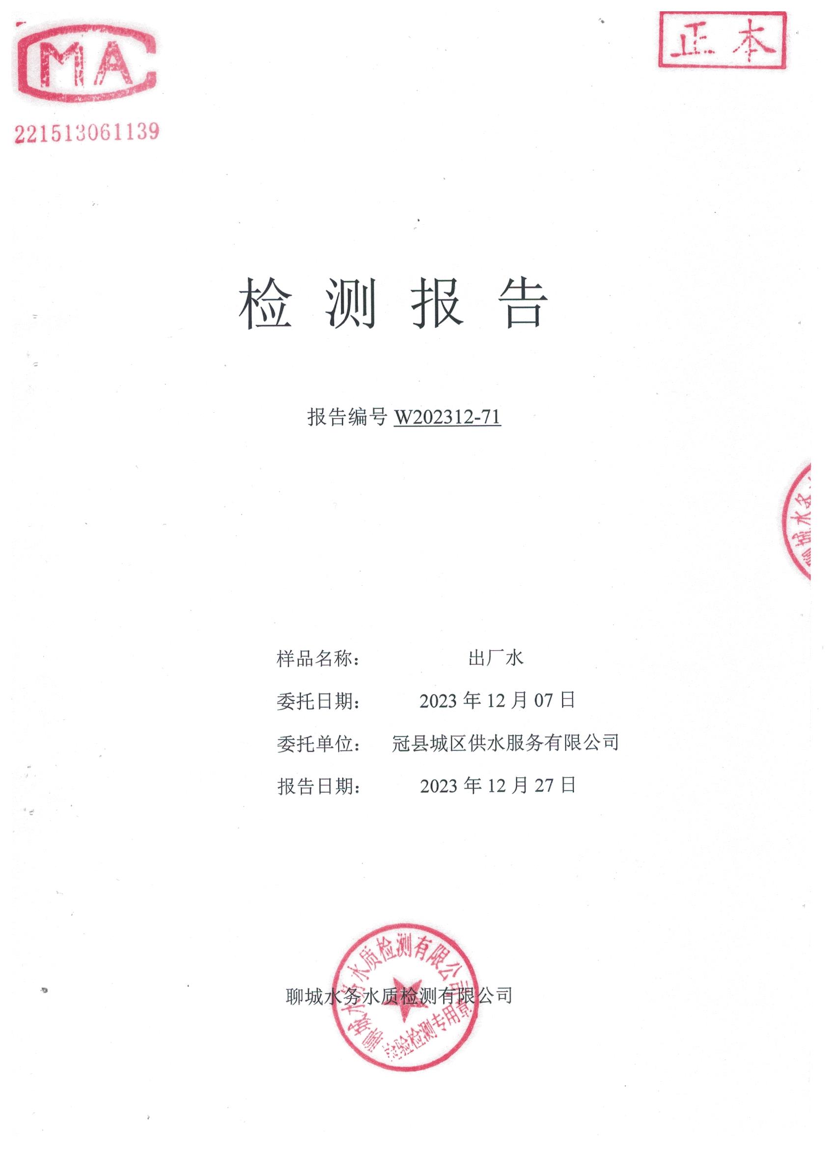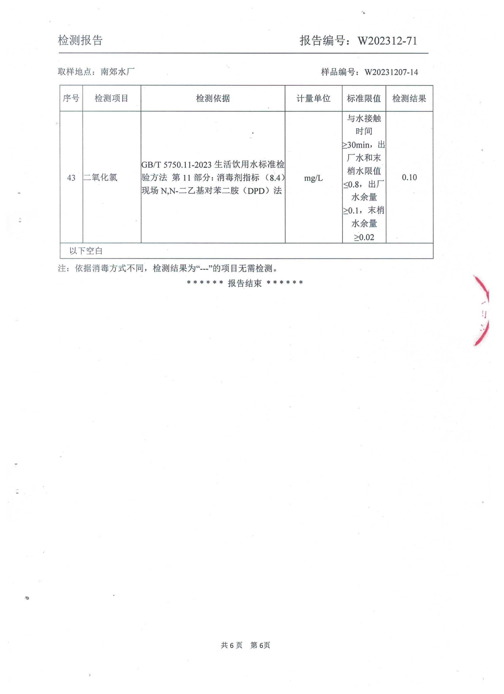 2023年12月城区出厂水(南郊水厂)