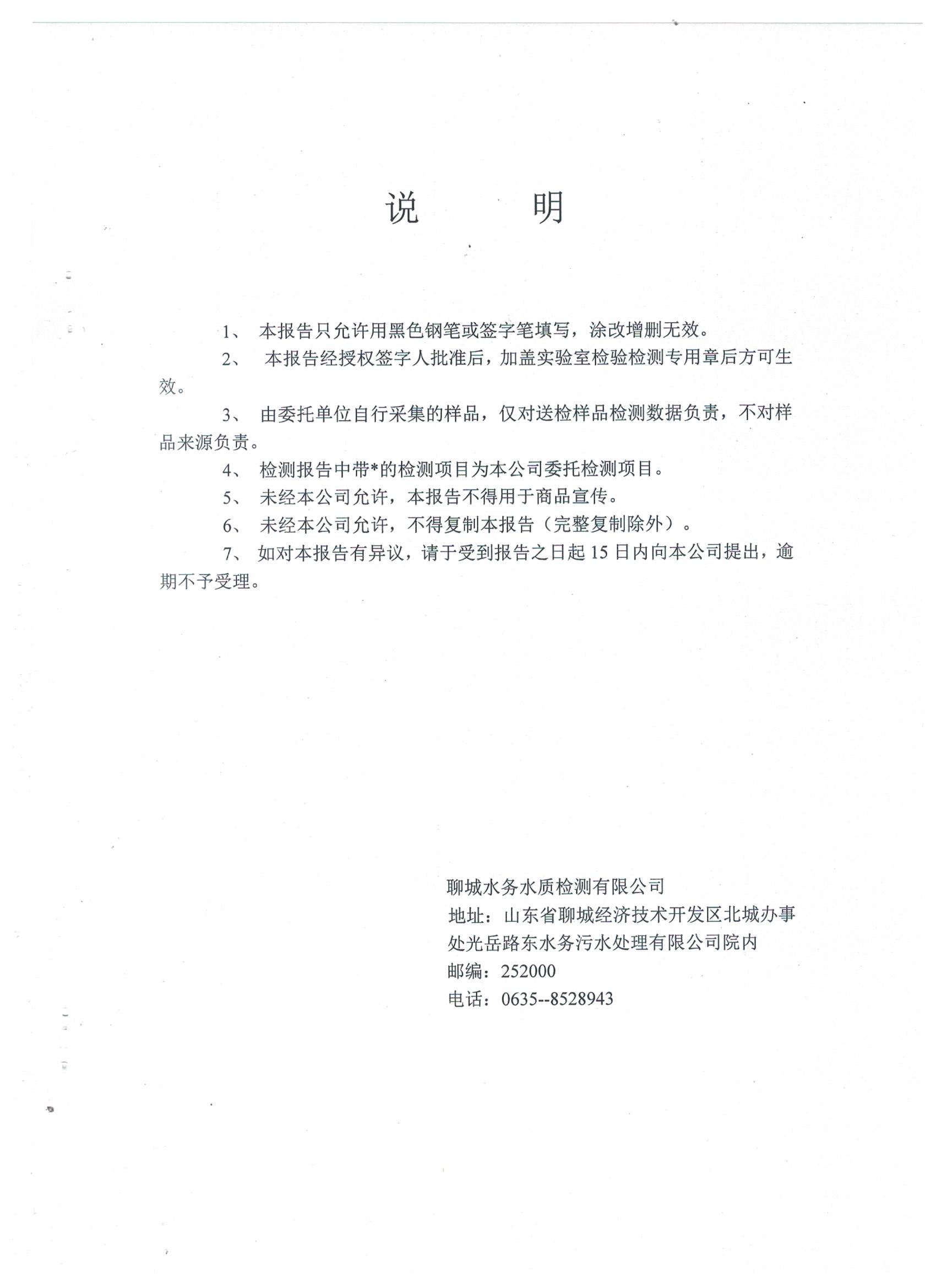 冠县自来水水质信息
