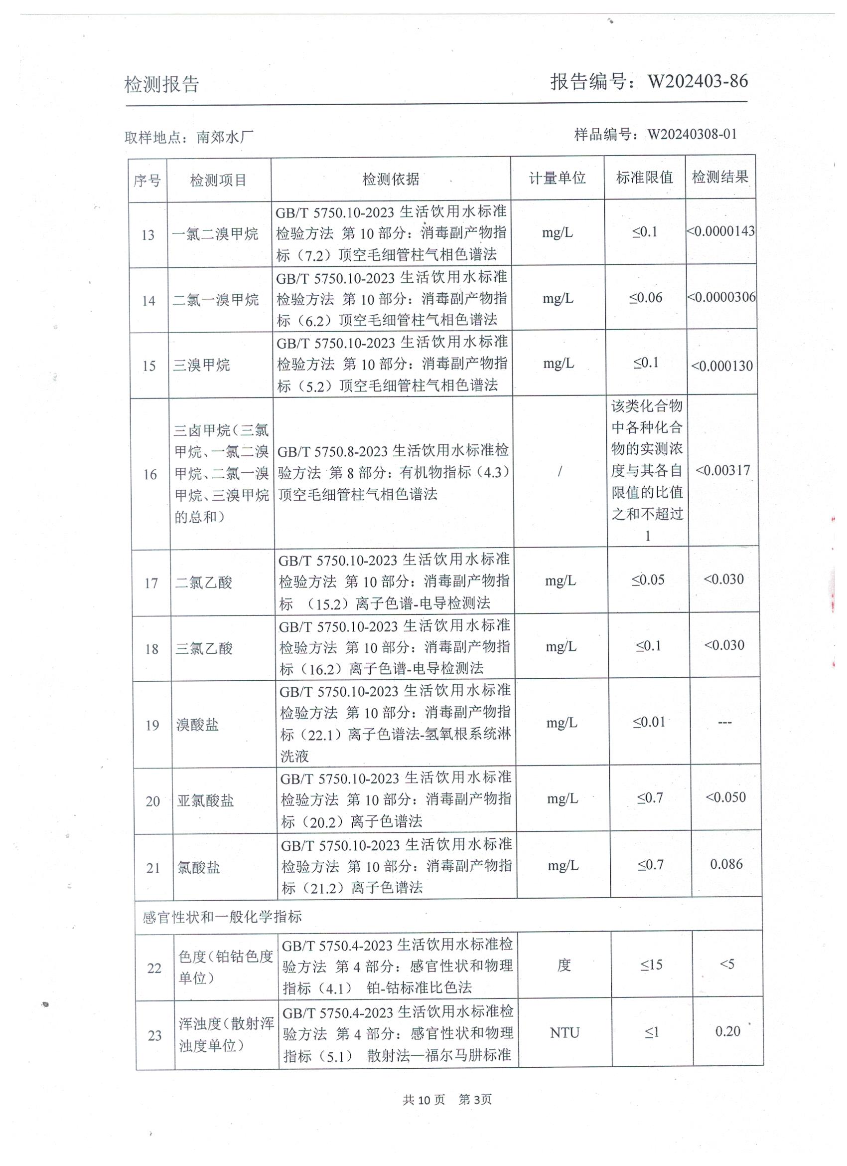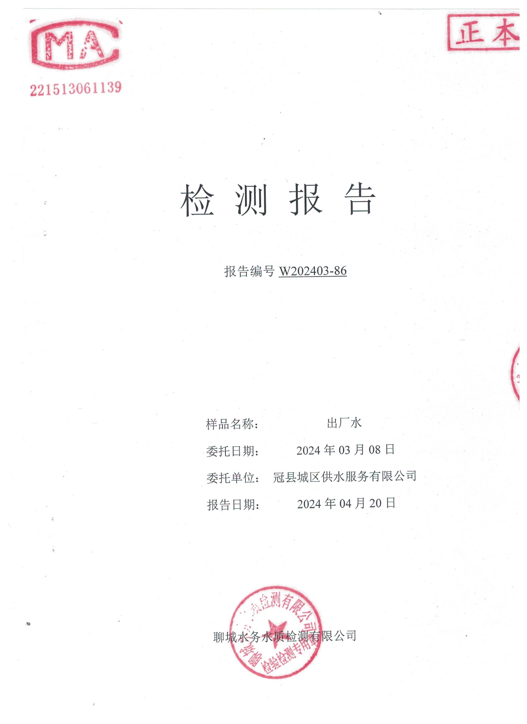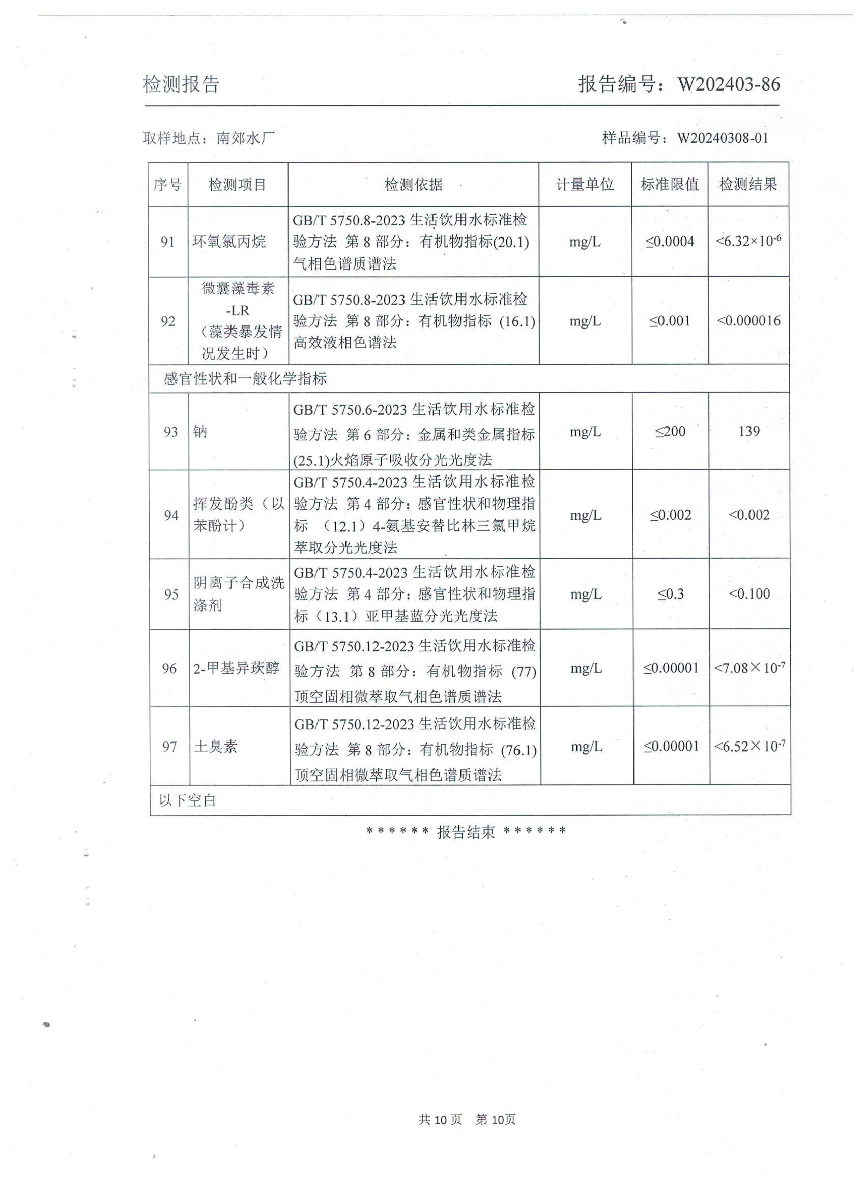 2024年城区出厂水年检水质检测报告