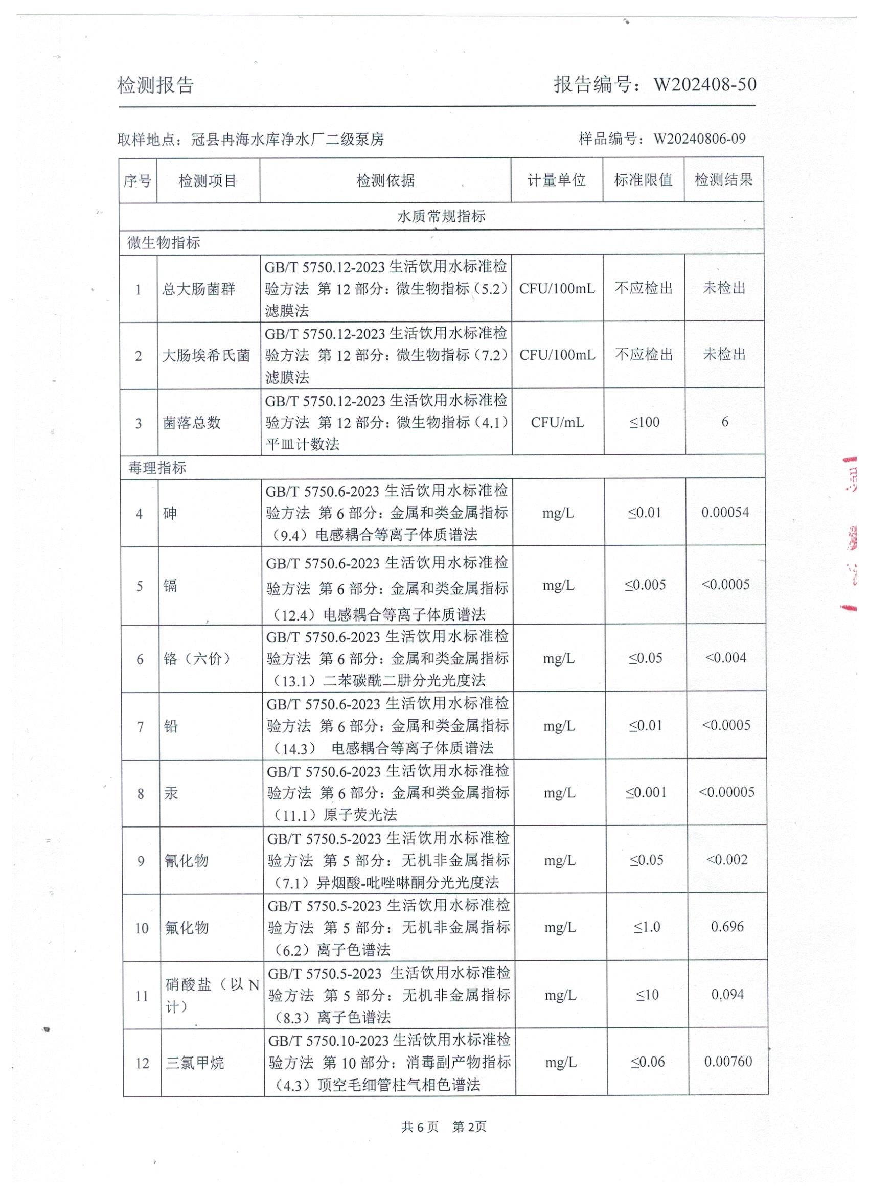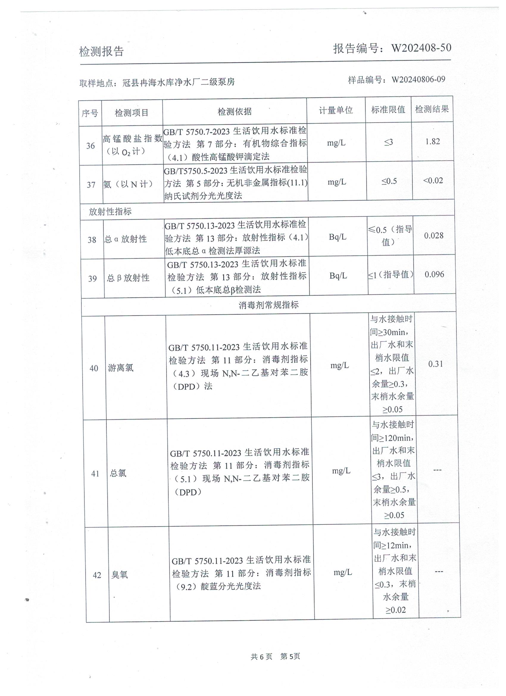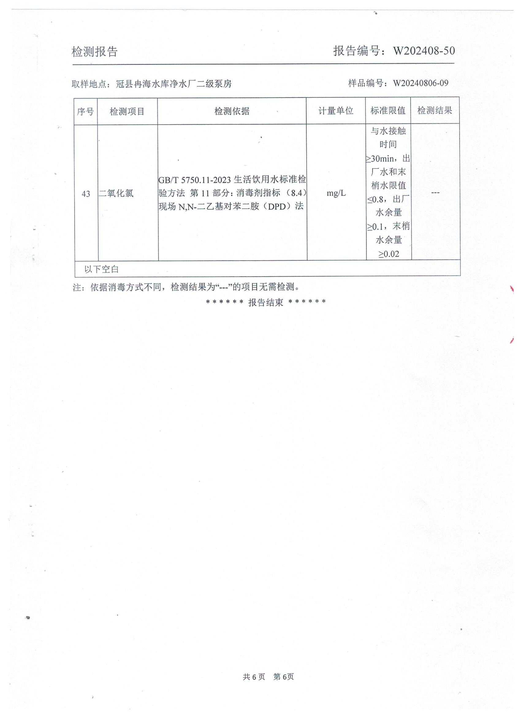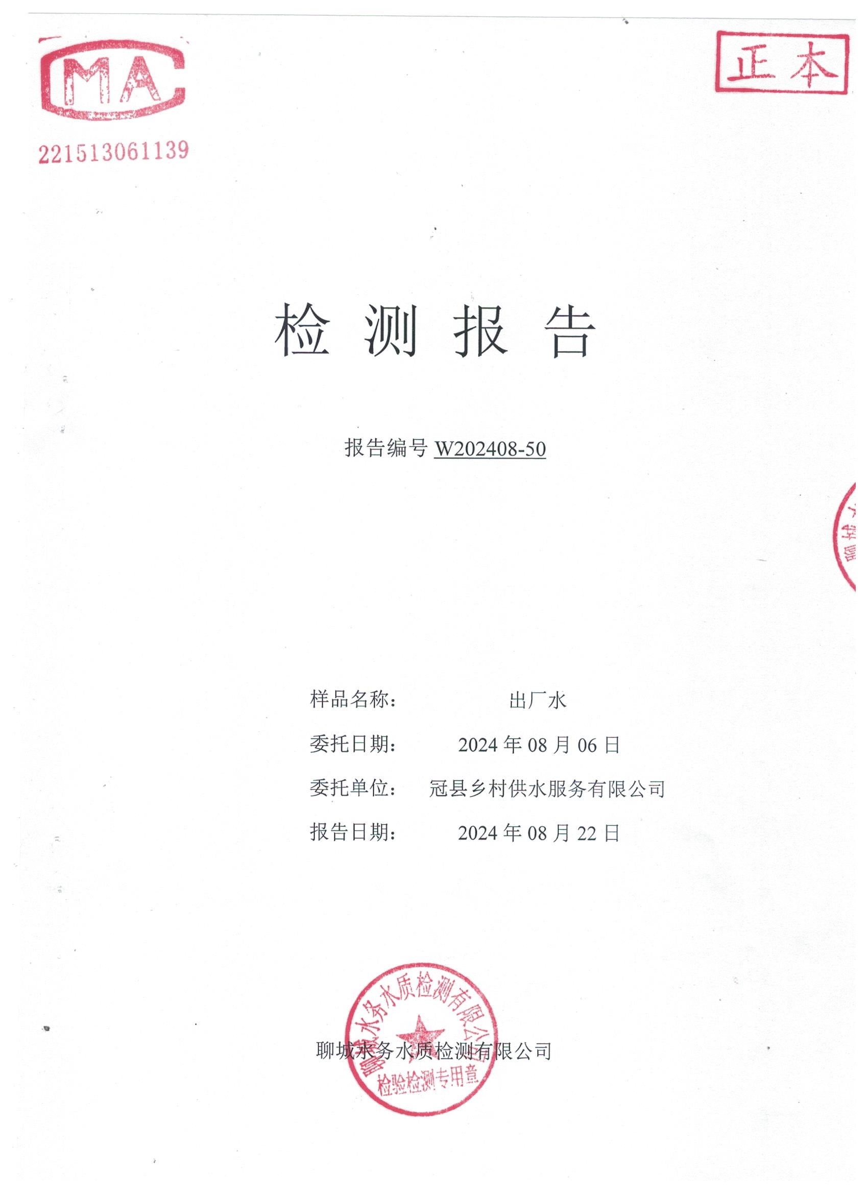 2024年8月出厂水水质检测报告