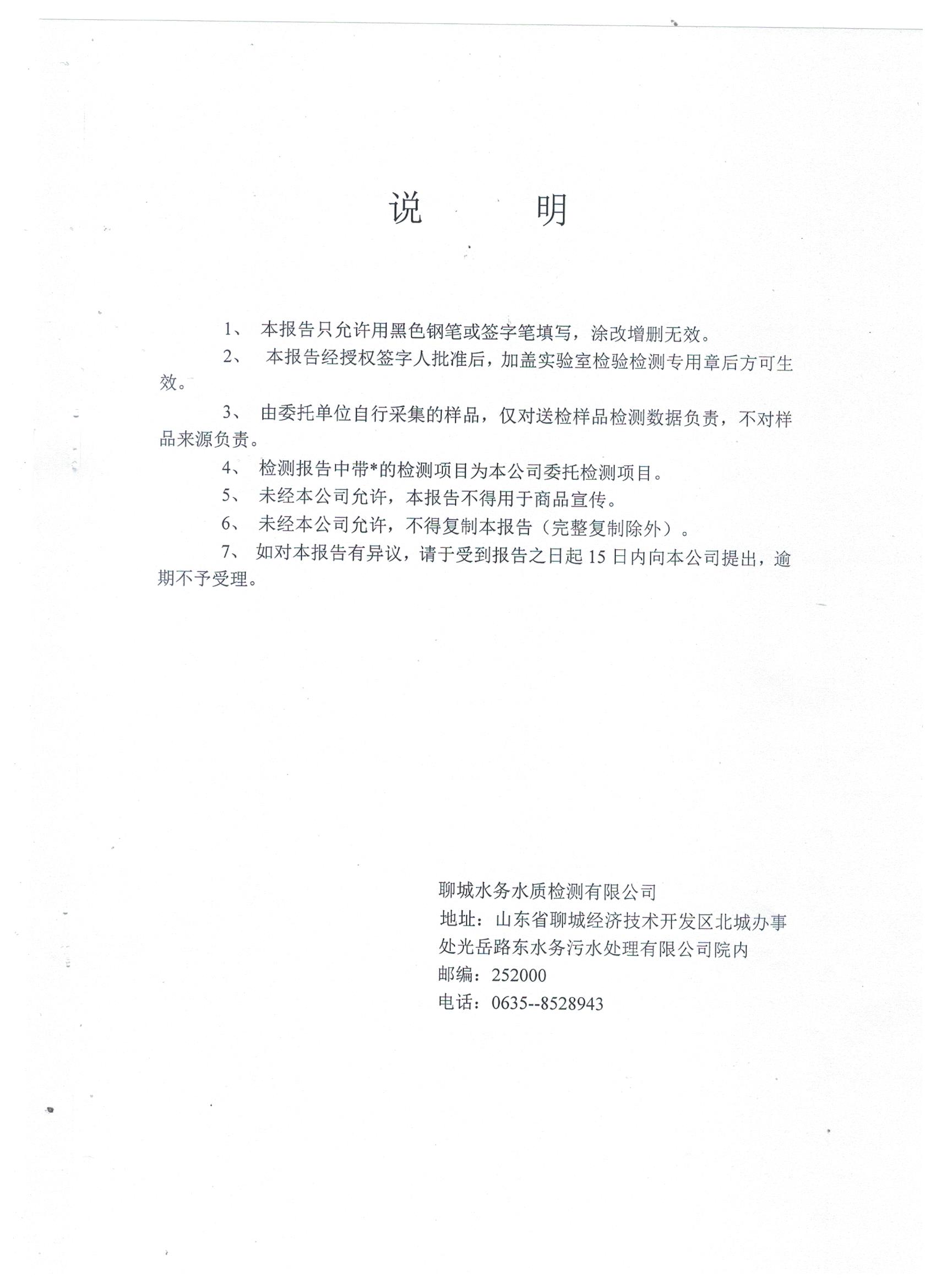 冠县自来水水质信息
