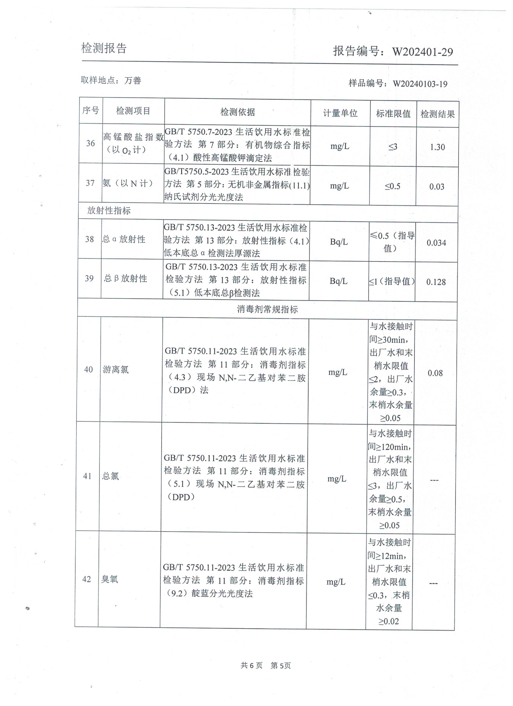 2024年1月乡村管网水水质检测报告