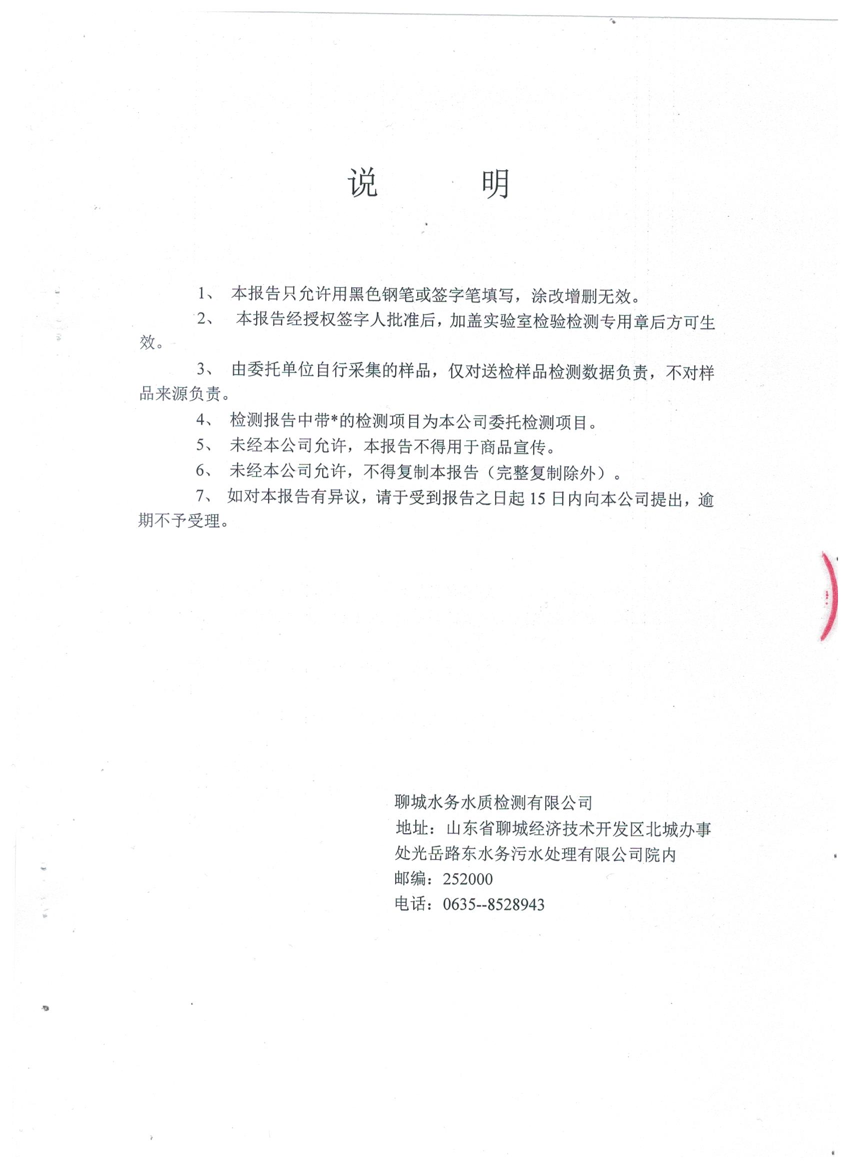 冠县自来水水质信息