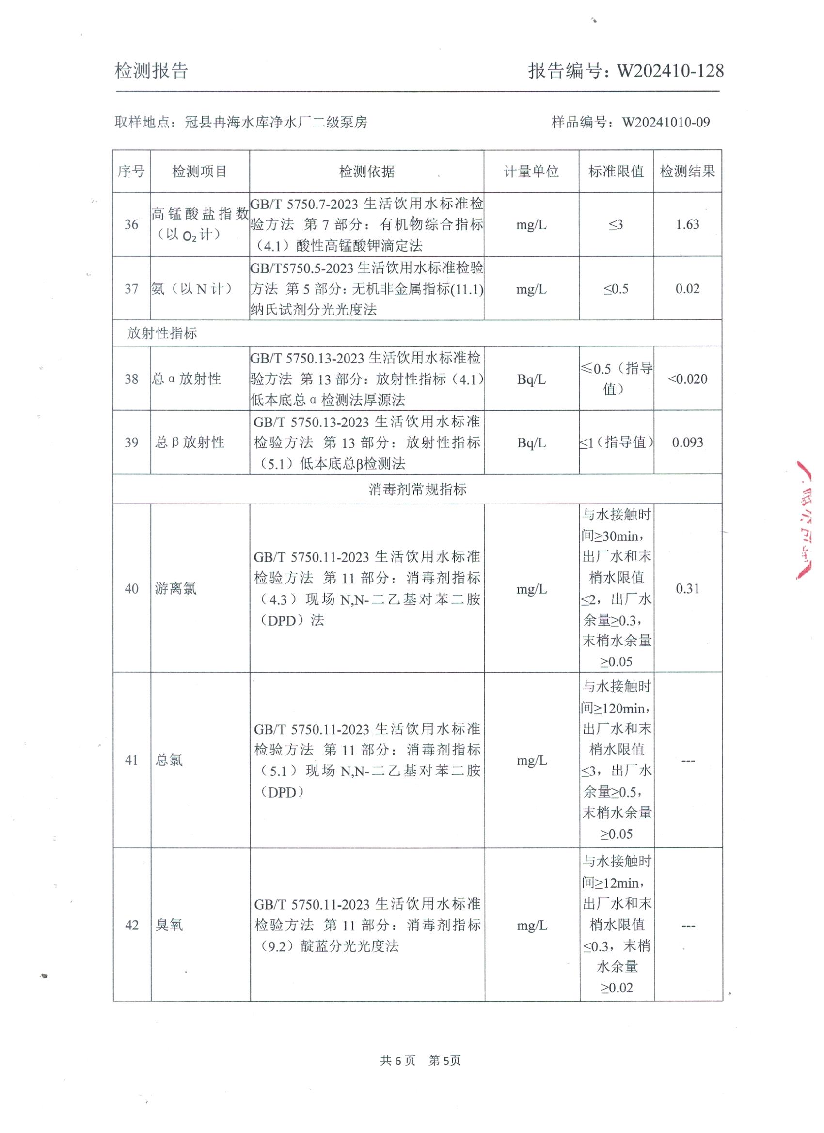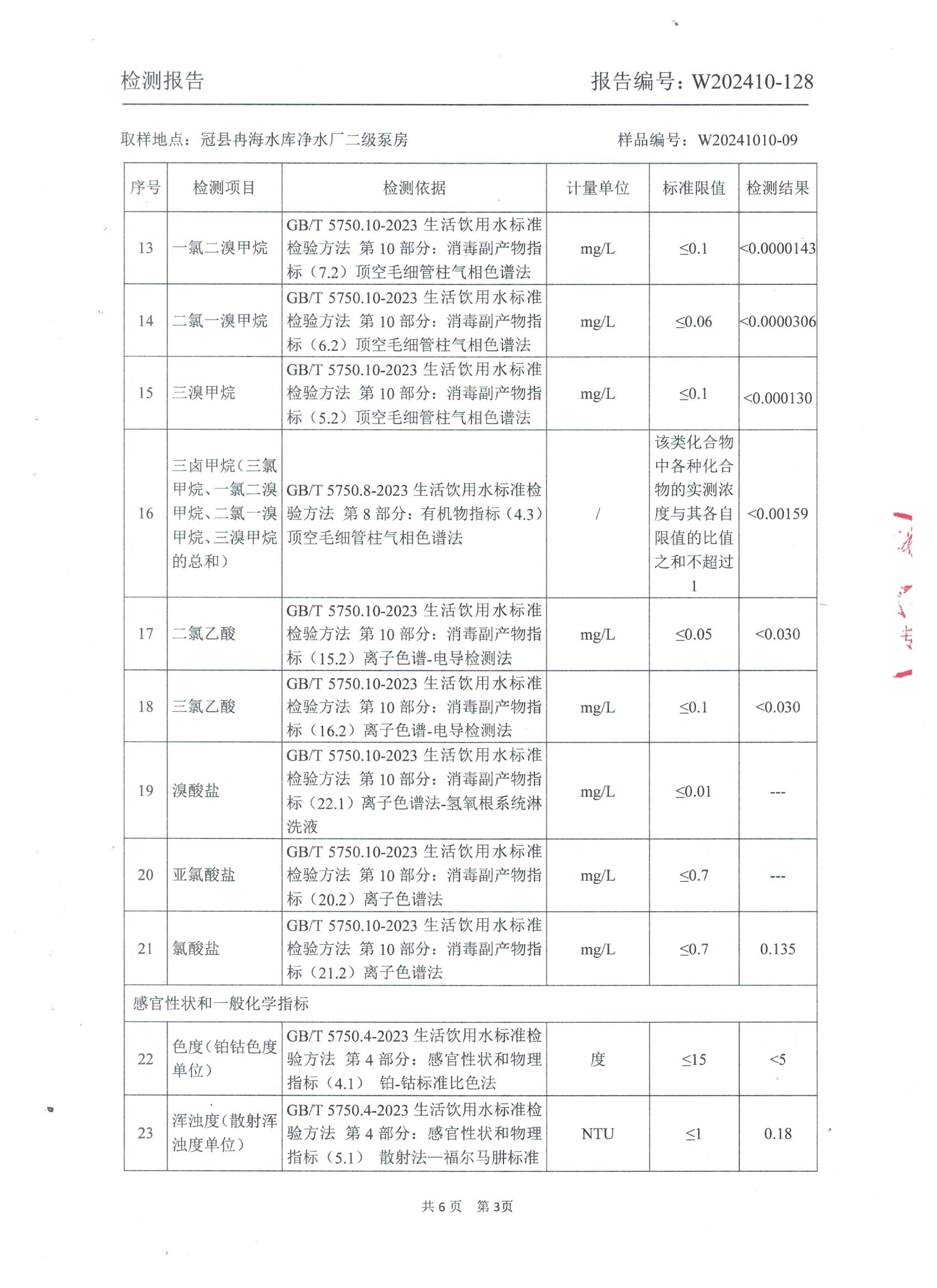 2024年10月出厂水水质检测报告