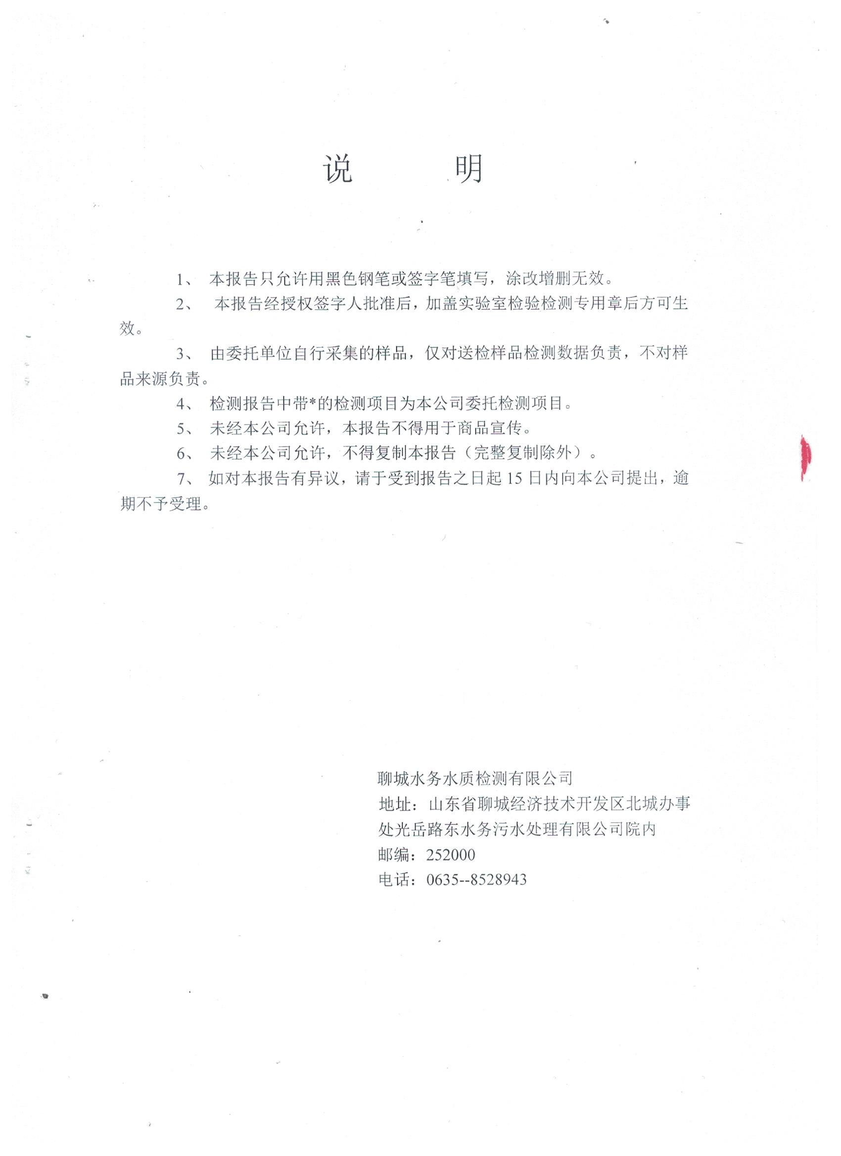 冠县自来水水质信息
