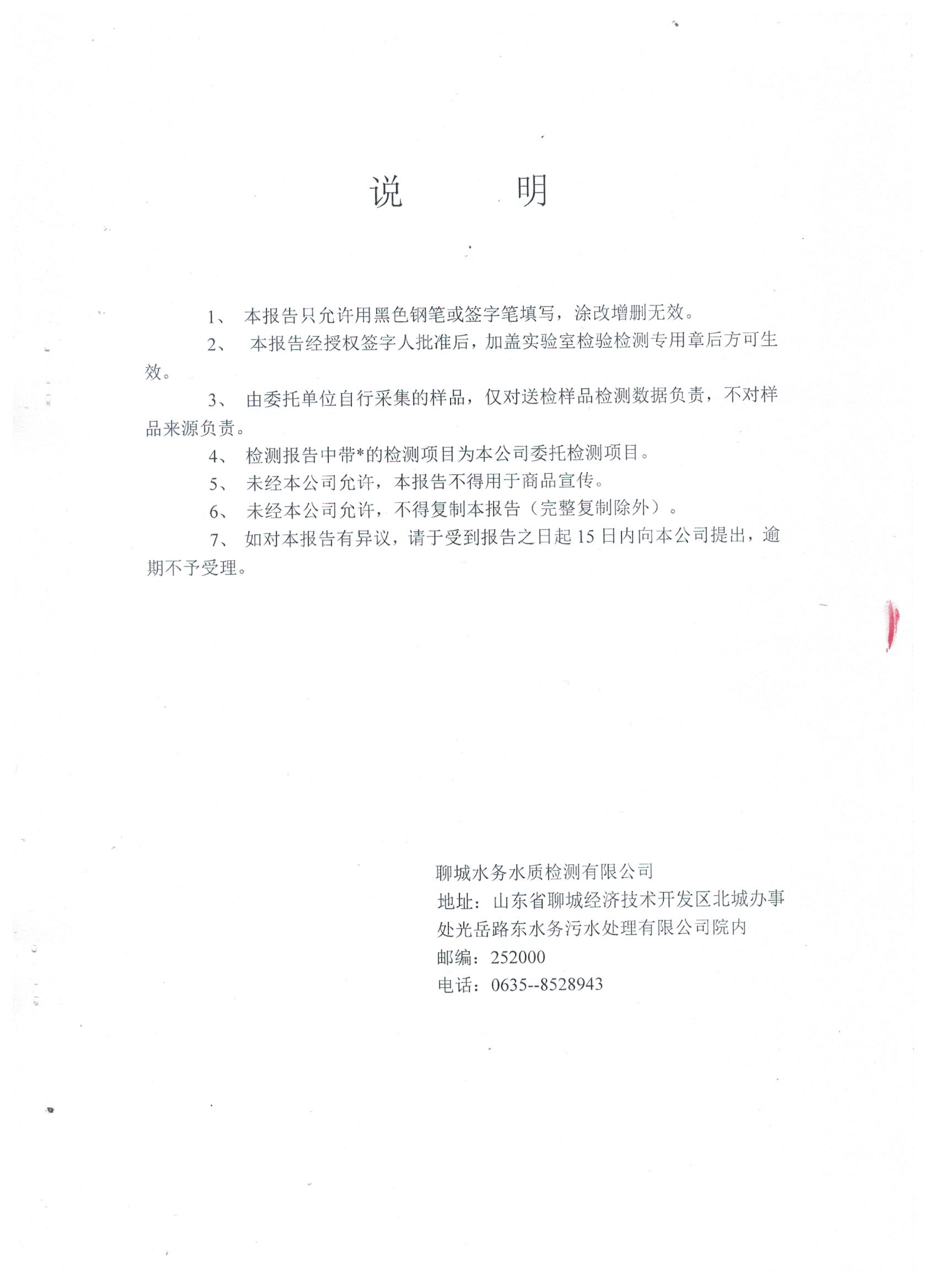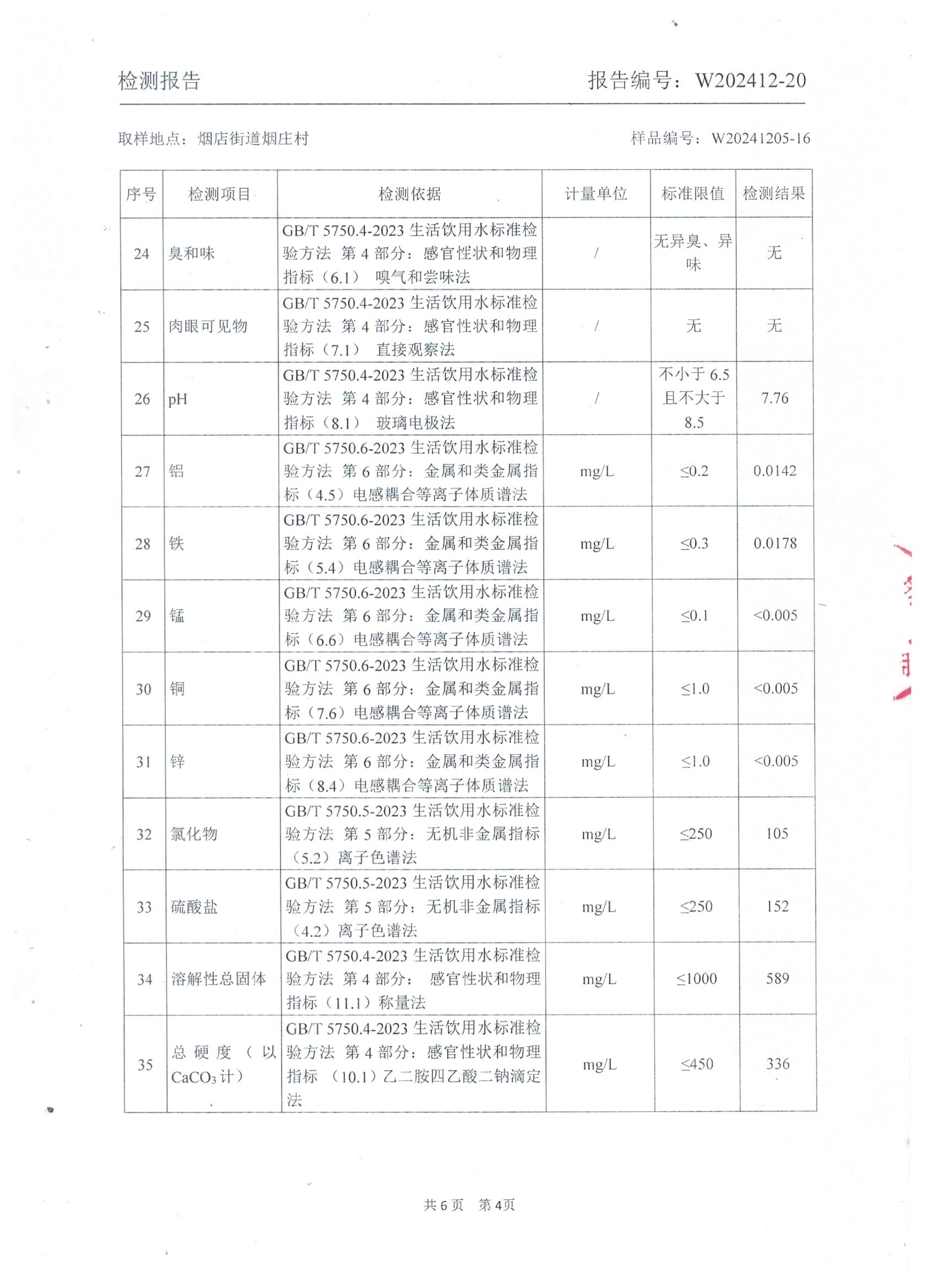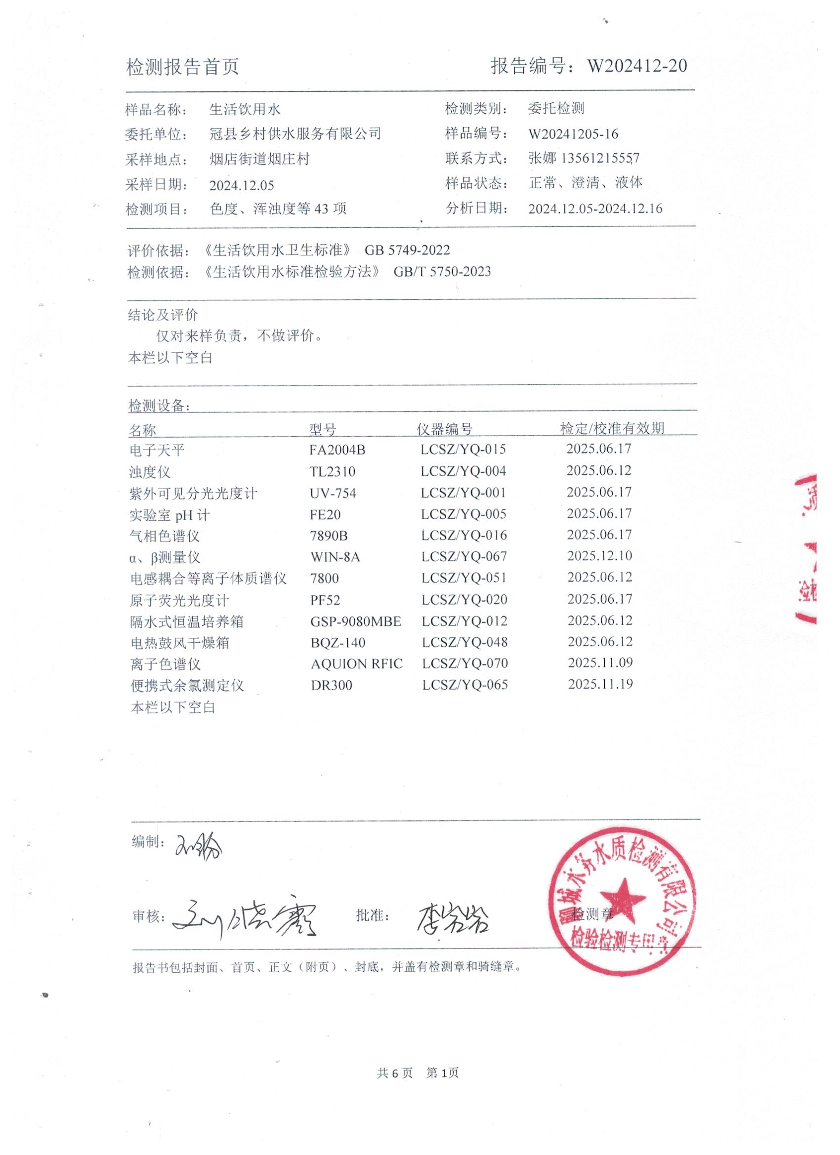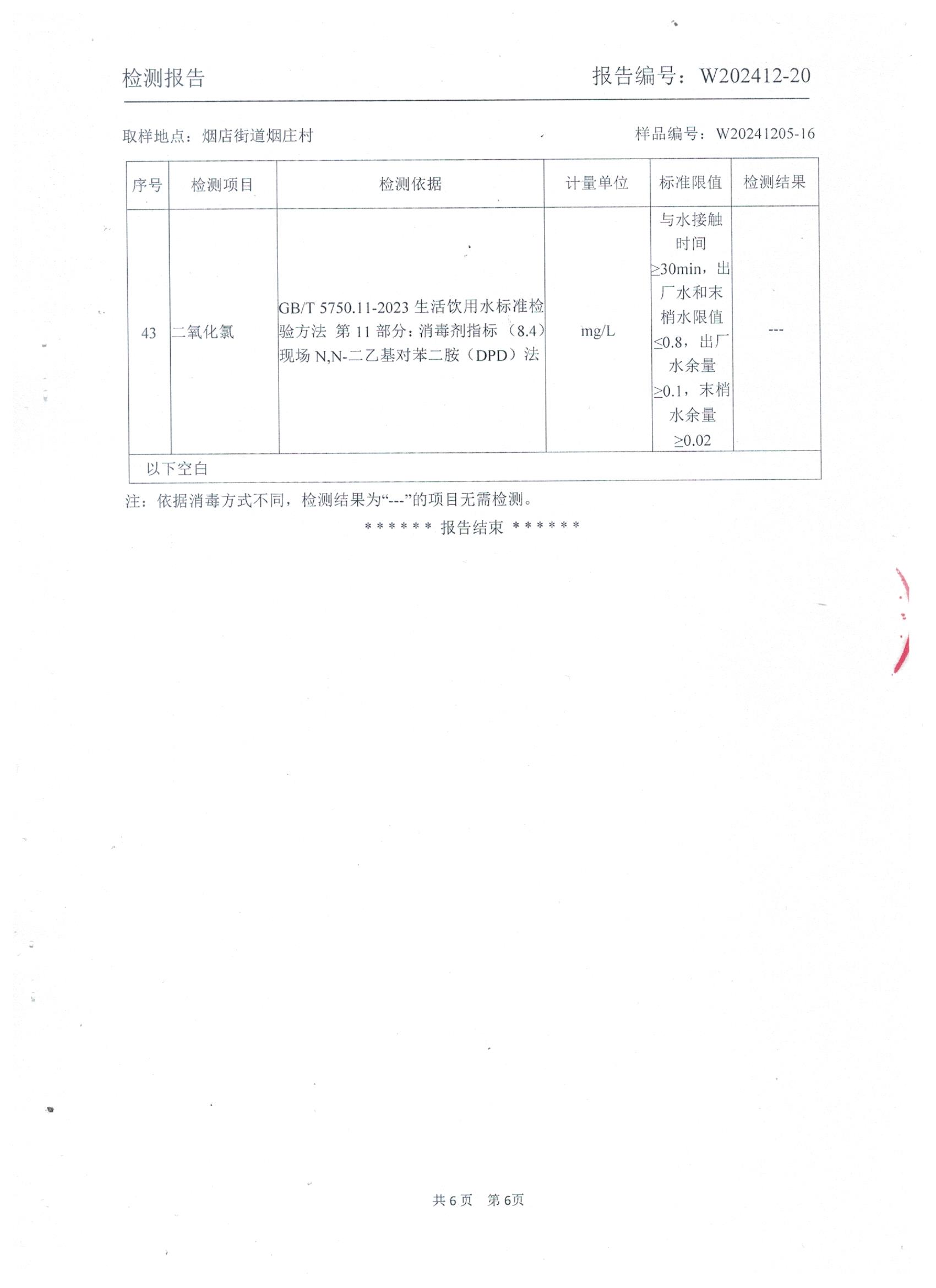 2024年12月管网水水质检测报告(烟庄)