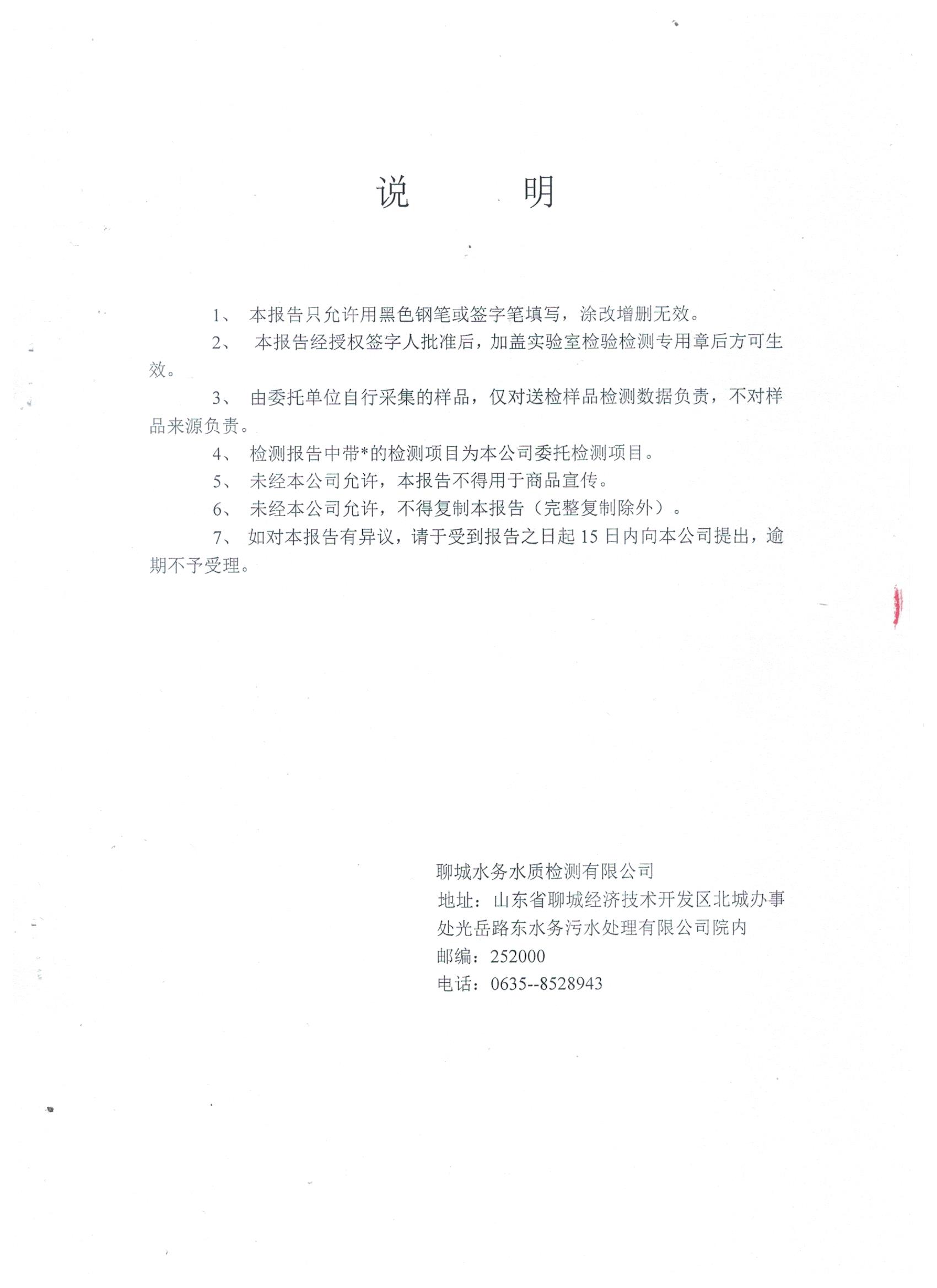 冠县自来水水质信息