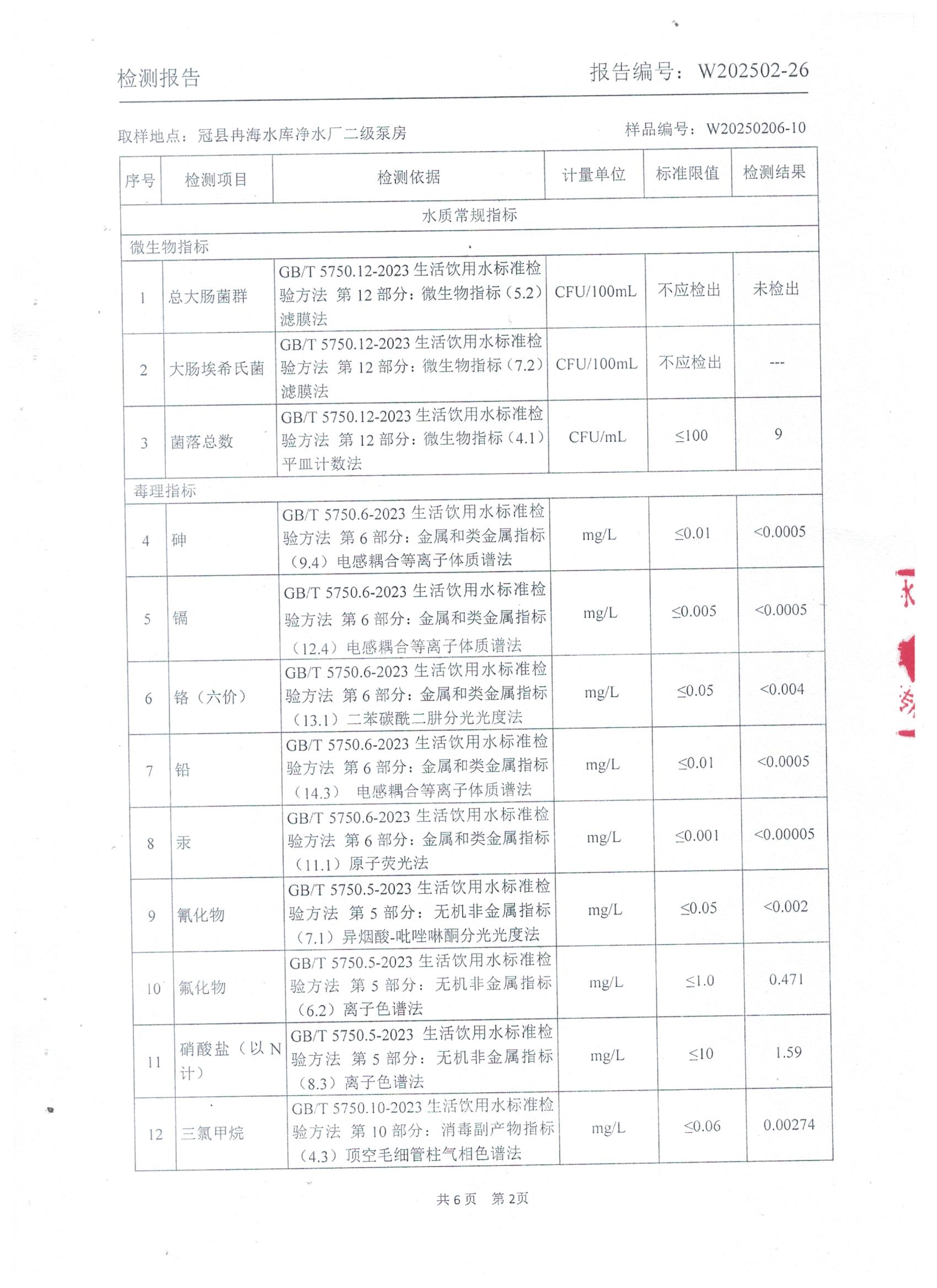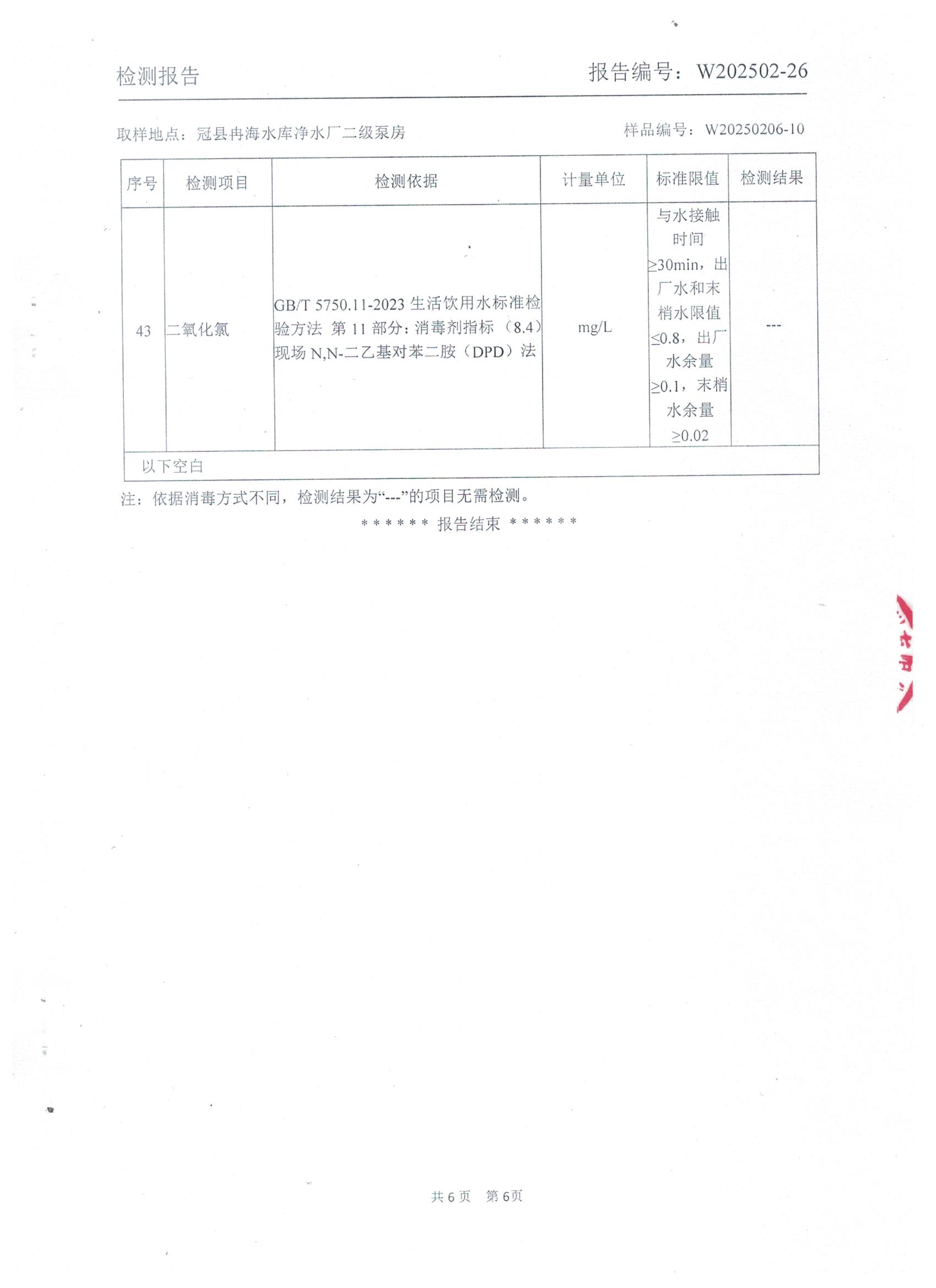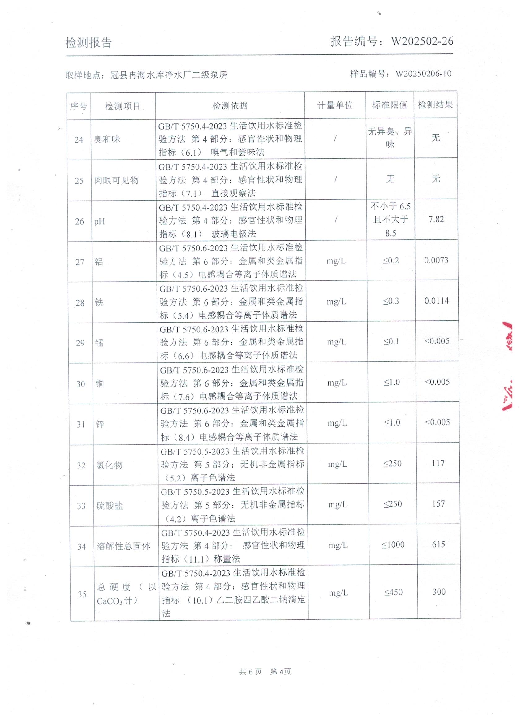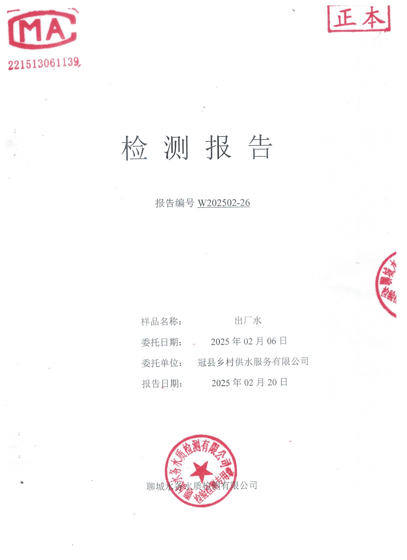 2025年2月出厂水水质检测报告