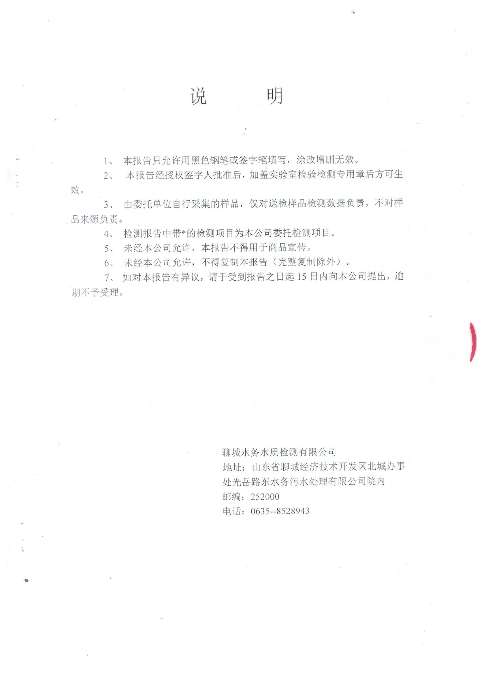 冠县自来水水质信息