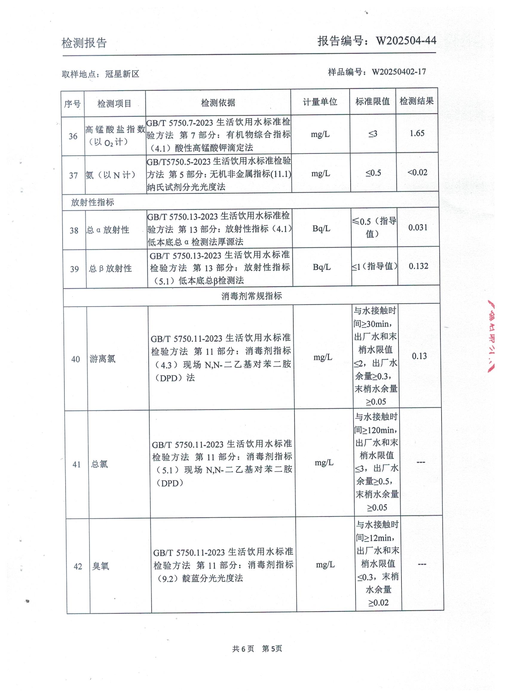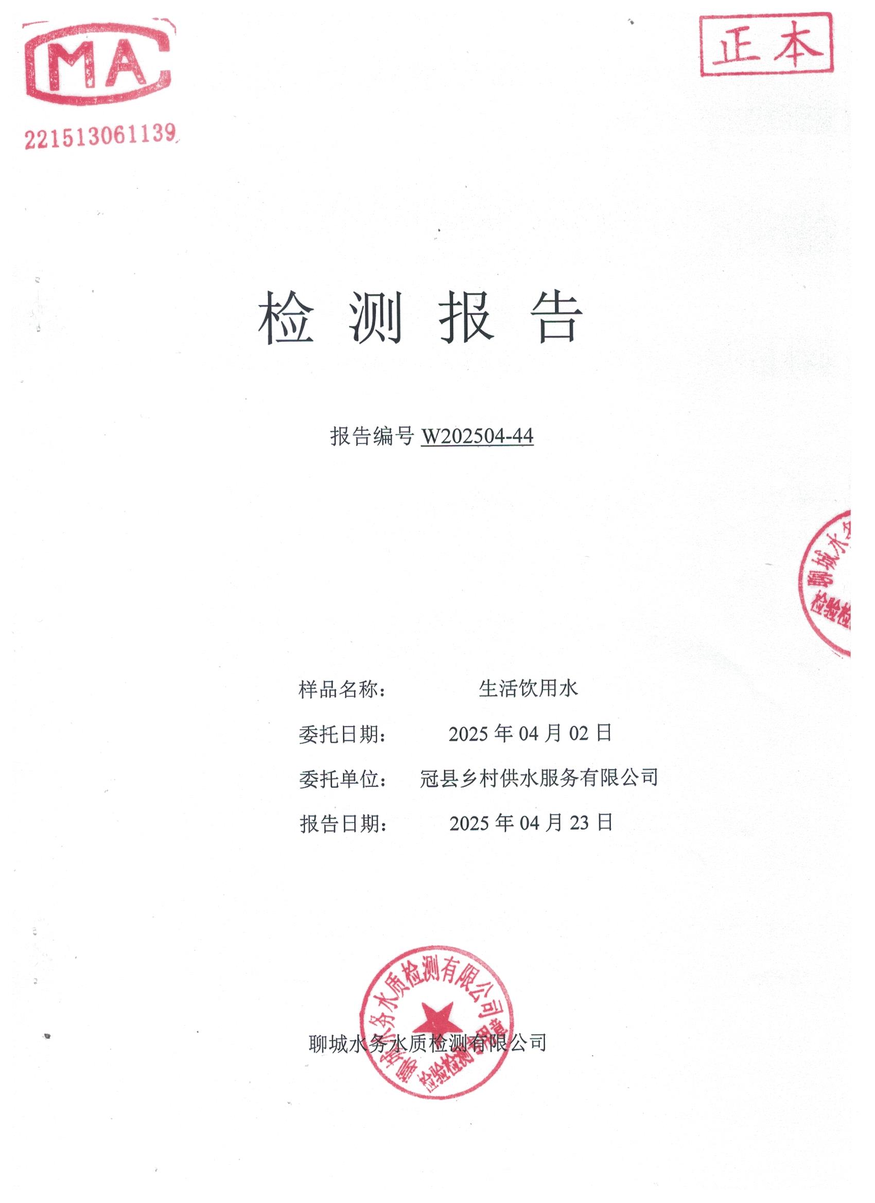2025年4月管网水水质检测报告(冠星新区)