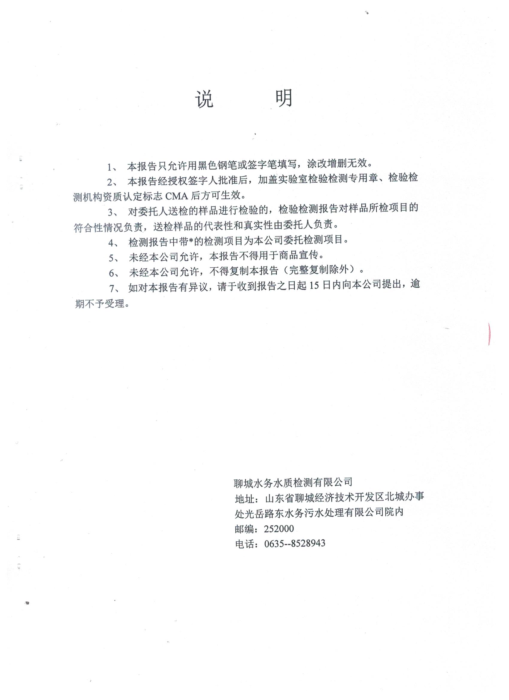 冠县自来水水质信息