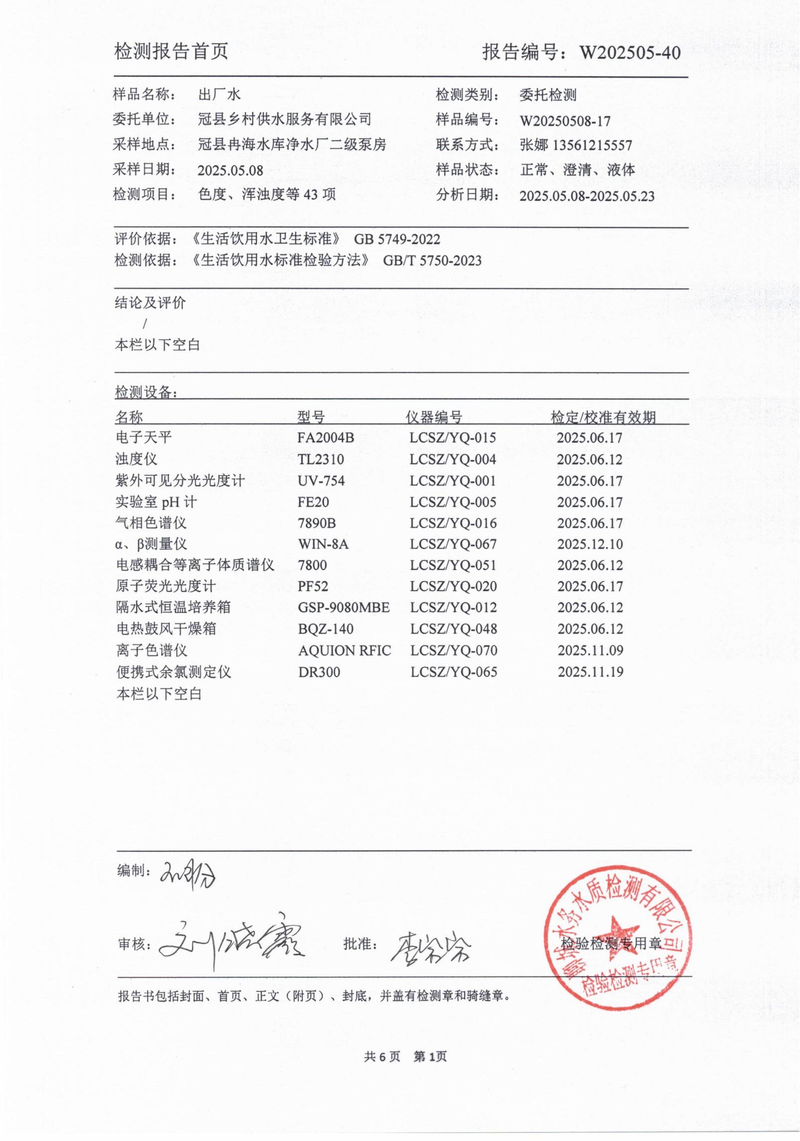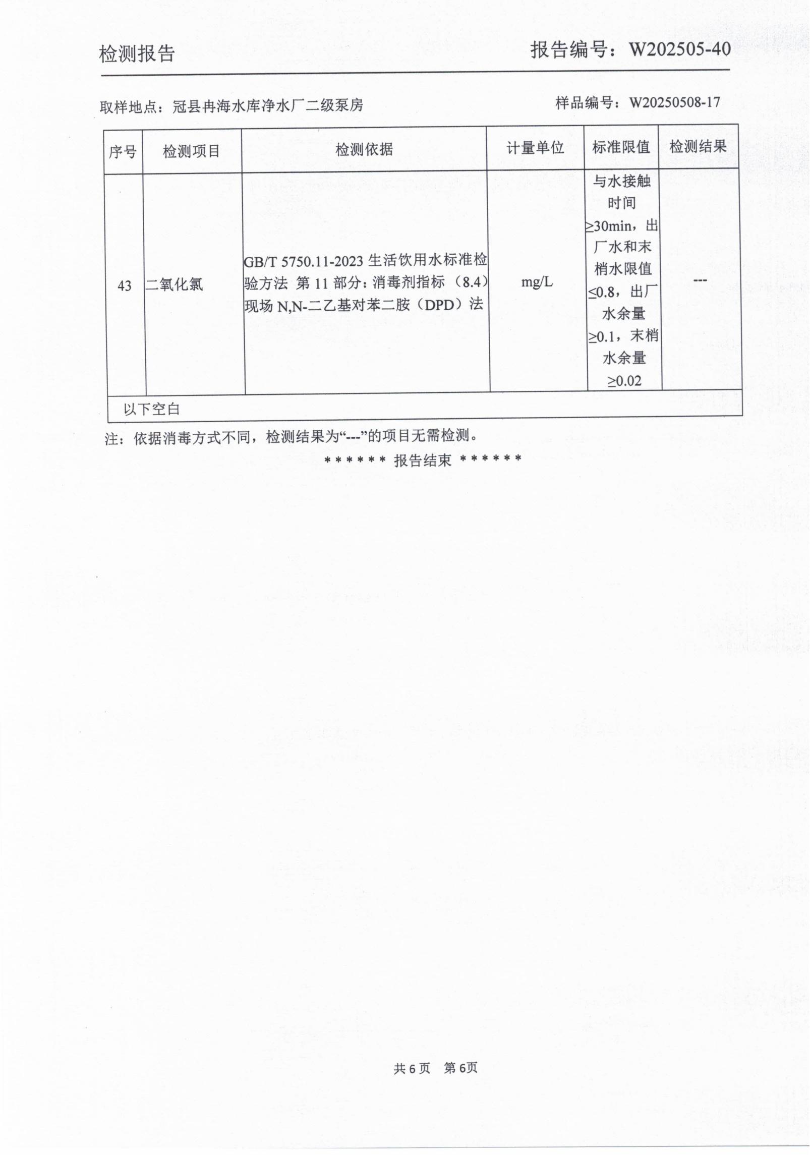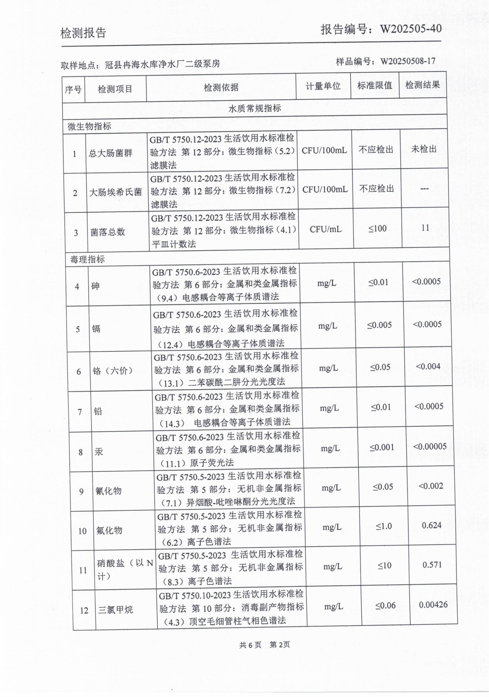 2025年5月出厂水水质检测报告