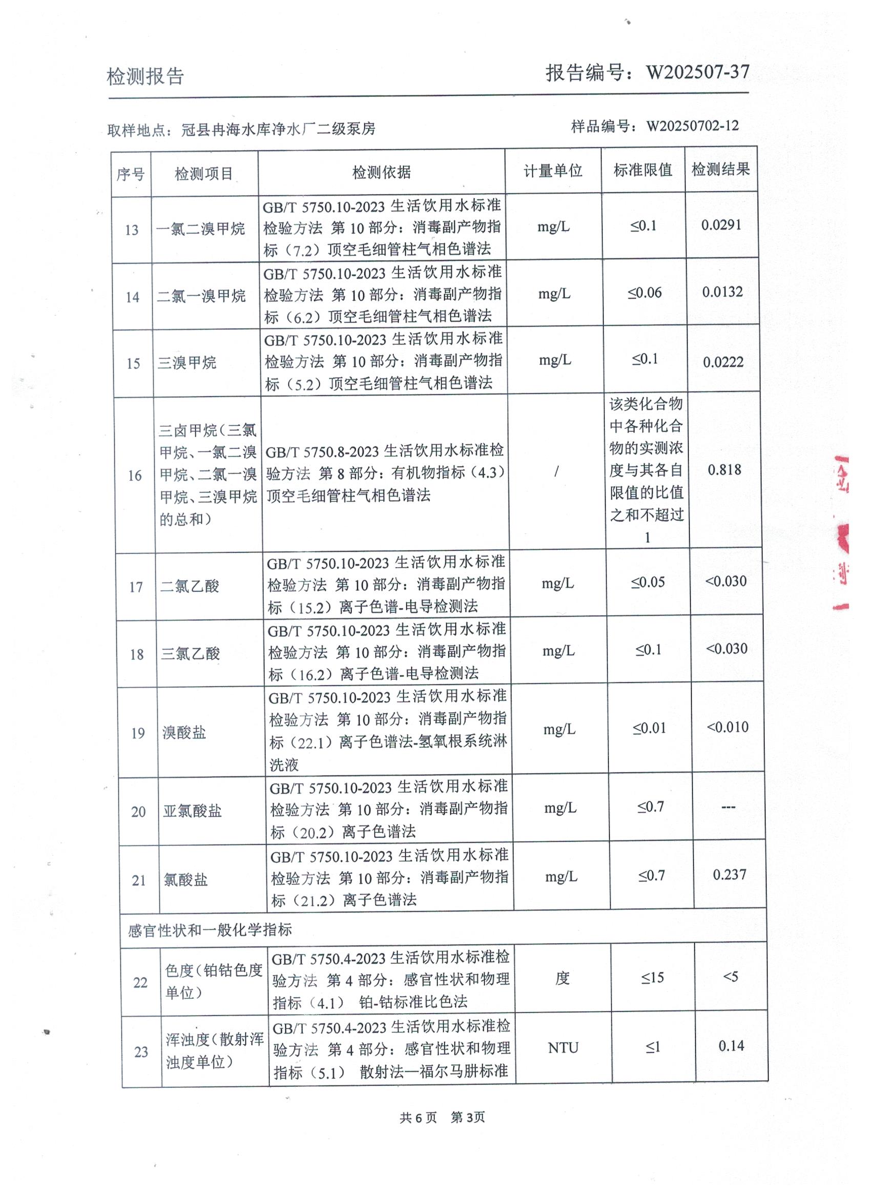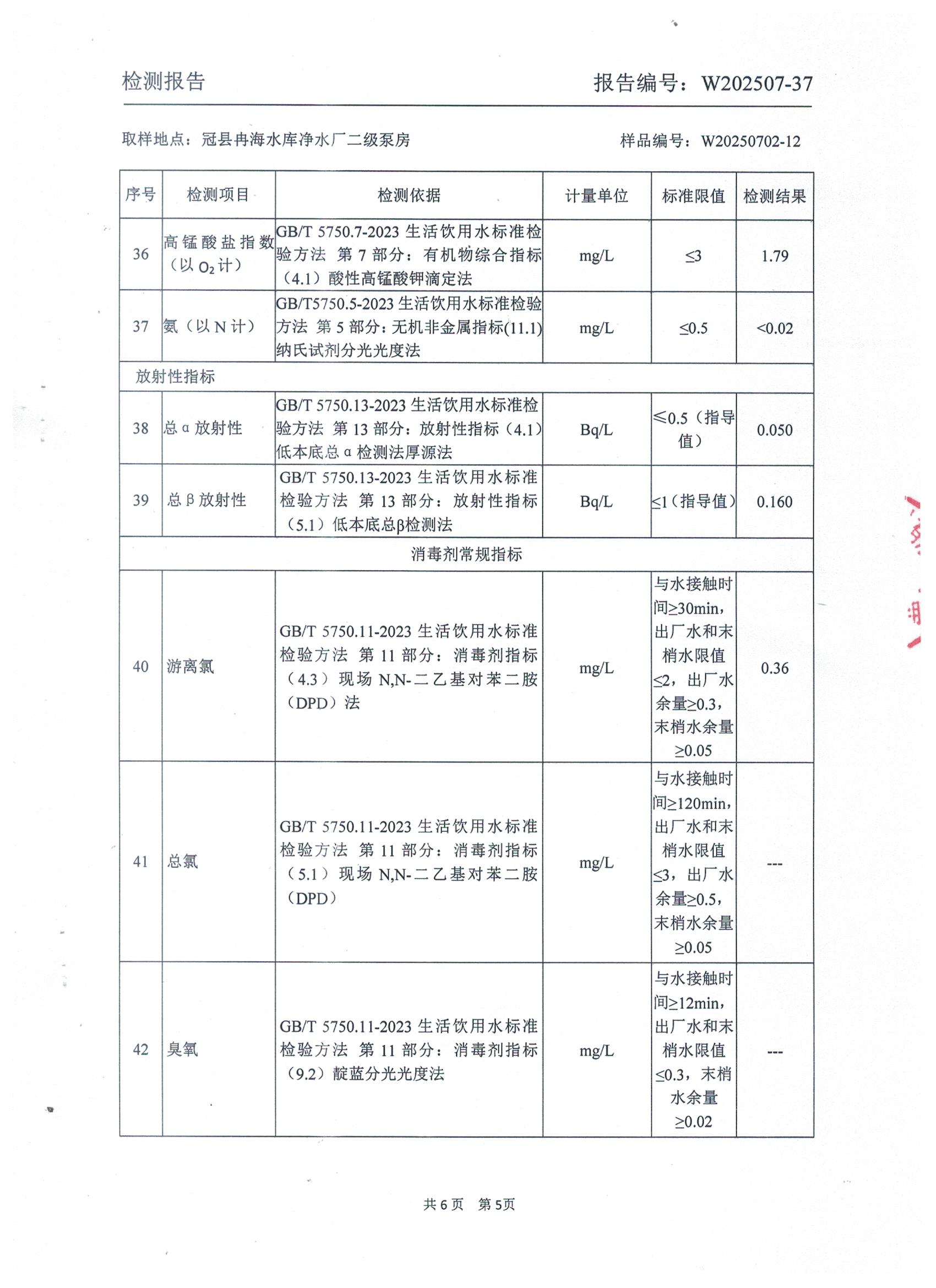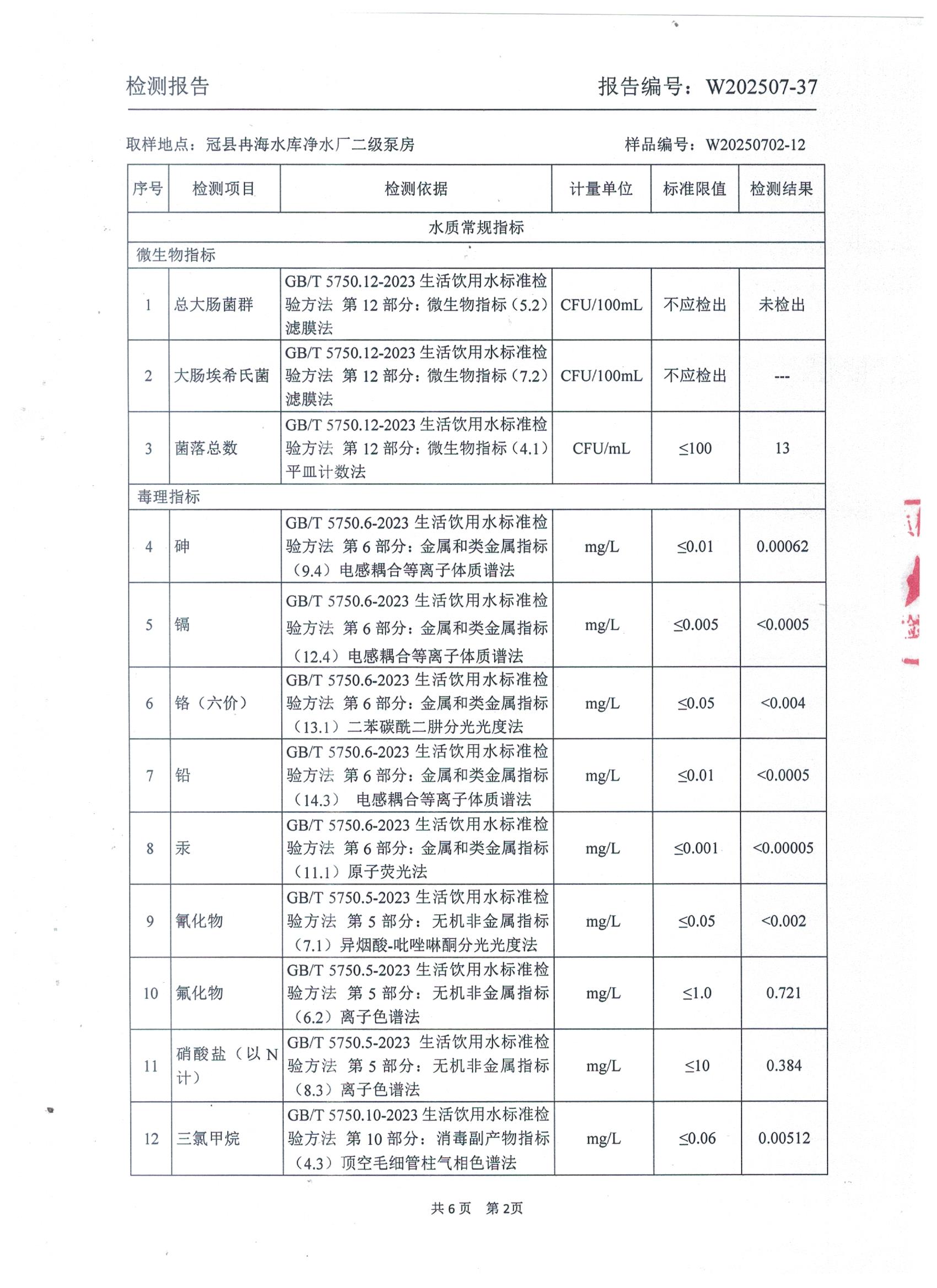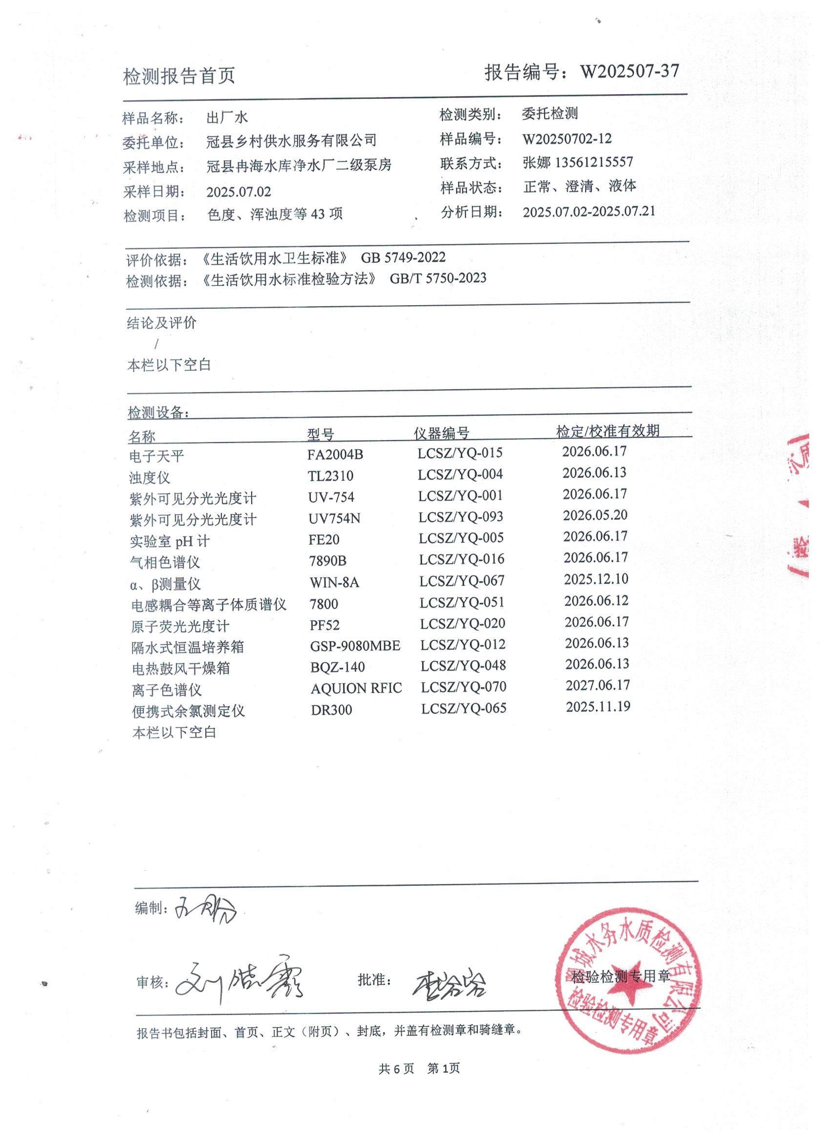 2025年7月出厂水水质检测报告