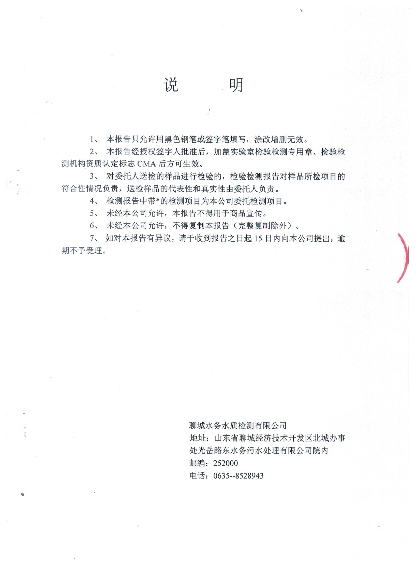 冠县自来水水质信息