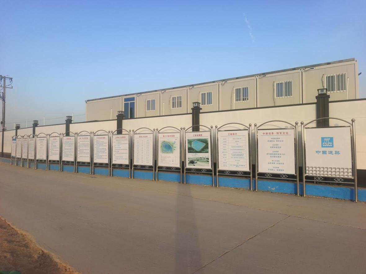 施工现场布局科学、功能分区明确,设置工程概况牌、安全生产牌、文明施工牌、农民工工资维权公示牌等标牌,以及各类平面图、效果图,信息公开透明。办公区、生活区与施工区分离,环境整洁、设施齐全,彰显现代施工企业形象。