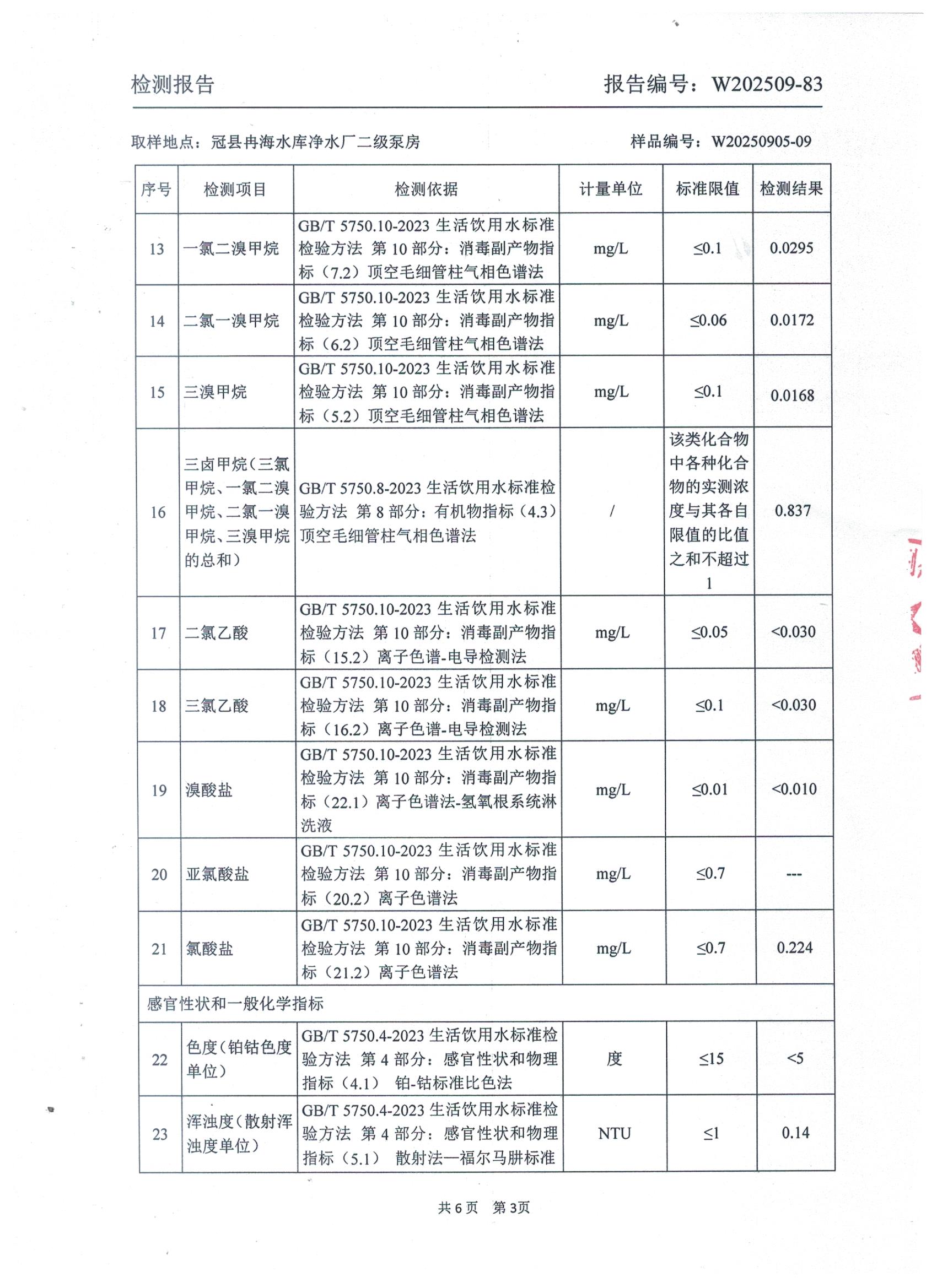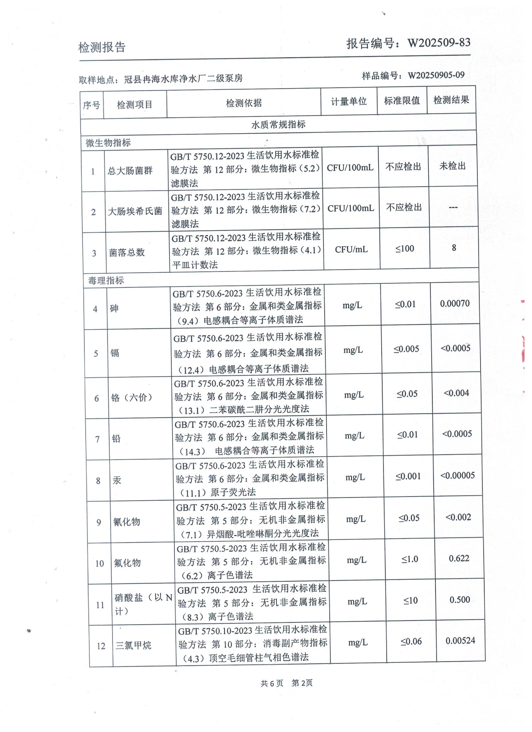 2025年9月出厂水水质检测报告