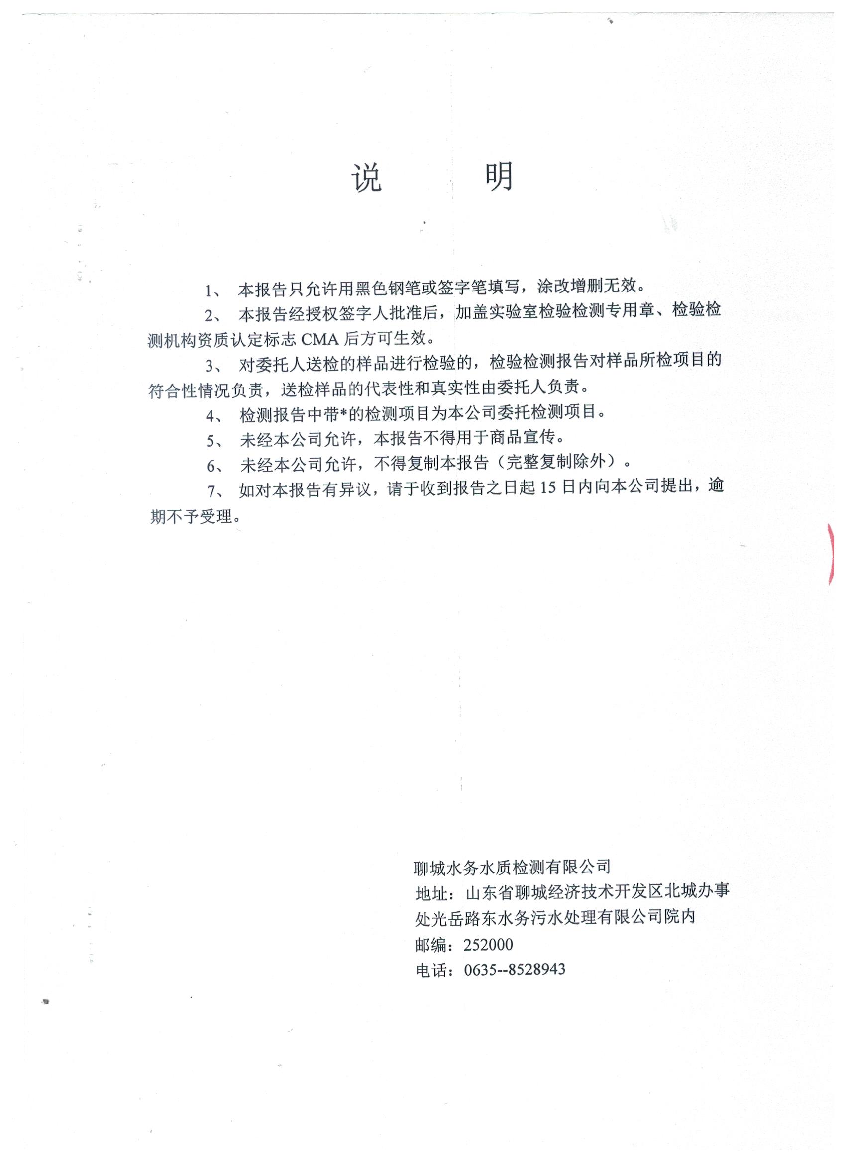 冠县自来水水质信息