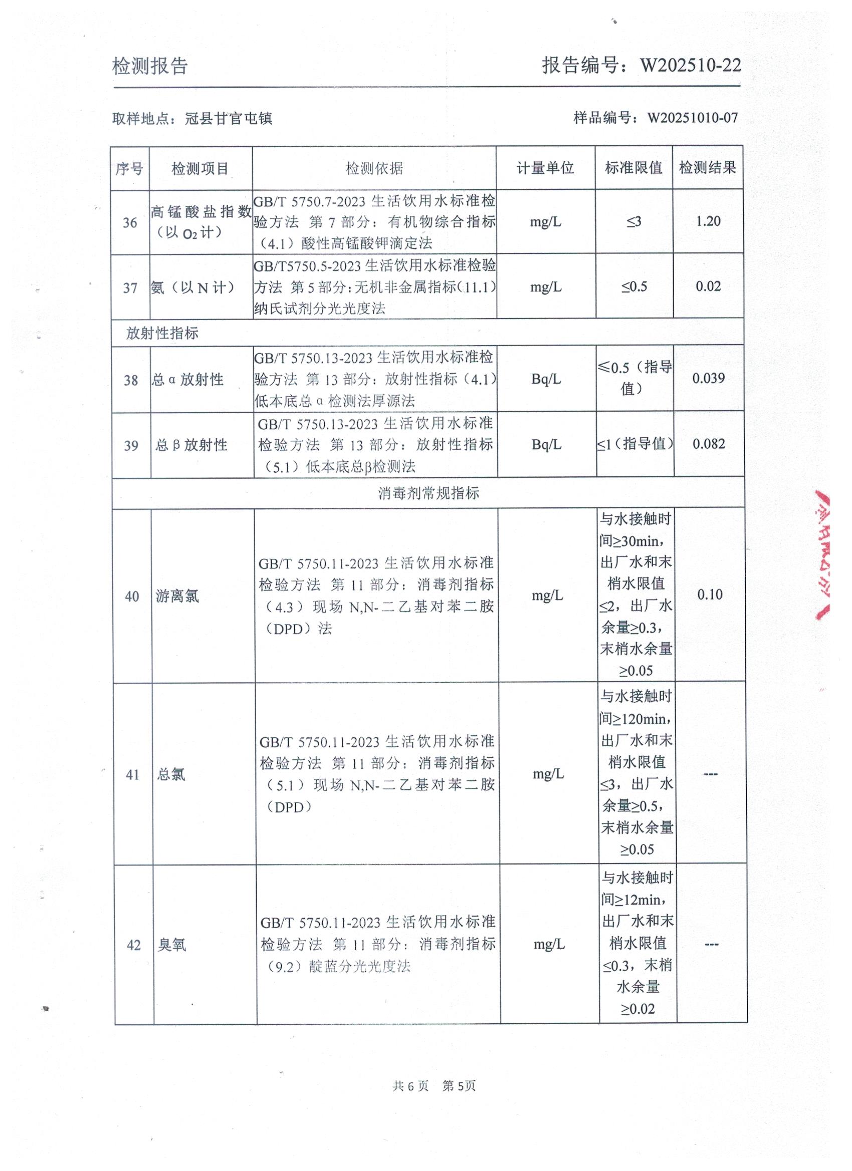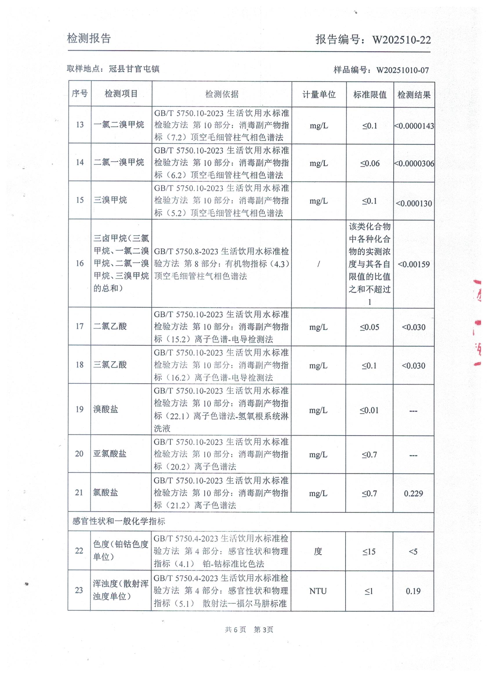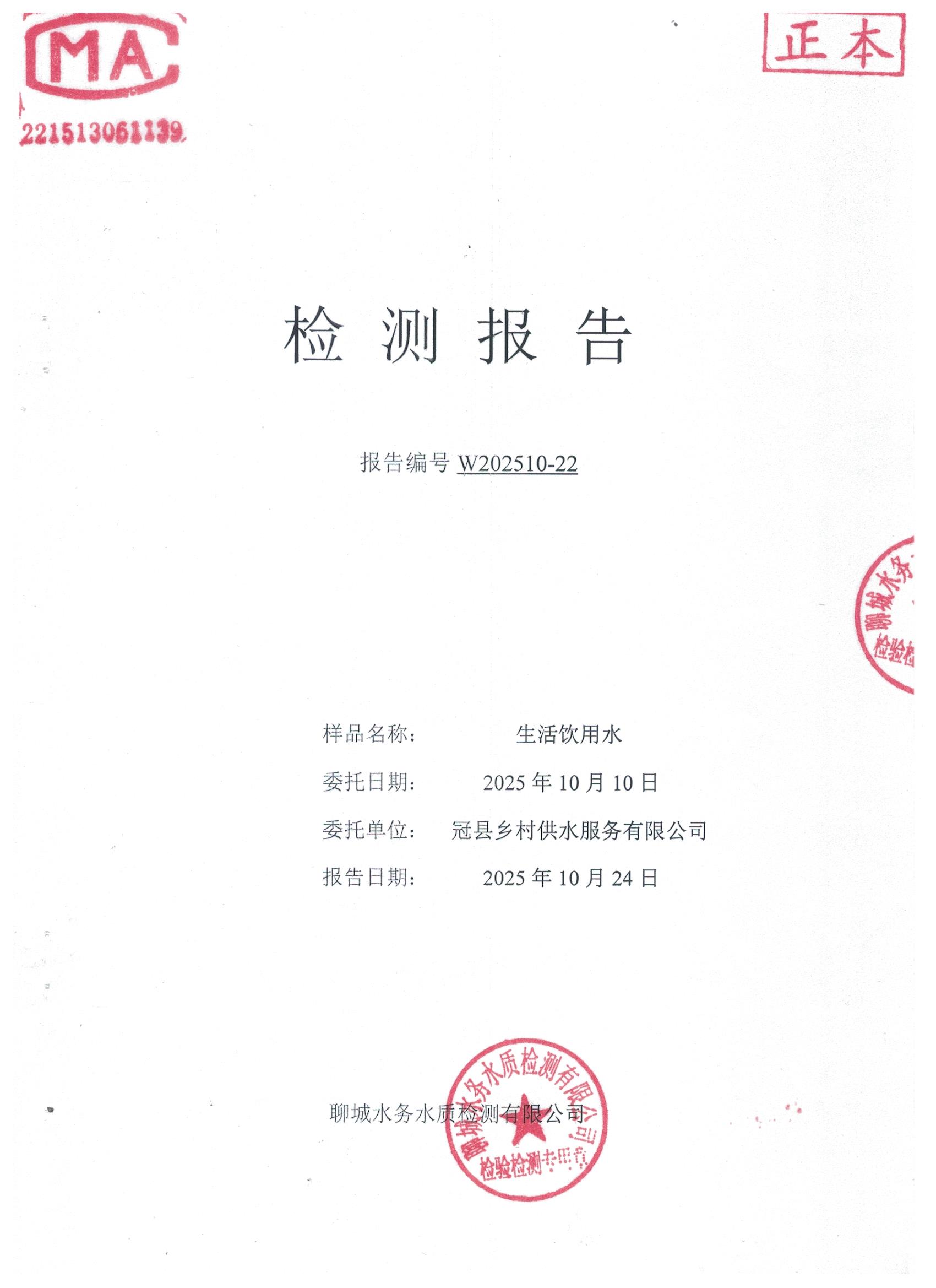 2025年10月管网水水质检测报告(甘官屯)