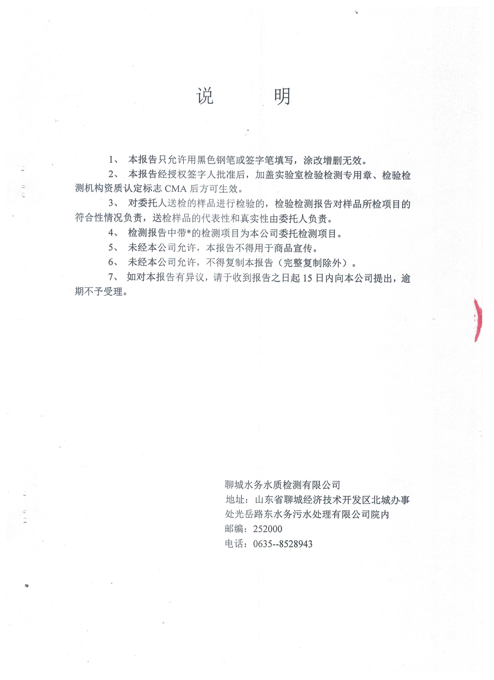 冠县自来水水质信息
