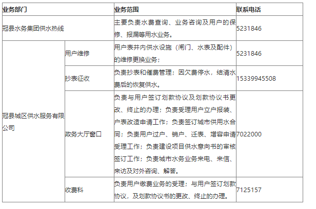 冠县用水报装